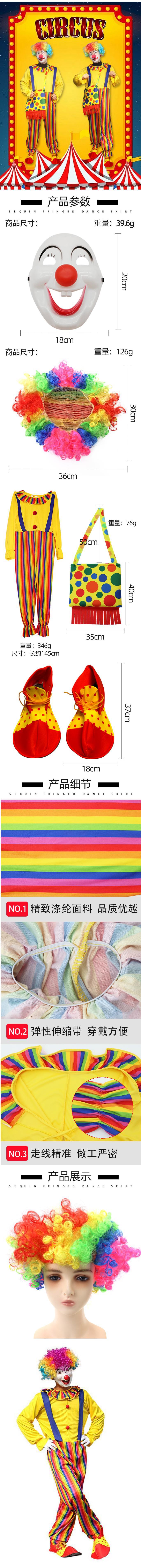 Colored wigs, Clown mask, Clown costume, Clown bag, Clown shoes, Clown five piece set