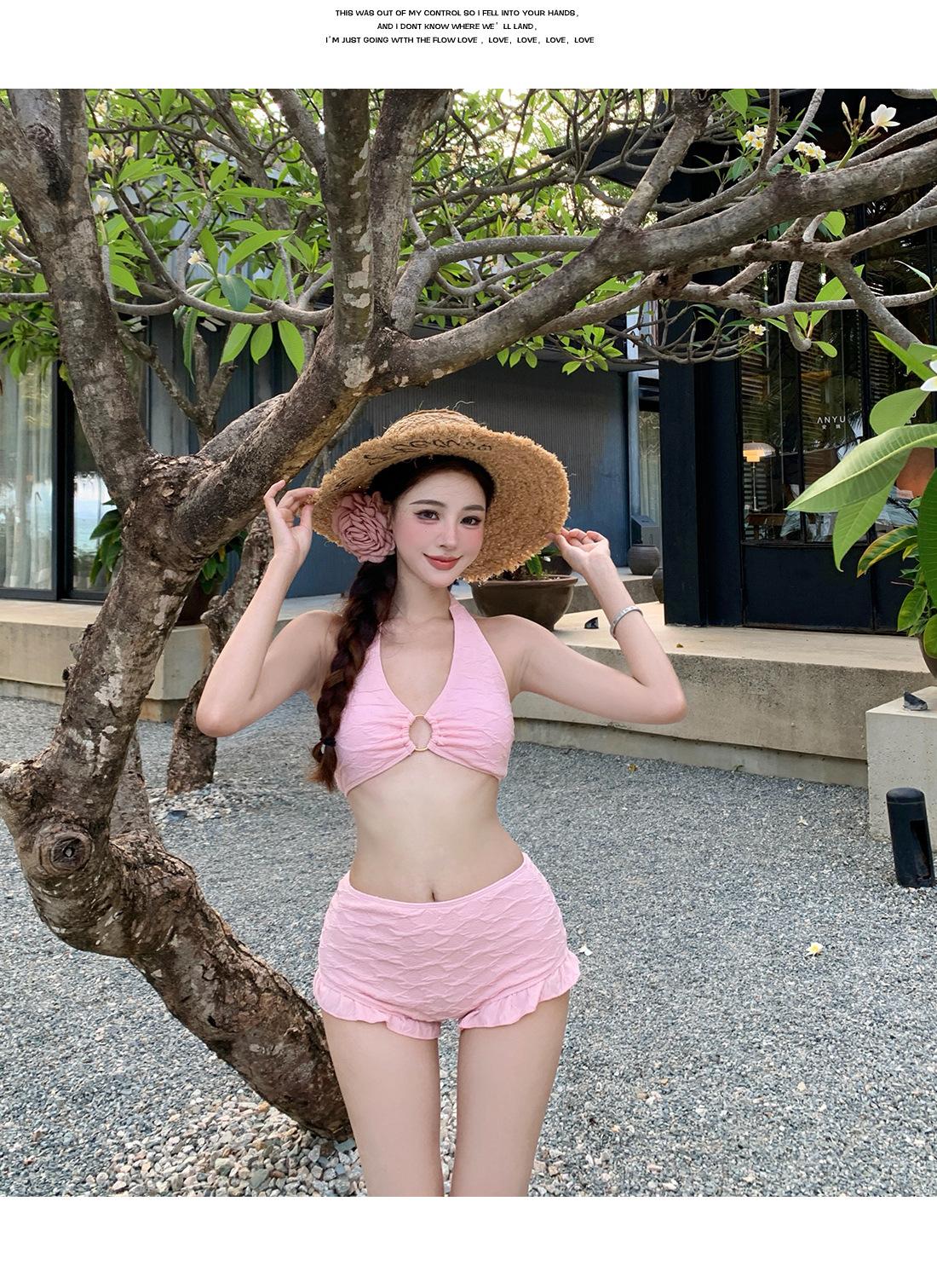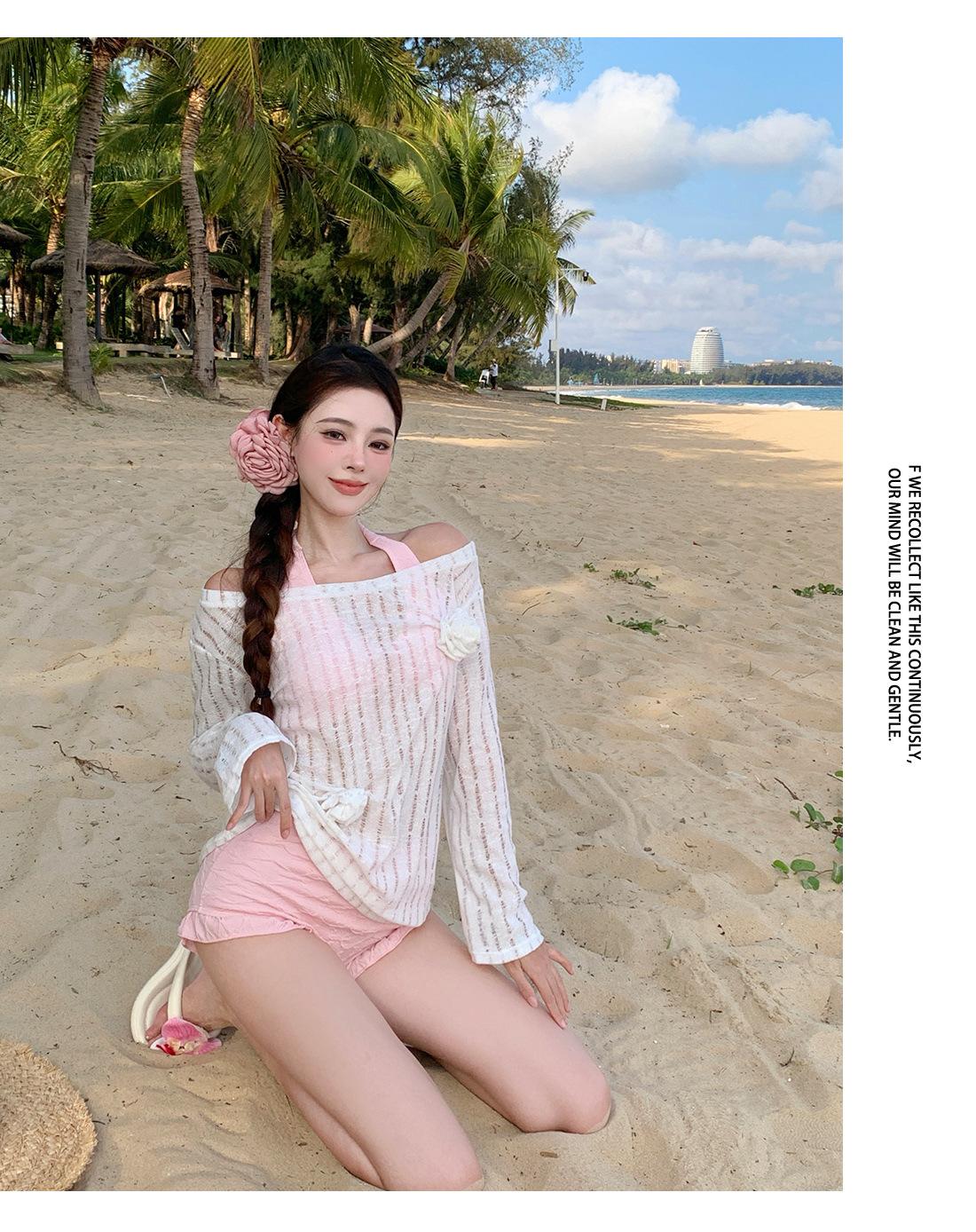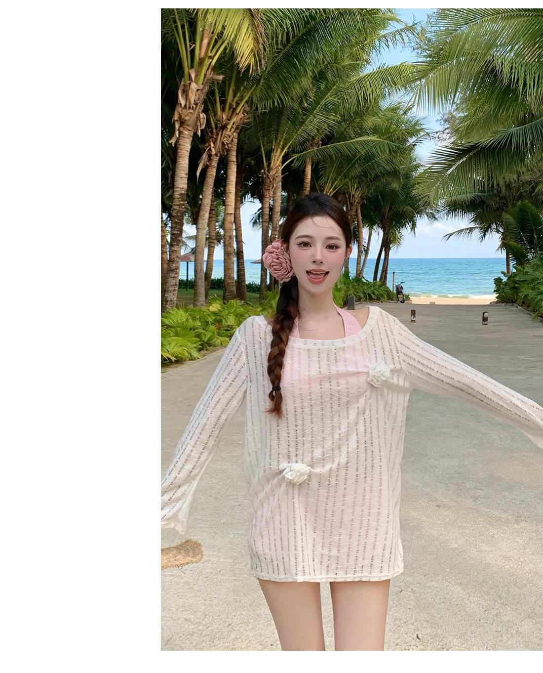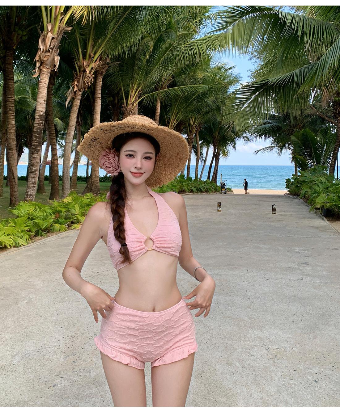 Traje de baño de tres piezas para niña dulce Traje de baño bikini para mujer Vacaciones de playa Lindo Protección solar Ropa exterior Bikini Traje de baño bikini