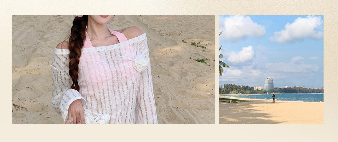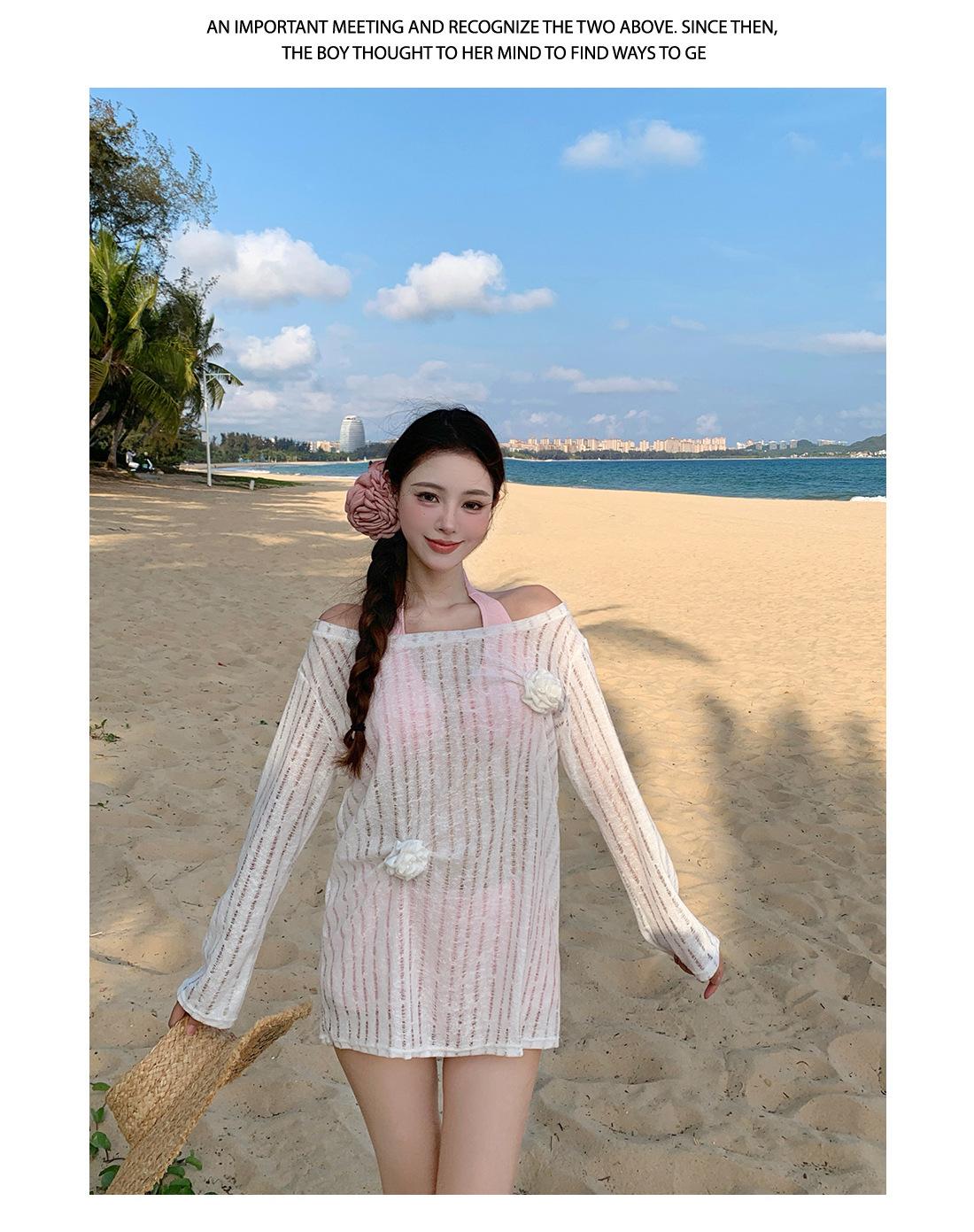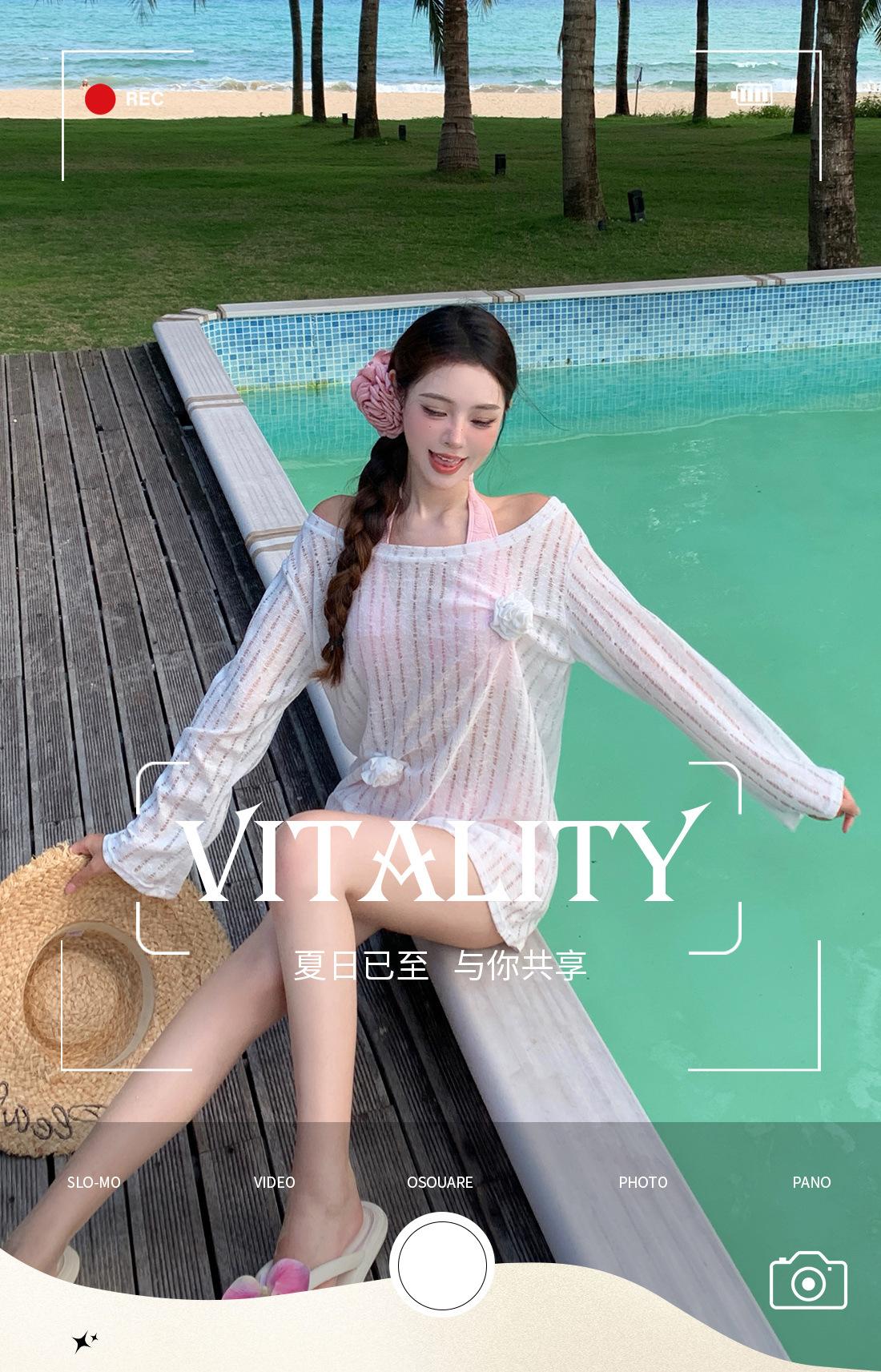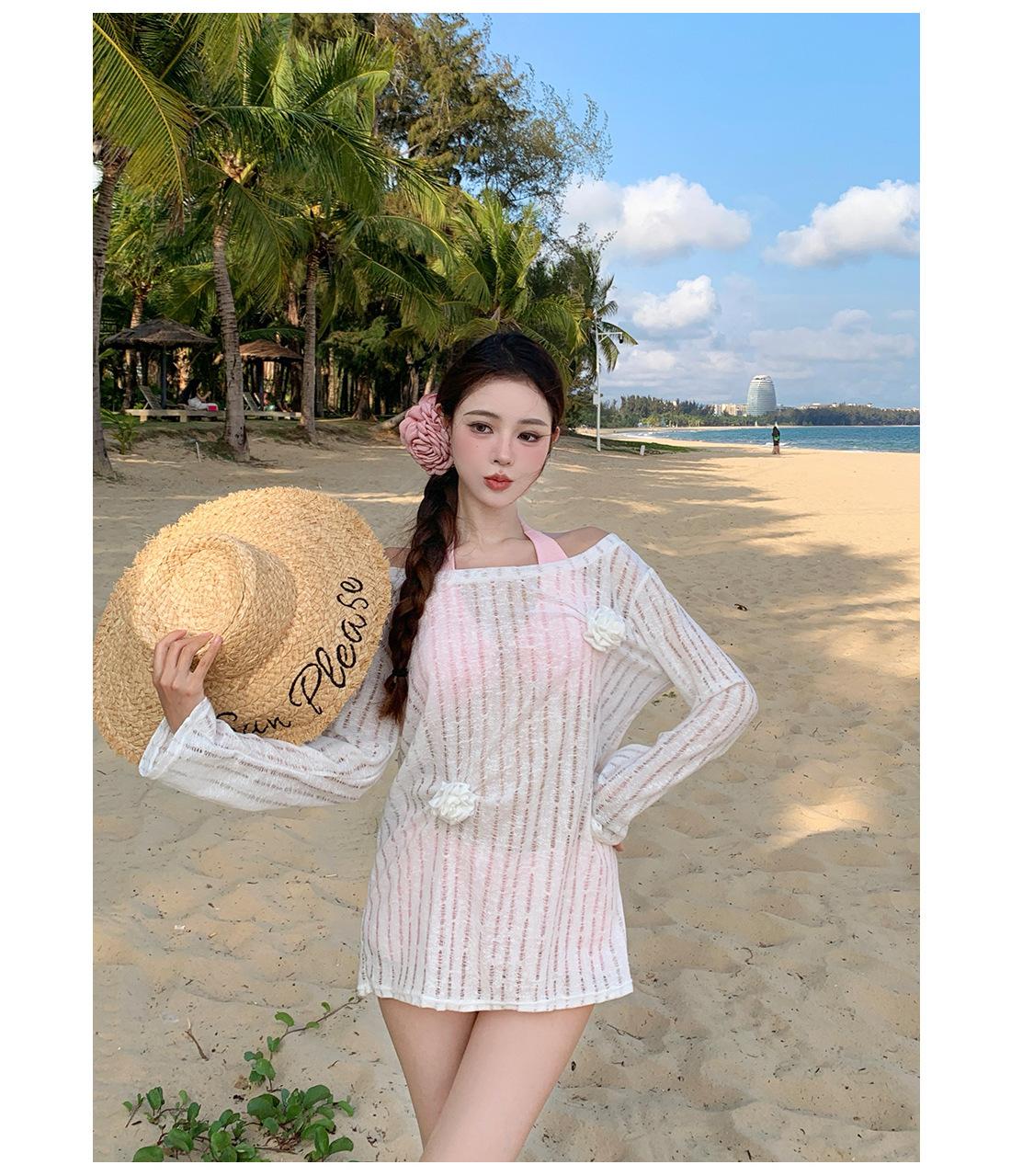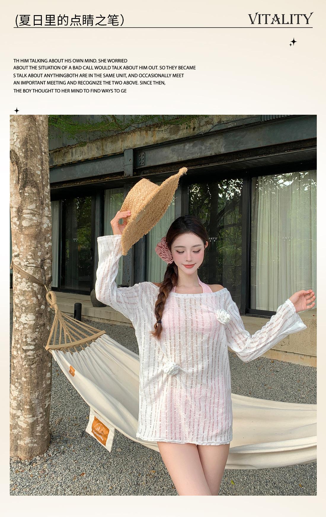 Traje de baño de tres piezas para niña dulce Traje de baño bikini para mujer Vacaciones de playa Lindo Protección solar Ropa exterior Bikini Traje de baño bikini