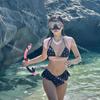 Deseo Puro Amor de Chica Caliente Camisola con Tirantes Halter Traje de Baño Sexy de Tres Piezas Separadas Bikini para Mujer