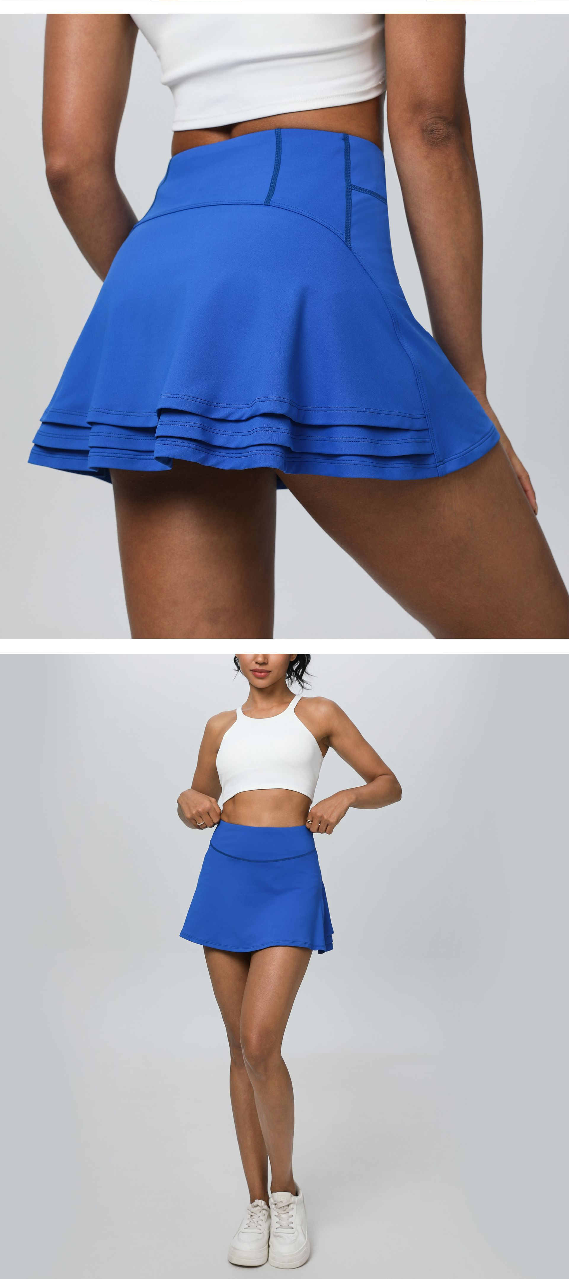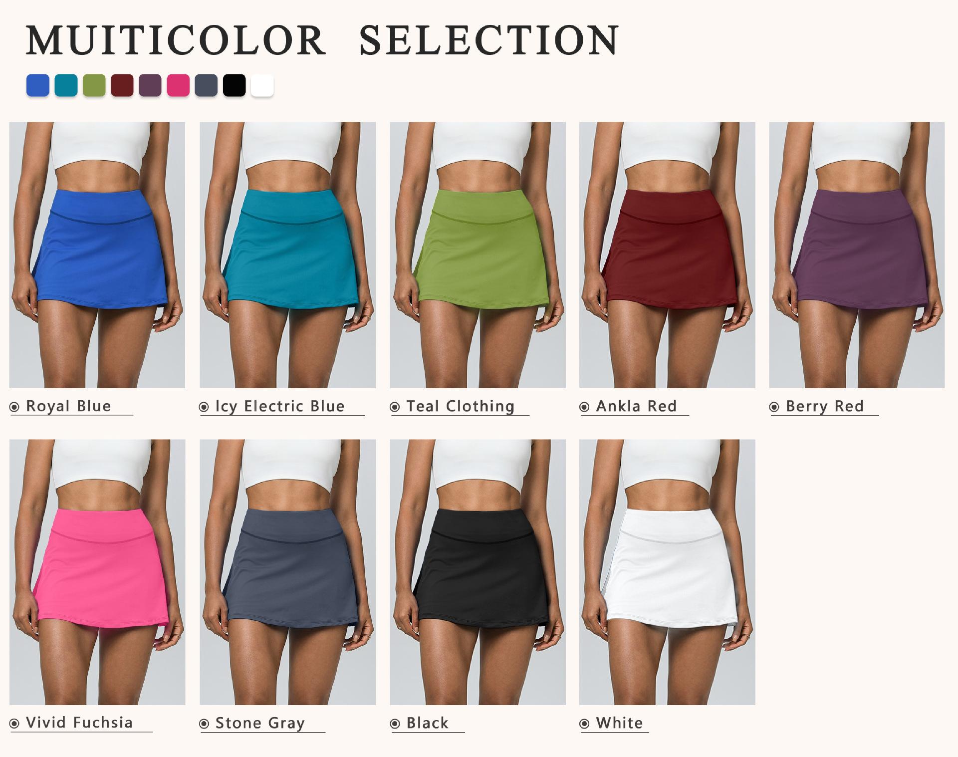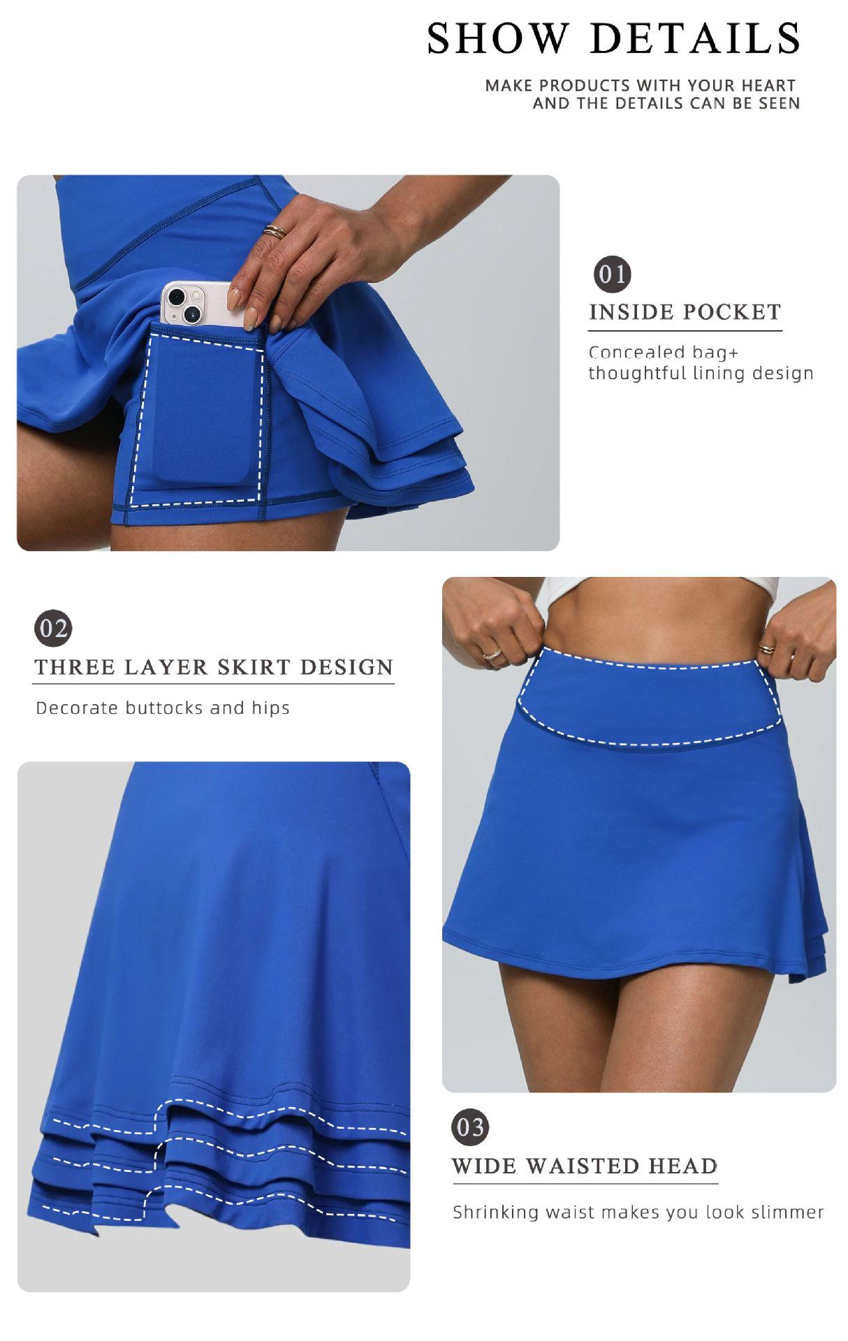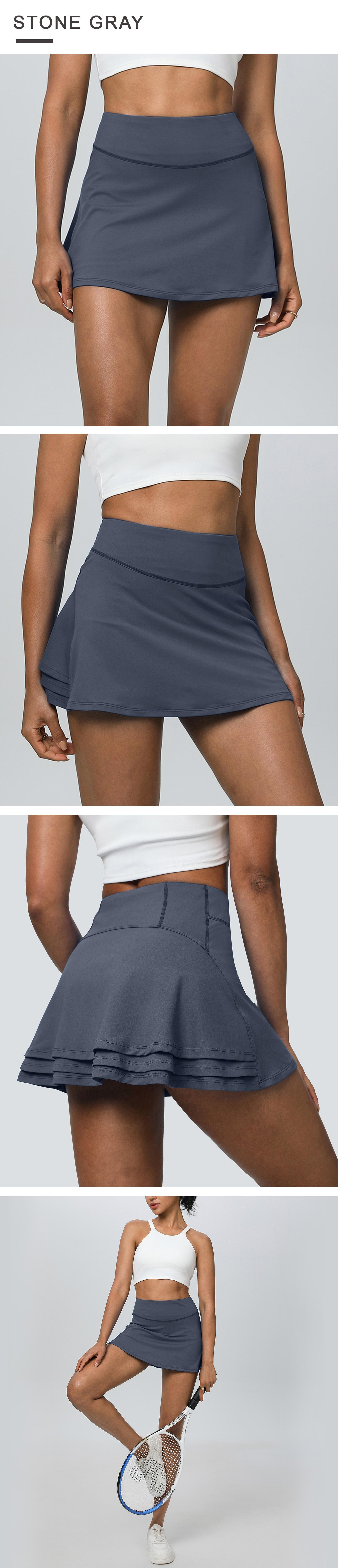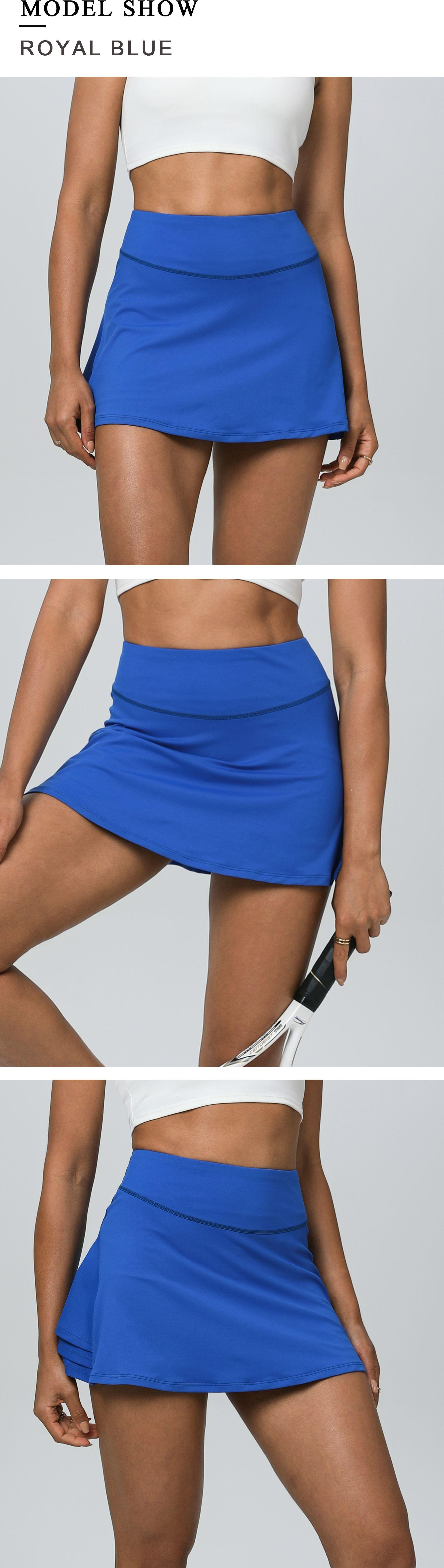Falda deportiva de running de cintura alta de dos piezas falsas para mujer, ropa de yoga de línea A, anti-exposición, falda de tenis de fitness de secado rápido con bolsillos