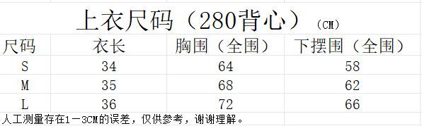 Vest 80% polyester plus 20% spandex, pants 75% nylon plus 25% spandex