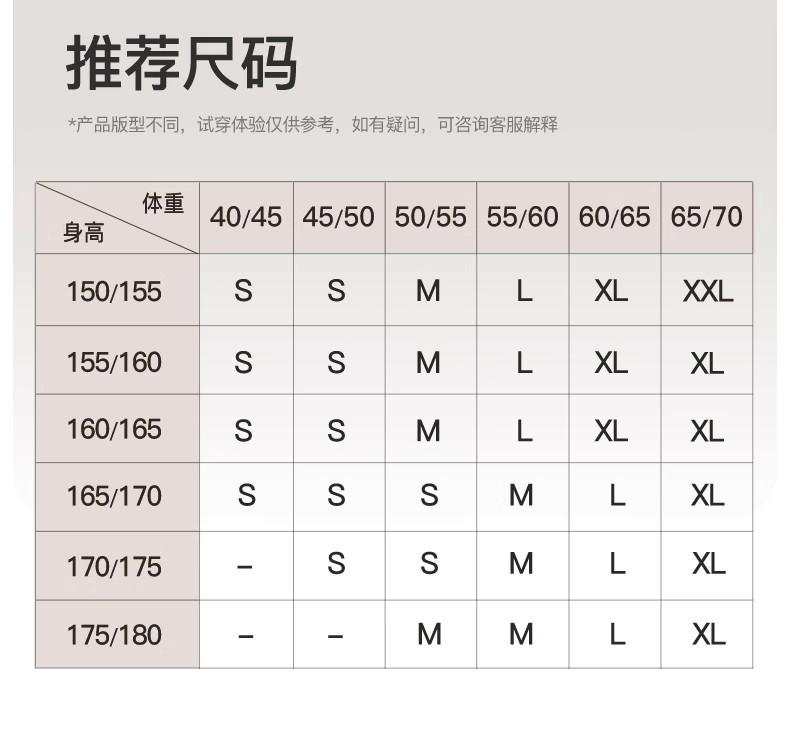 S (42.5-50kg ), M (50-57.5kg ), L (57.5-65kg ), Xl (65-70kg )