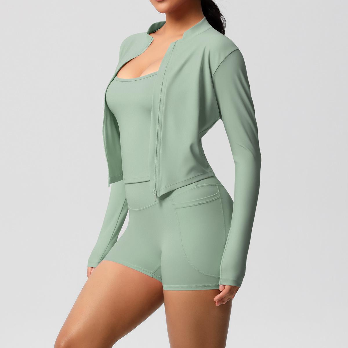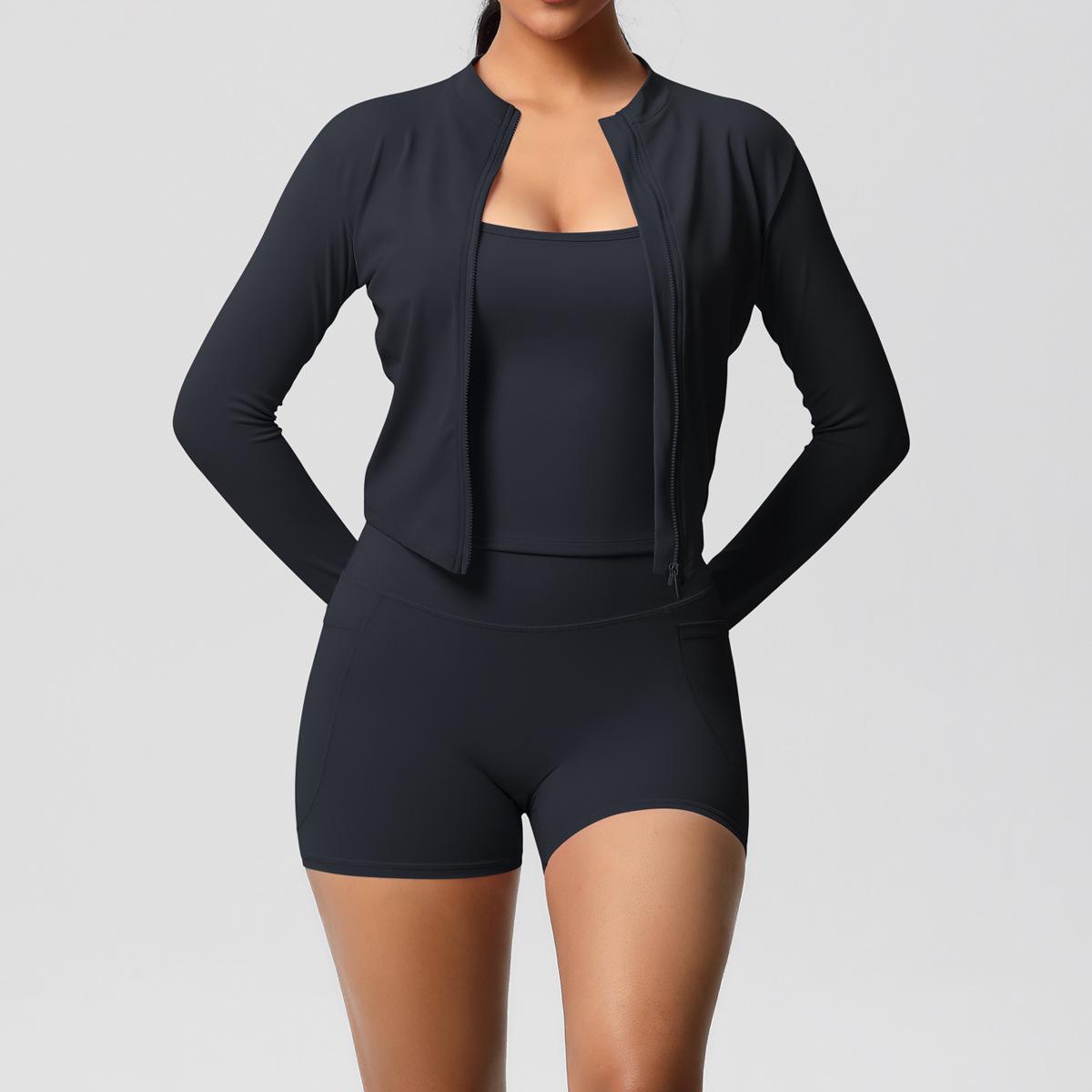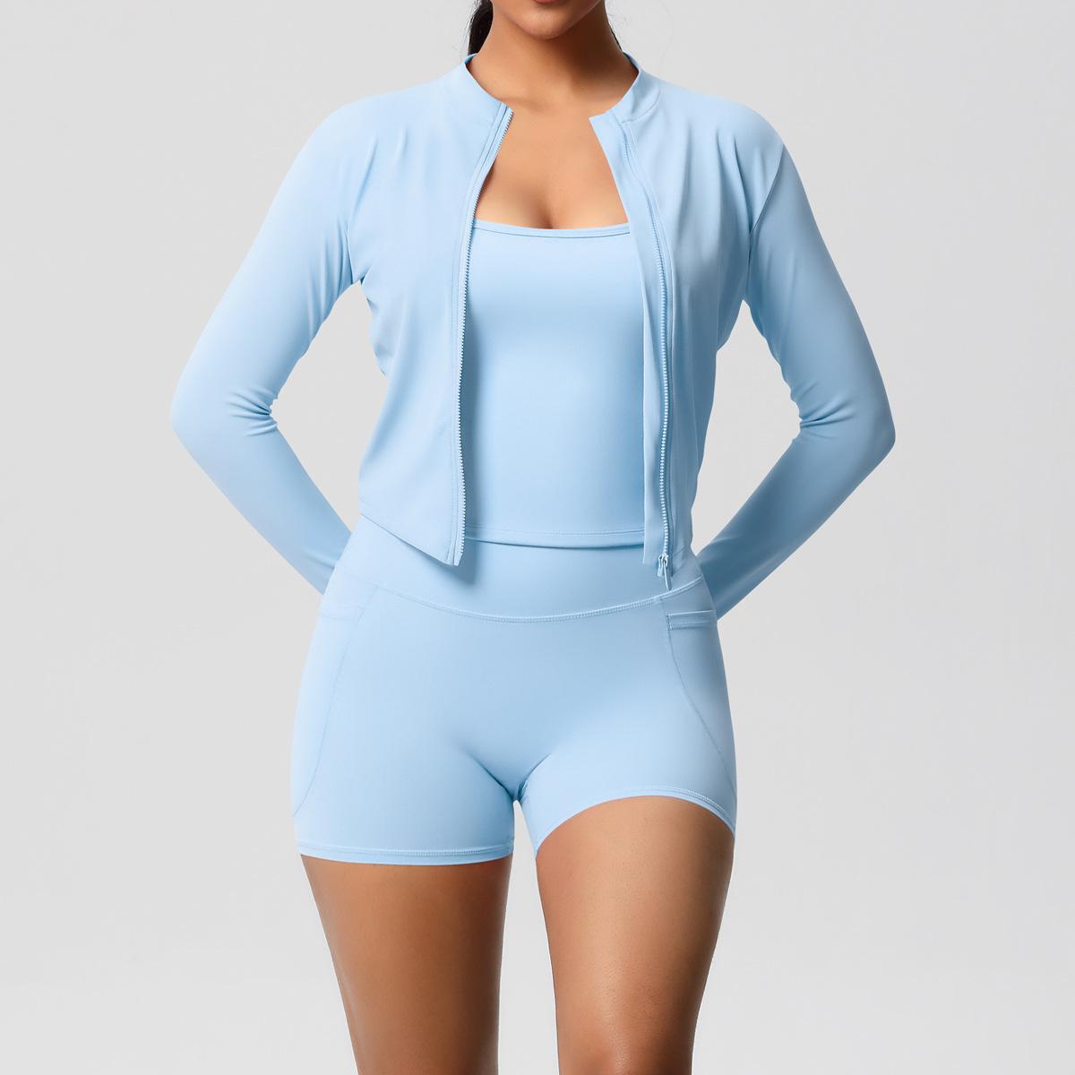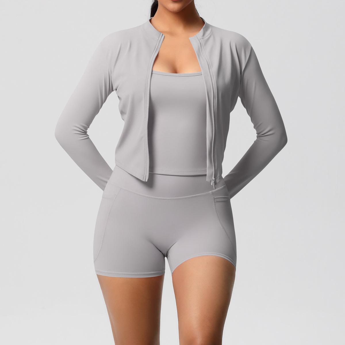 Transfronterizo Nuevo Chaleco Desnudo Ropa Ajustada Casual para Exterior Fitness Pantalones Cortos con Bolsillos Ropa de Yoga Conjunto Deportivo de Tres Piezas
