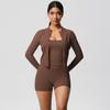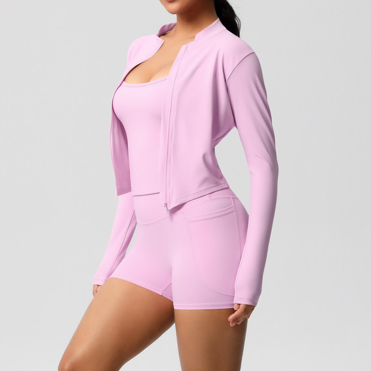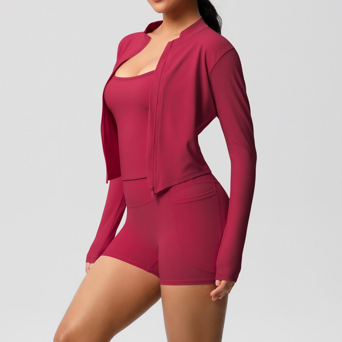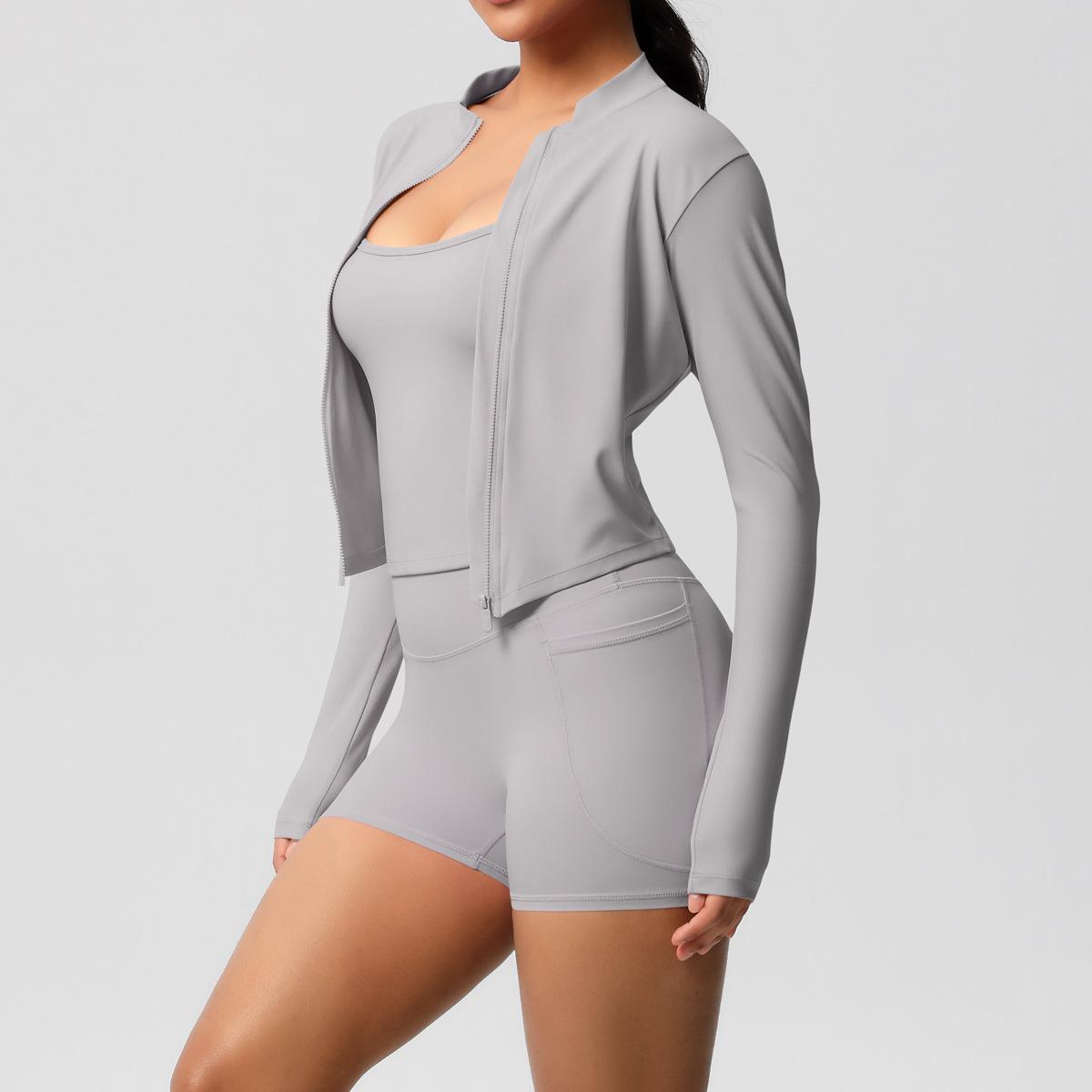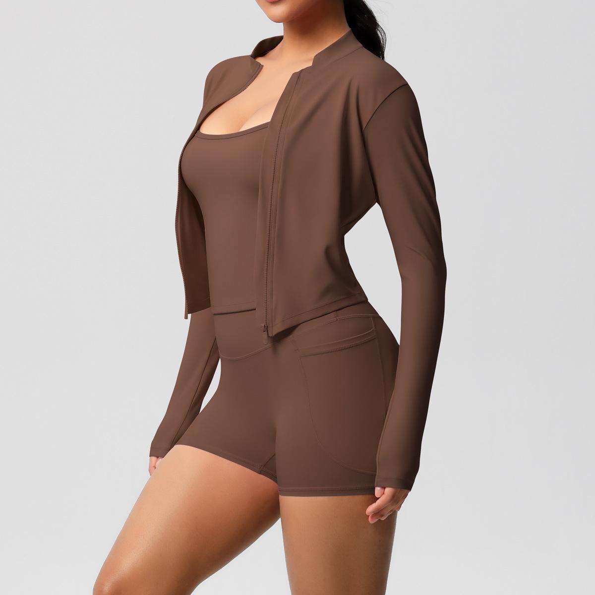 Transfronterizo Nuevo Chaleco Desnudo Ropa Ajustada Casual para Exterior Fitness Pantalones Cortos con Bolsillos Ropa de Yoga Conjunto Deportivo de Tres Piezas