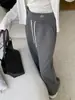 Pantalones deportivos holgados transpirables de cintura alta con cordón para mujer, pantalones rectos versátiles, drapeados, ajustados, casuales, de pierna ancha D25100