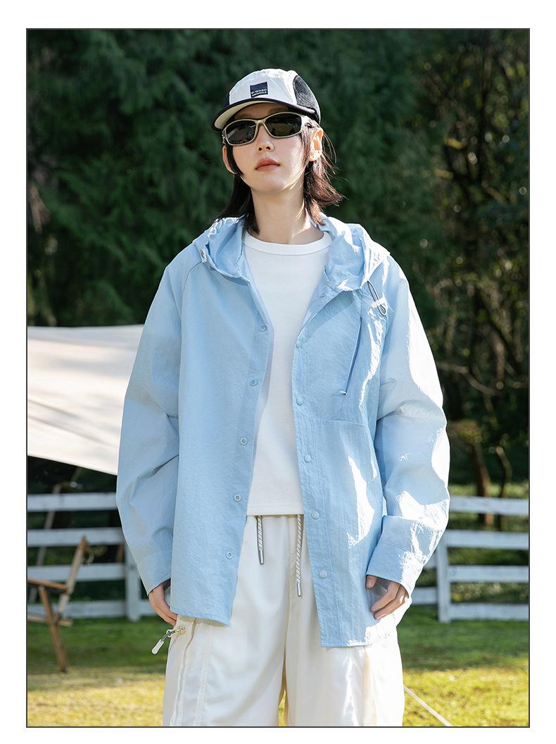 Ootd Ropa de Protección Solar para Exteriores Verano Versátil Ligera Anti-UV Ligera Transpirable Casual con Capucha Ropa de Piel Pareja