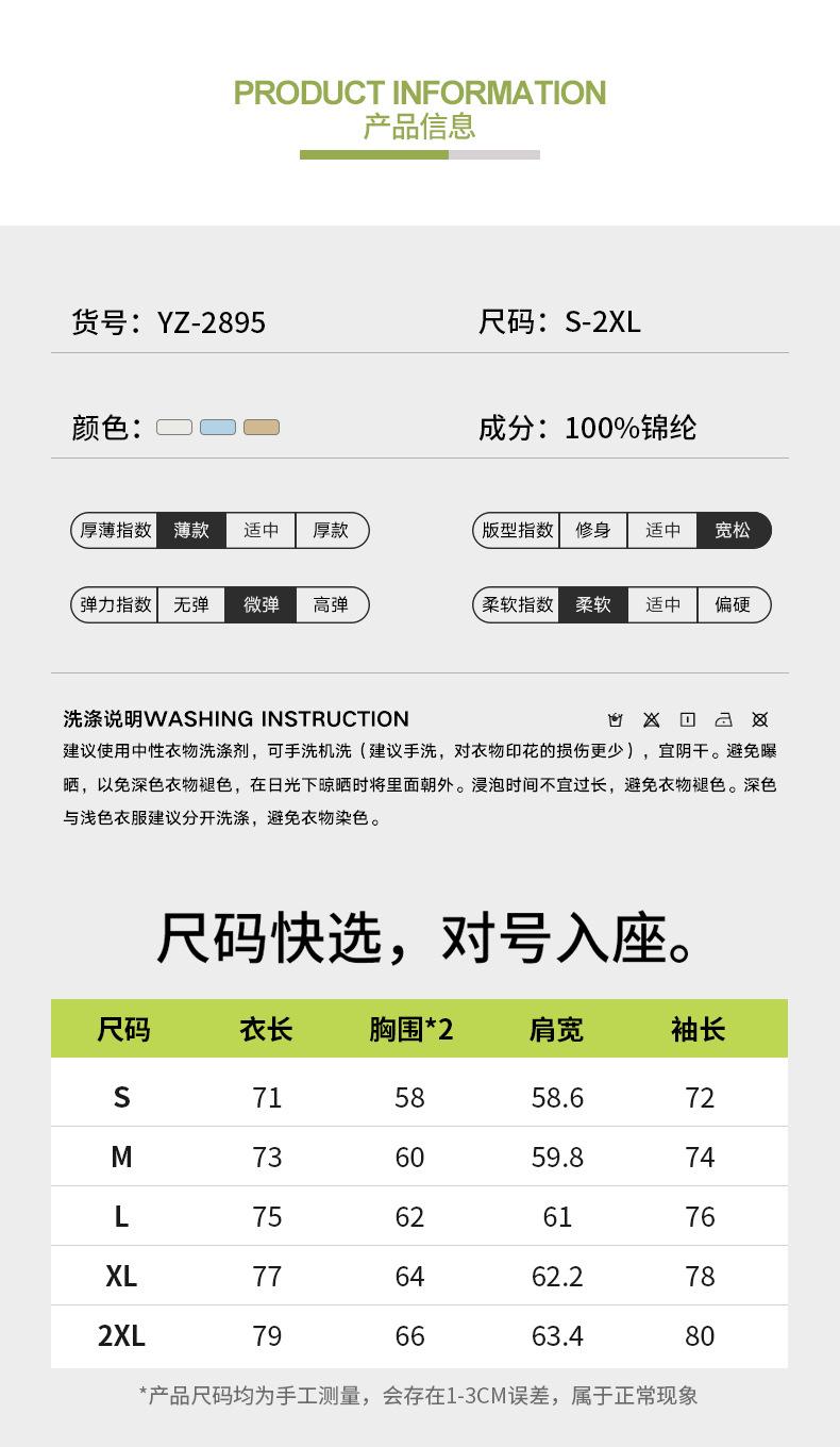 Shell rice, Glacier blue, Snow mountain white, Size chart