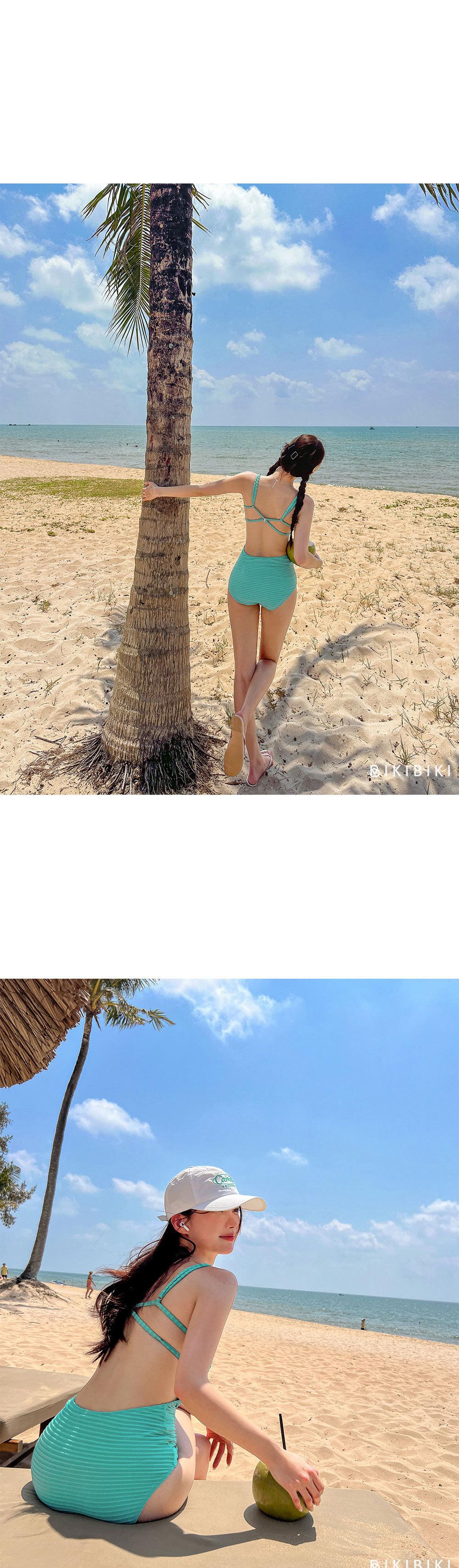 Traje de baño de una pieza liso para mujer verano 2024 nuevo tirantes cruzados en la espalda sexy chica hot bikini sexy