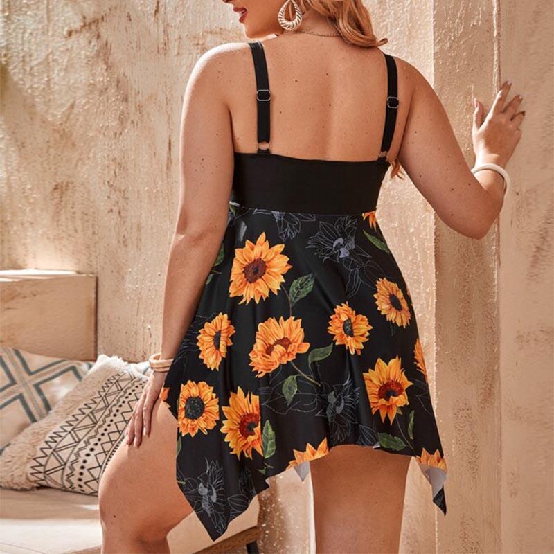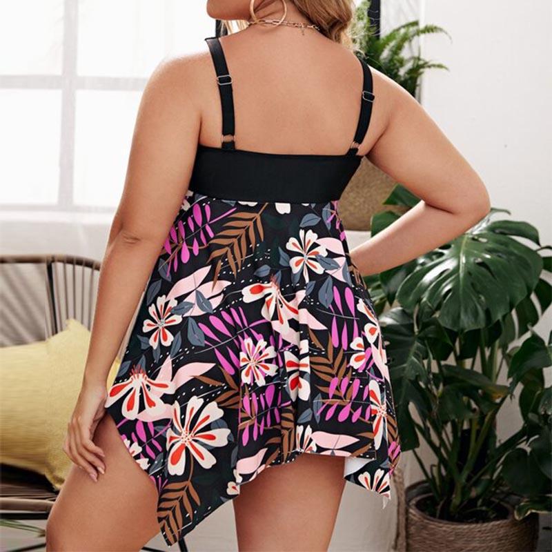 [Tankini Europeo y Americano para Mujeres Gordas] Calzoncillo Estampado Estilo Falda, Traje de Baño Adelgazante de Talla Grande, Modelo Más Vendido Transfronterizo