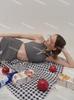 [4 Colores] Traje de Baño Coreano a Cuadros Estilo Ins Lindo para Niña Vacaciones de Primavera Caliente Adelgazante Traje de Baño de Falda de Tres Piezas para Mujer