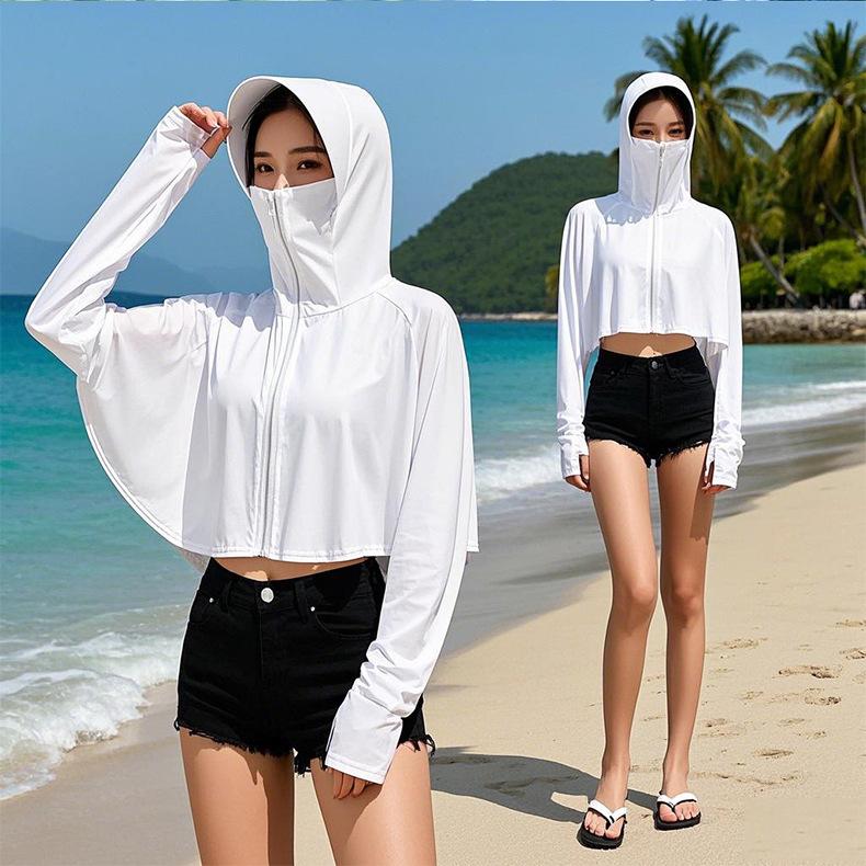 Ropa de Protección Solar de Seda de Hielo Fina de Verano para Mujer, Chaqueta Transpirable Super Atractiva, Ropa de Protección Solar con Capucha Anti-UV para Ciclismo al Aire Libre