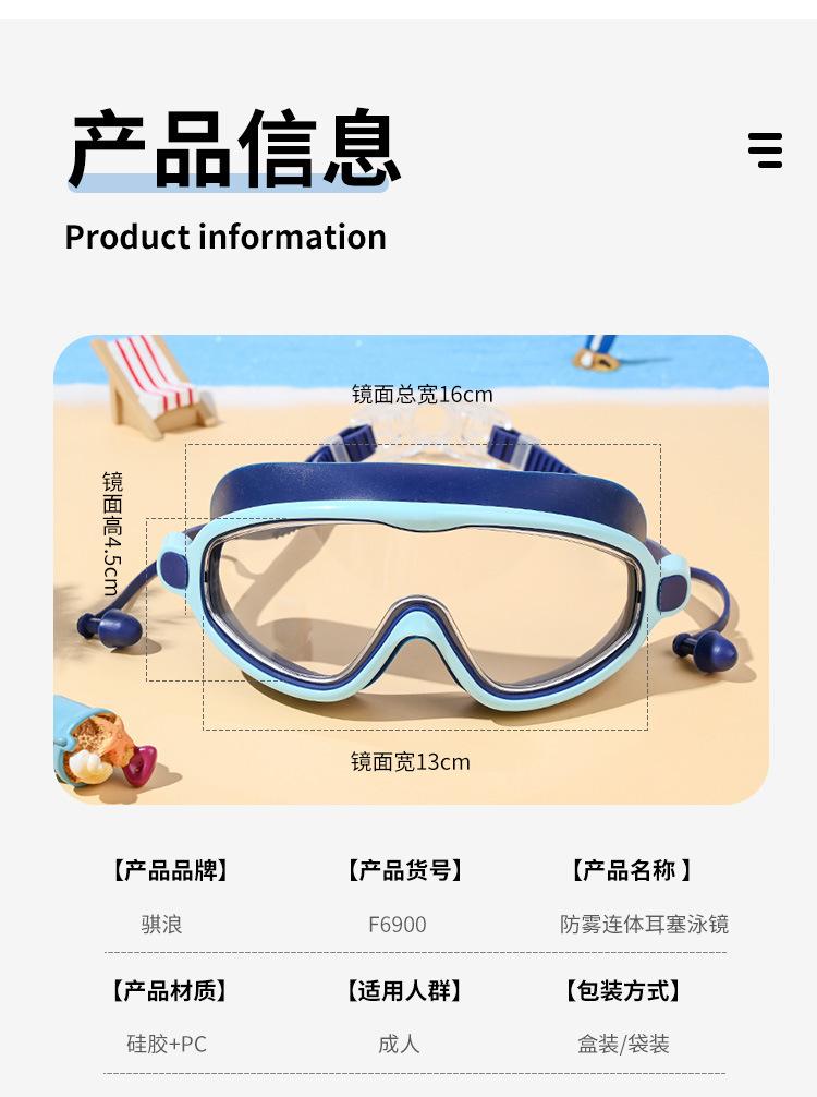 Gafas de Natación Universales para Hombres y Mujeres, Impermeables de Alta Definición, Antivaho, Tapones para los Oídos de Marco Grande, Gafas Integradas, Gafas de Natación Profesionales