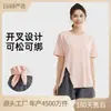 Traje de Yoga con Abertura para Primavera y Otoño, Blusa Holgada Transpirable, Camiseta, Shorts Deportivos Anti-Exposición, Traje para Correr