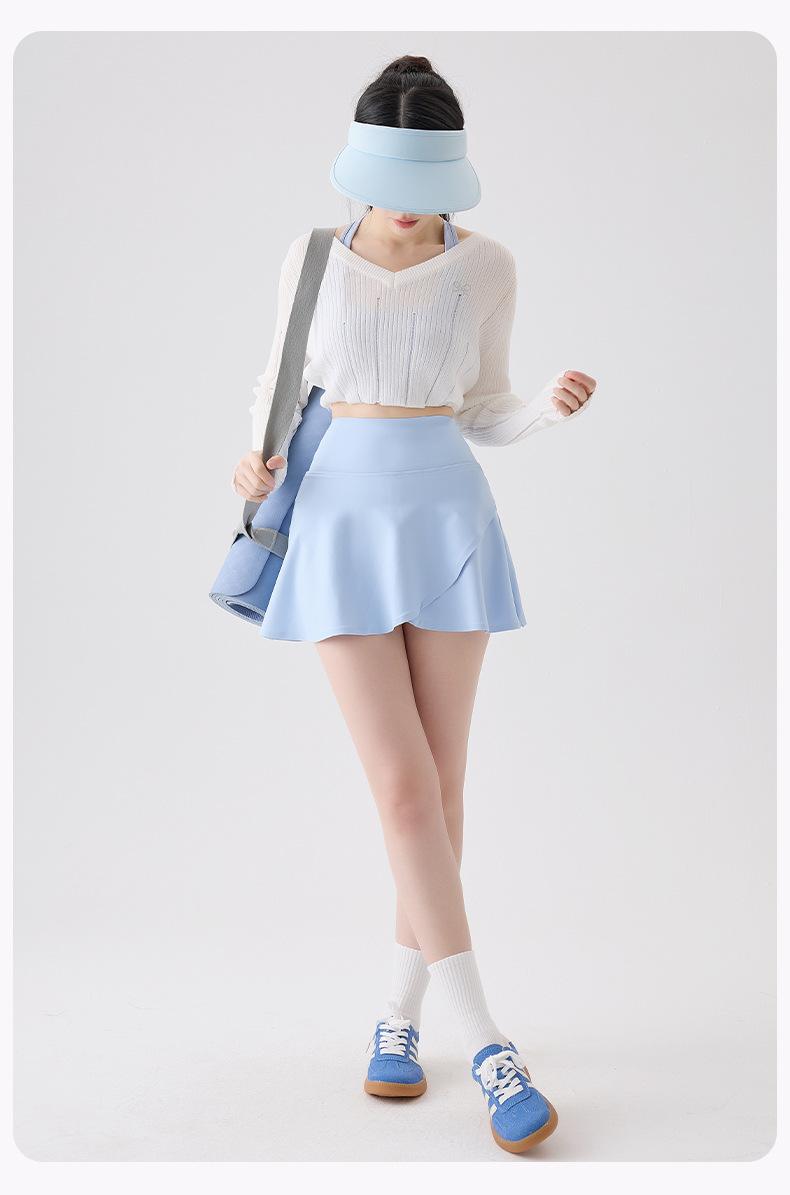 Falda Corta de Yoga para Mujer Verano Cintura Alta Fitness Deportes Tenis Falda Nueva Bádminton Antiexposición Falda Plisada
