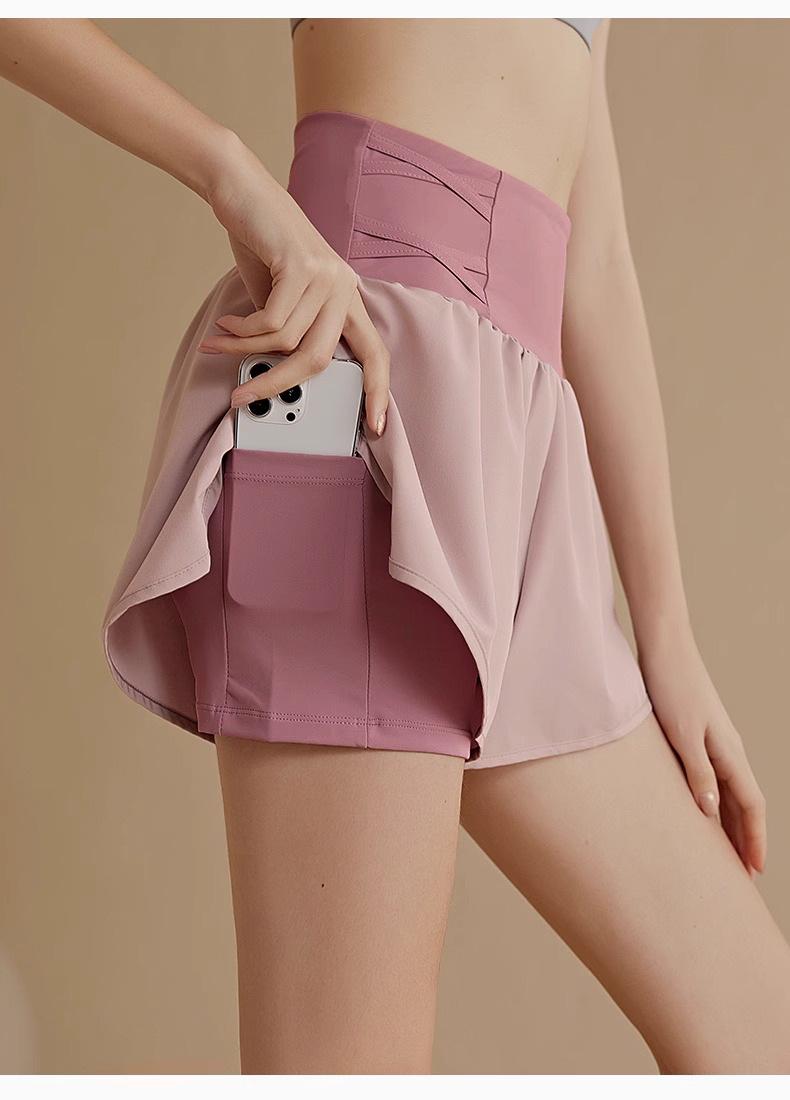 Shorts Deportivos Falsos de Dos Piezas para Mujer, Verano Delgados para Correr, Entrenamiento, Anti-Exposición, Pantalones de Fitness, Sueltos, Transpirables, Secado Rápido, Pantalones de Yoga