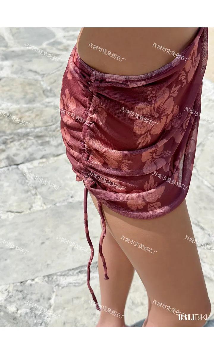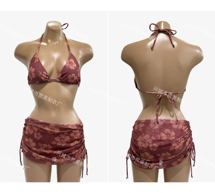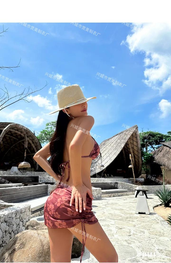 Bikini Sexy Caliente Japonés y Coreano de Alta Gama con Tirantes Ins Adelgazante Dividido Falda con Cordón Traje de Baño de Tres Piezas para Mujer