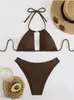 Traje de baño dividido transfronterizo nuevo para mujer, bikini rosa de pecho plano sexy de cintura alta, traje de baño de comercio exterior europeo y americano