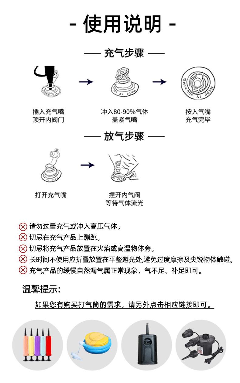 4、No usar en mar profundo, corrientes rápidas y lugares con olas grandes. Los productos inflables se pueden inflar inmediatamente después de la compra, pero solo se pueden usar 8 horas después del primer inflado (preferiblemente 12 horas), ya que los cordones y las costuras dentro de la cámara de aire necesitan un proceso de amortiguación.