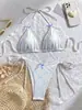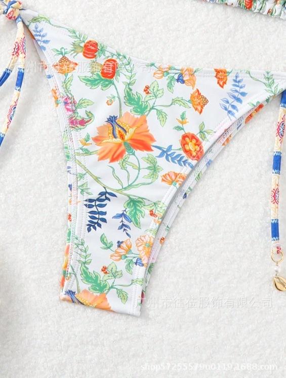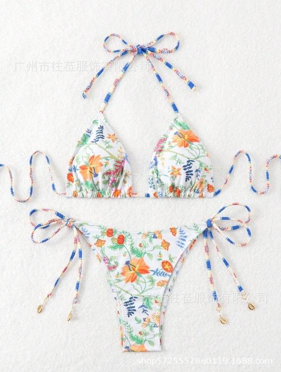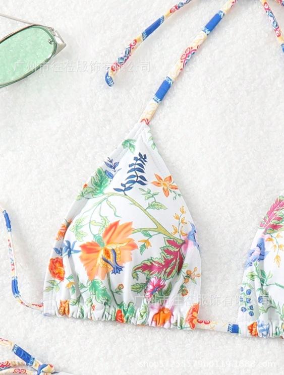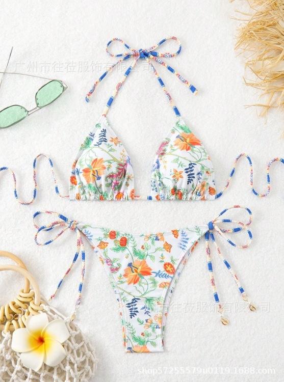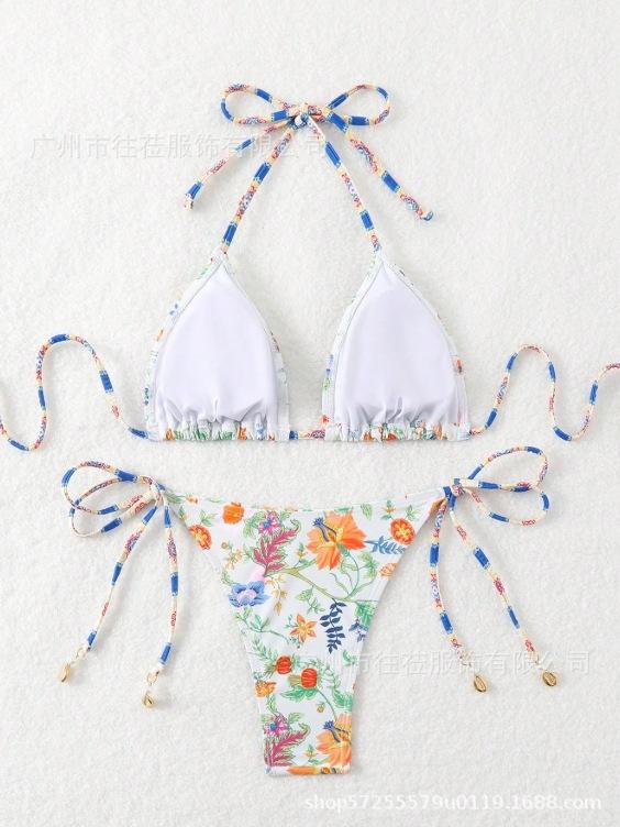 2025 Nuevo Bikini Sexy de Playa con Cordones de Encaje Floral Europeo y Americano de Moda para Mujer
