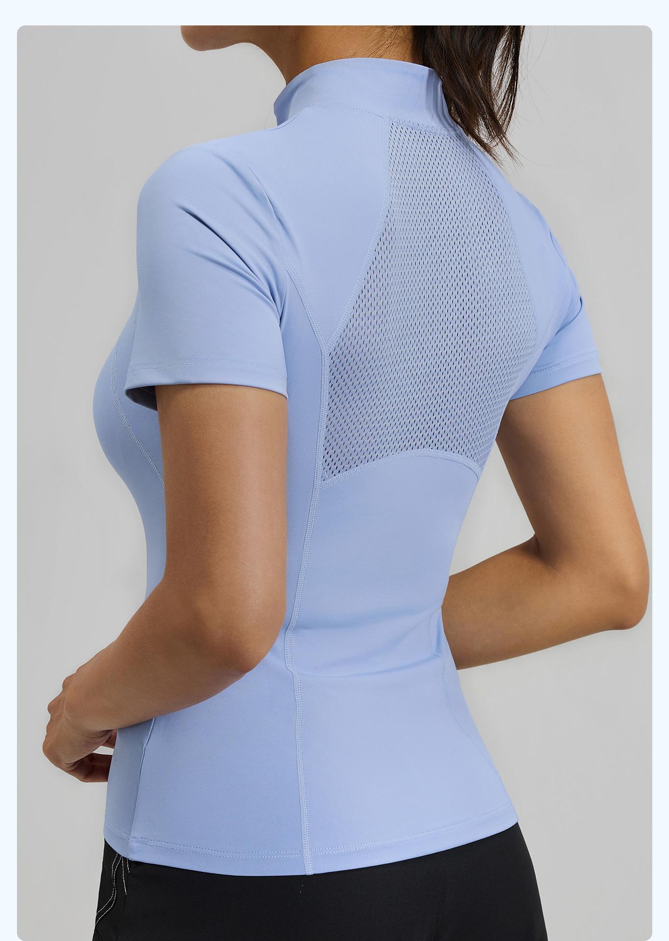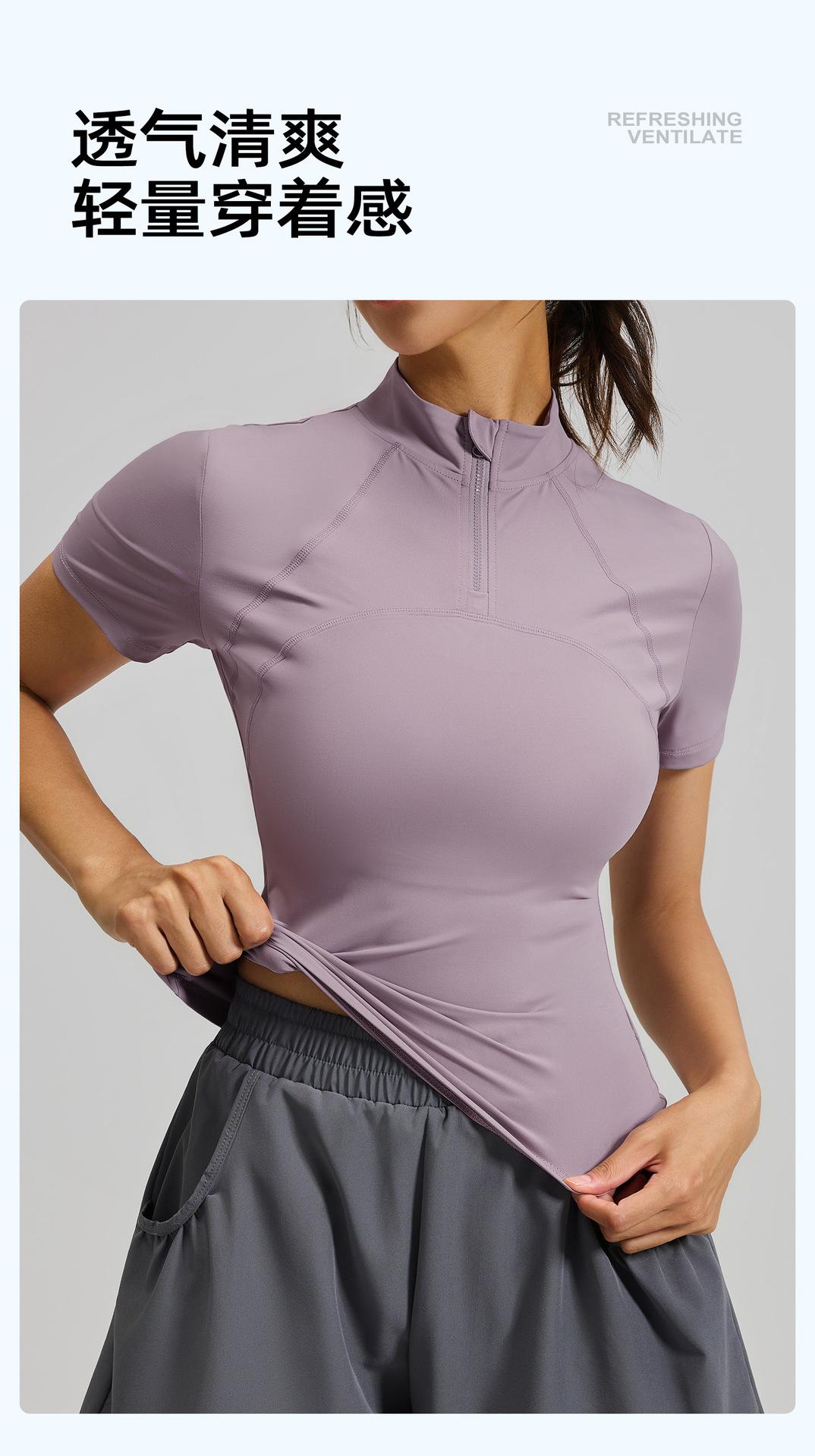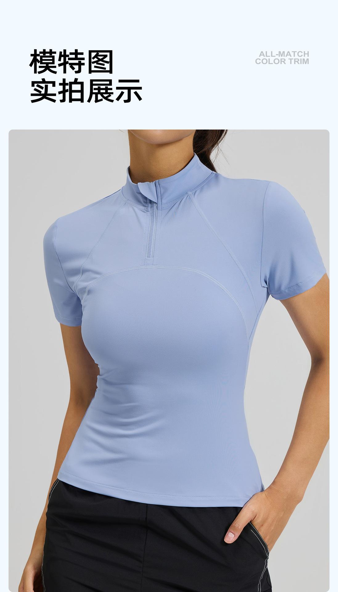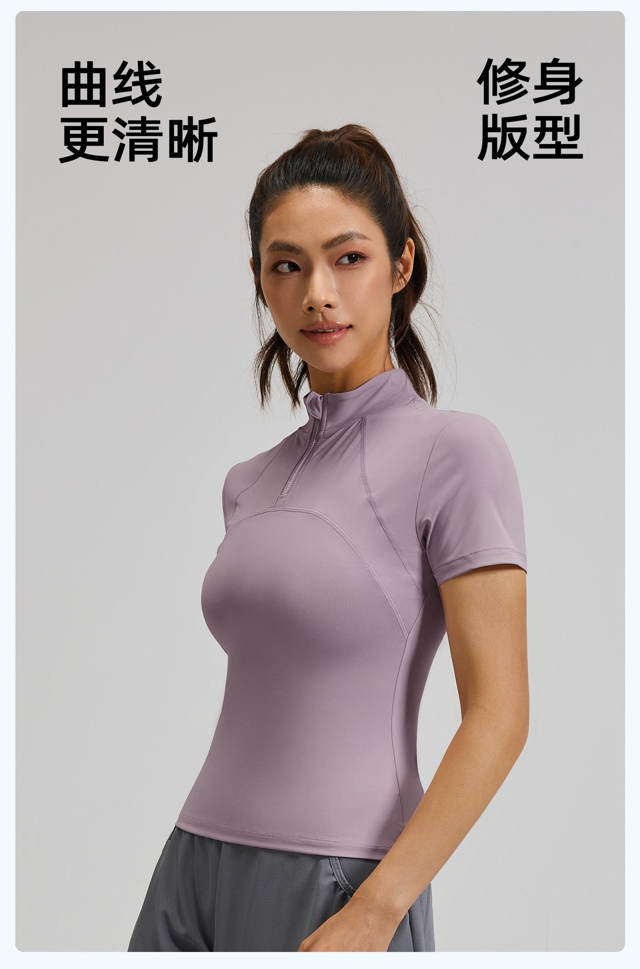 Primavera y Verano Nuevo Outdoor Running Fitness Yoga Manga Corta Media Cremallera Look Adelgazante Alta Elasticidad Ropa de Fitness Camiseta