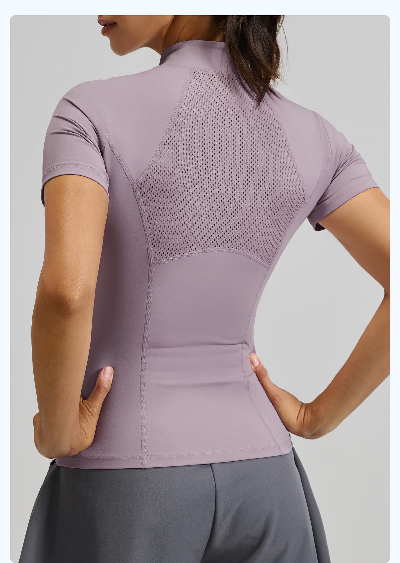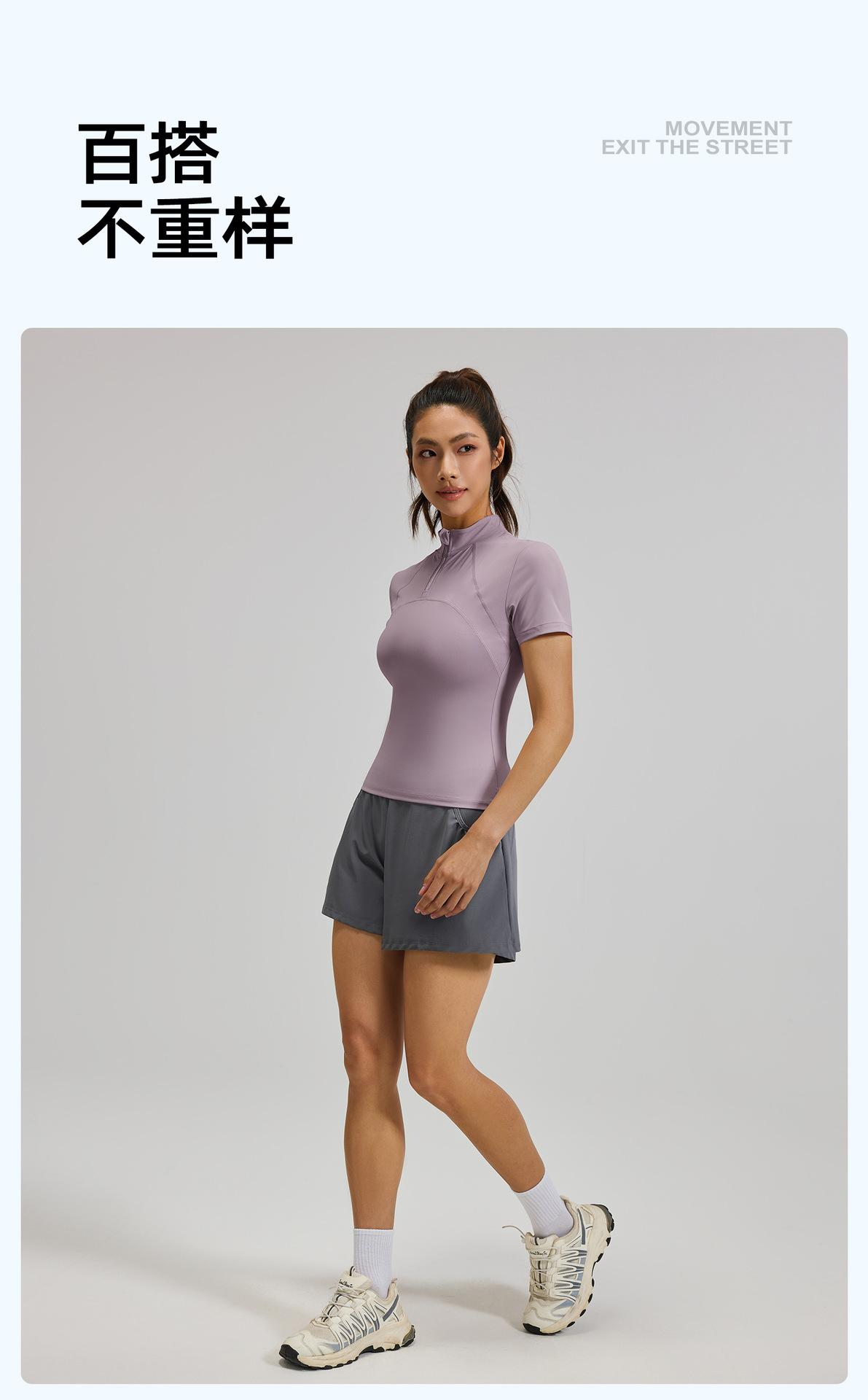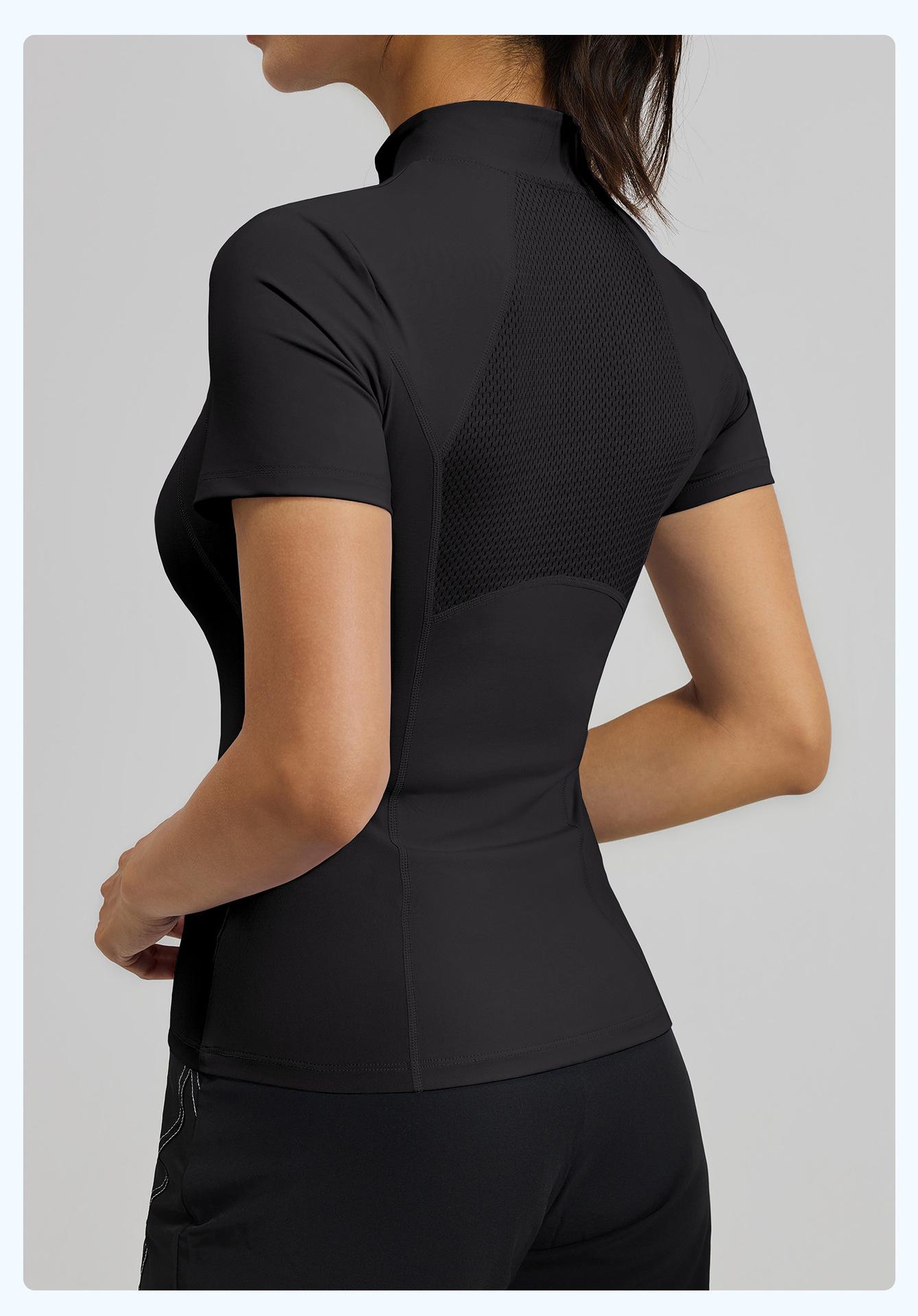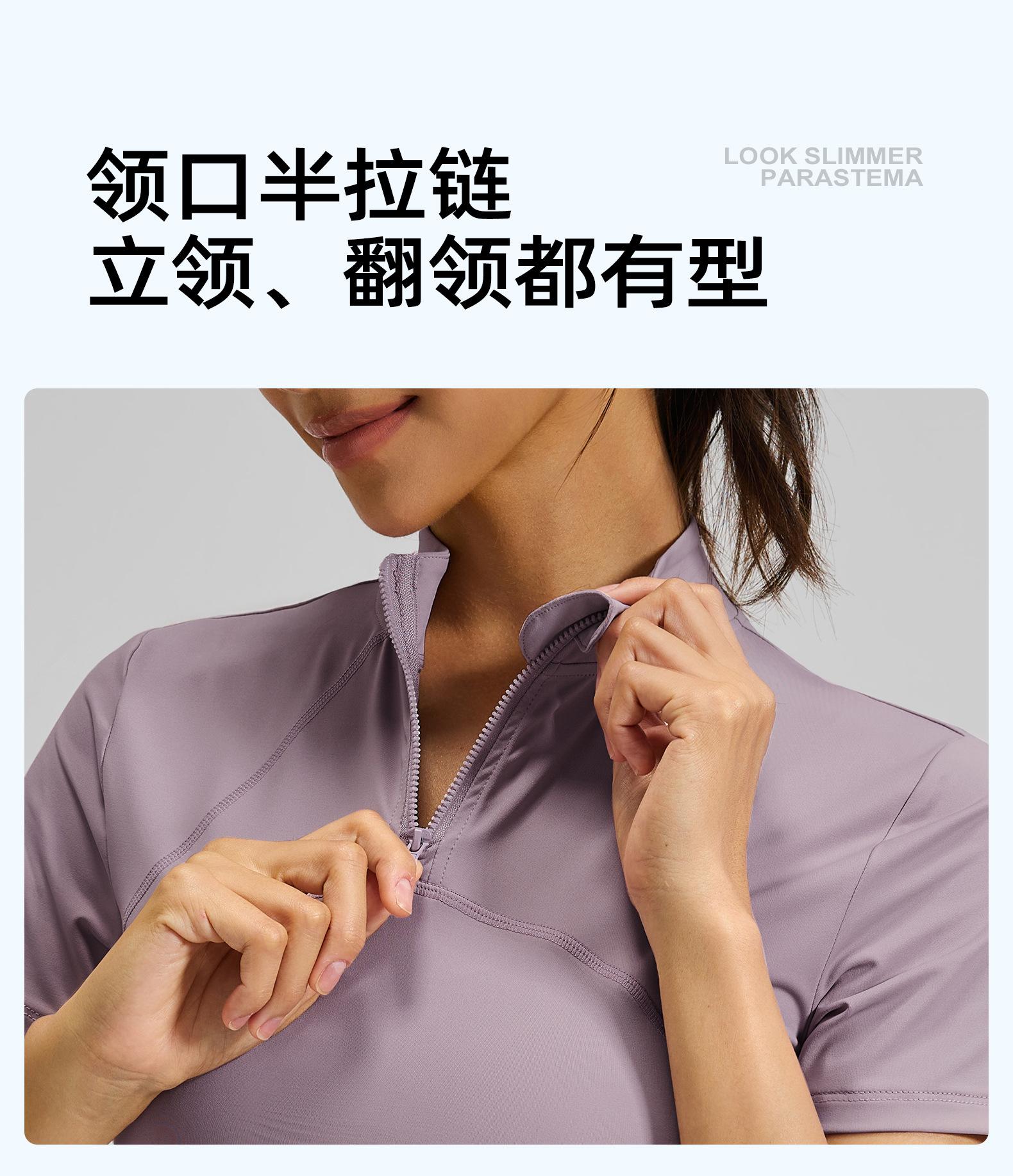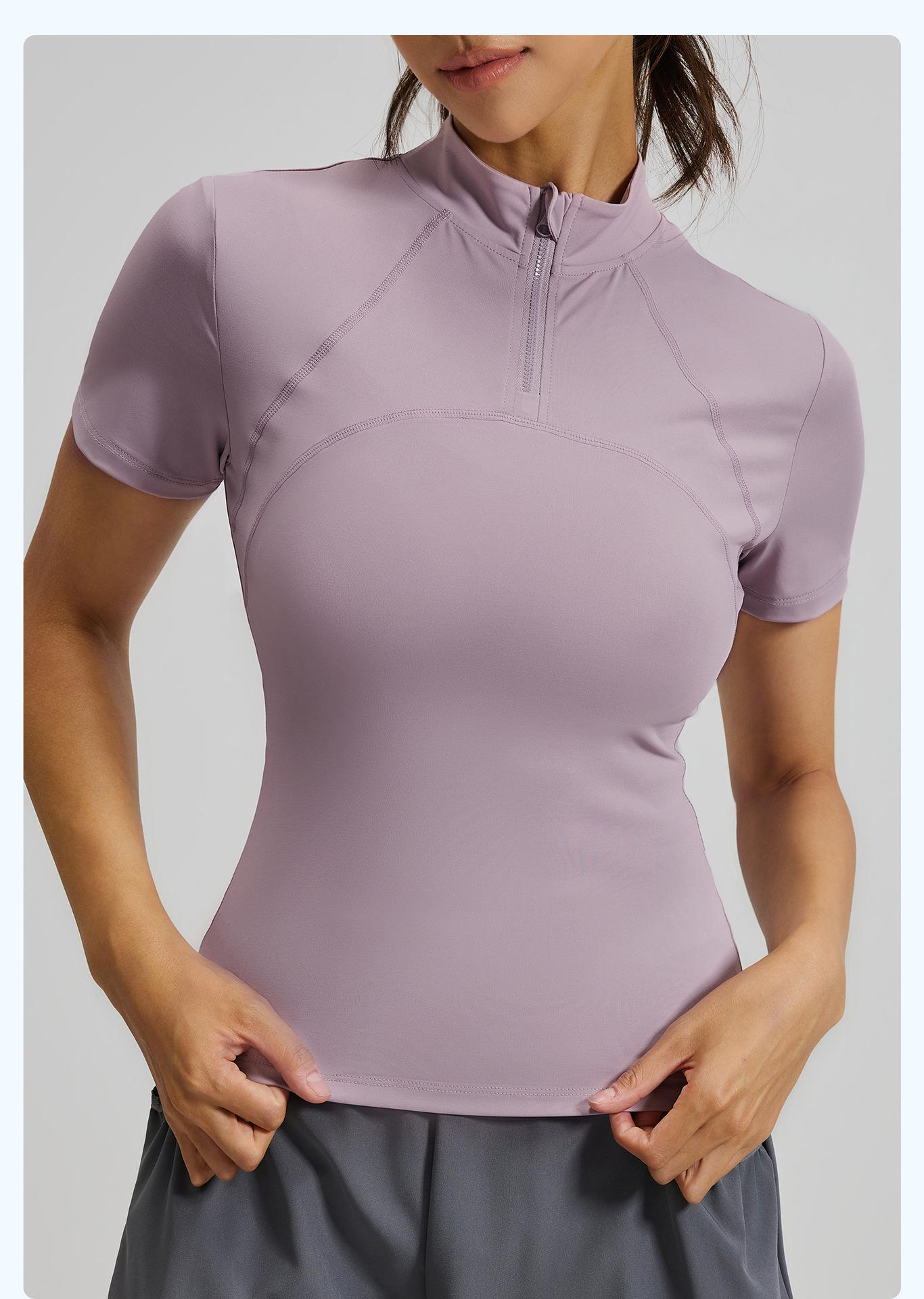 Primavera y Verano Nuevo Outdoor Running Fitness Yoga Manga Corta Media Cremallera Look Adelgazante Alta Elasticidad Ropa de Fitness Camiseta