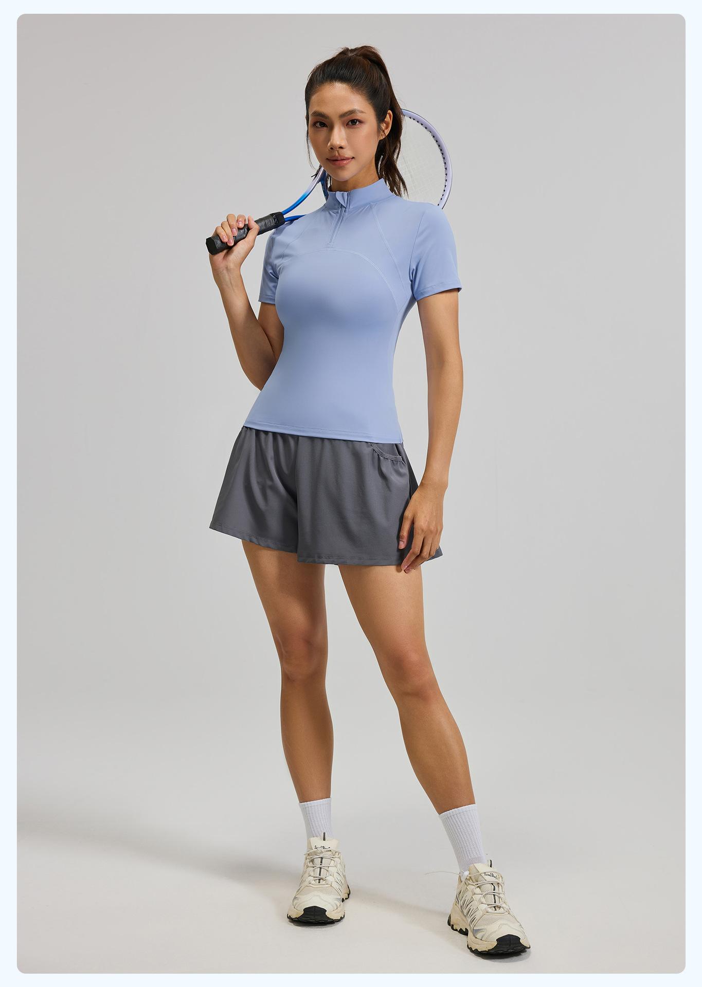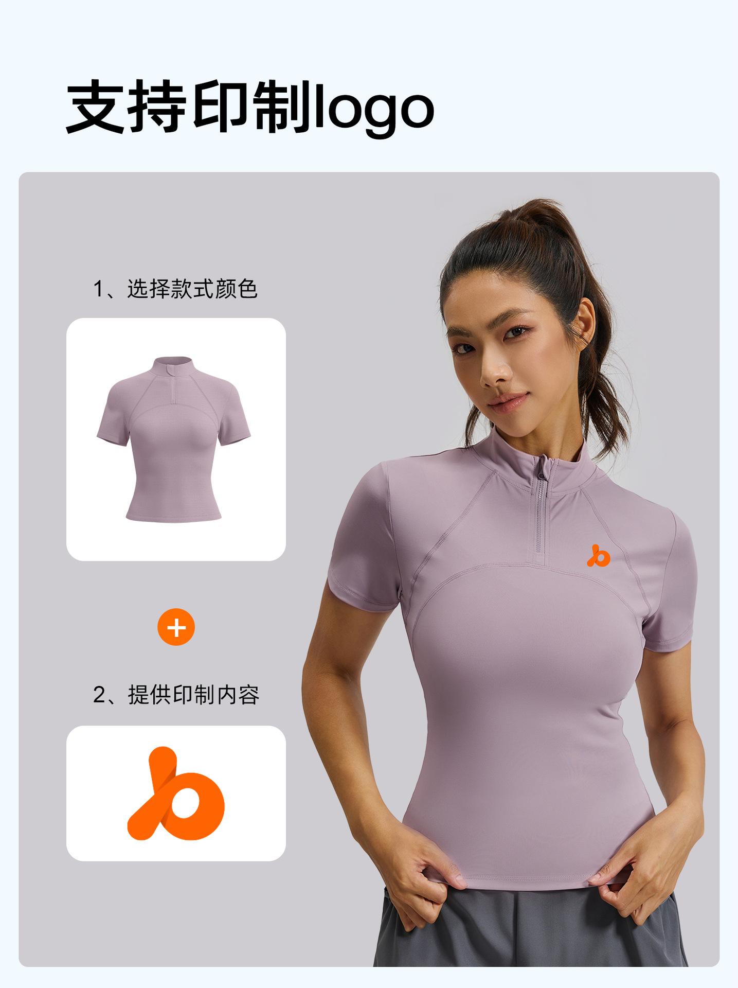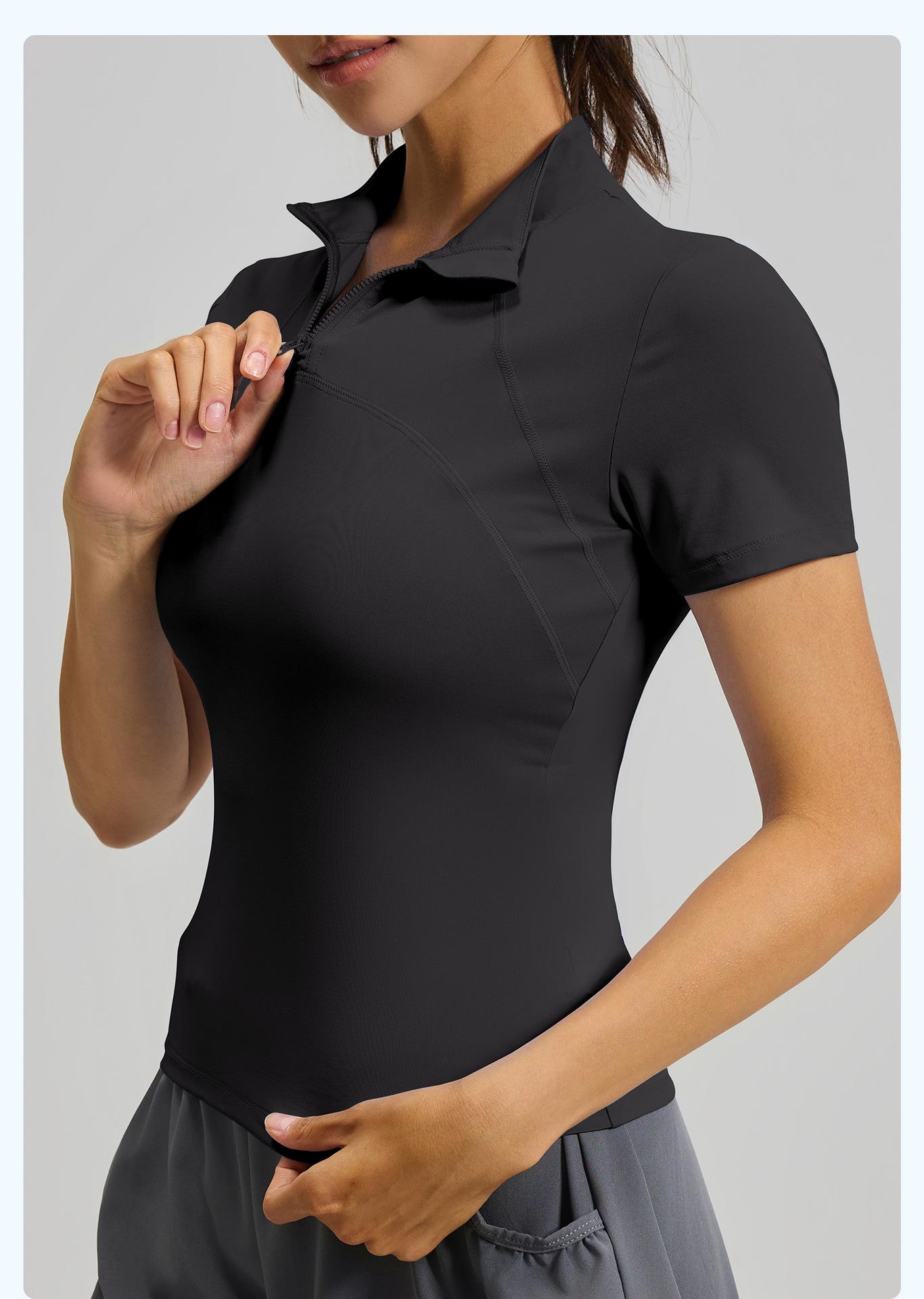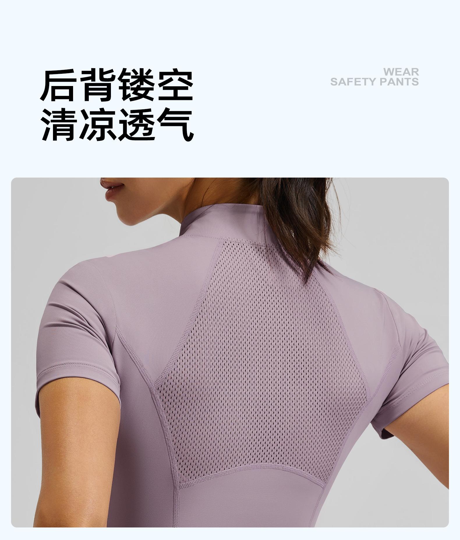 Primavera y Verano Nuevo Outdoor Running Fitness Yoga Manga Corta Media Cremallera Look Adelgazante Alta Elasticidad Ropa de Fitness Camiseta