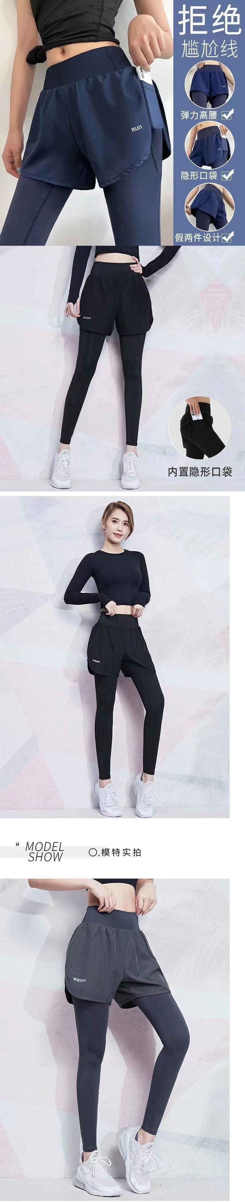 Nuevos Pantalones de Fitness para Mujer de Cintura Alta Levanta Glúteos, Falso de Dos Piezas con Bolsillos, Leggings Deportivos de Secado Rápido para Correr, Pantalones de Yoga Ajustados