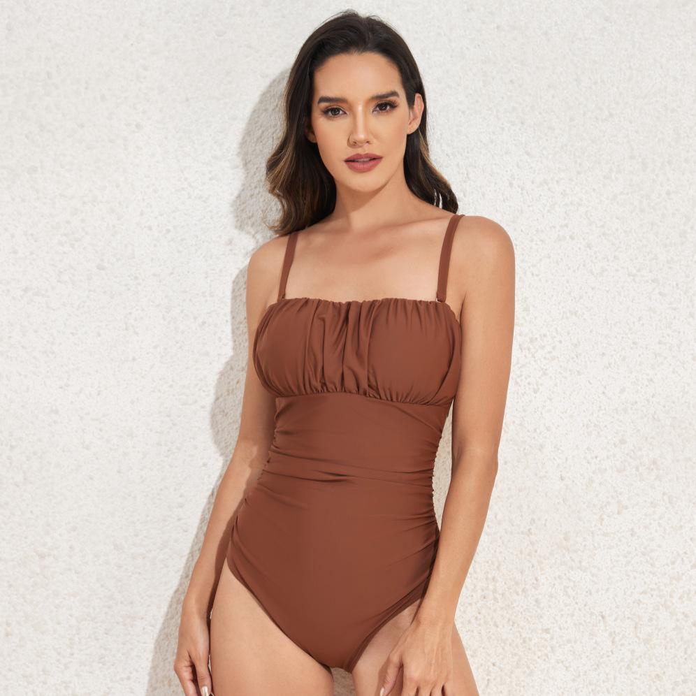 Traje de baño para mujer 2025 Nueva Moda Traje de baño de una pieza Arrugado en el pecho Traje de baño adelgazante Tirante de hombro desmontable Traje de baño europeo y americano