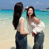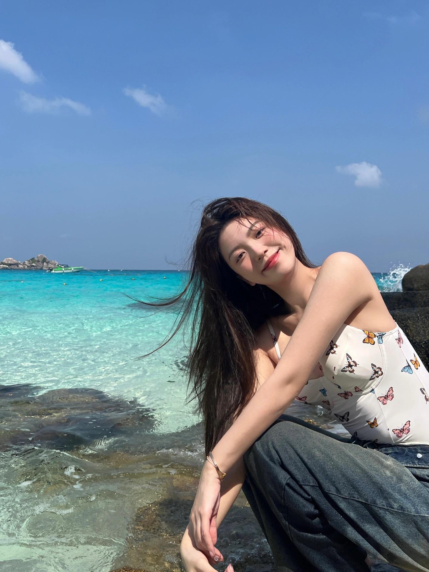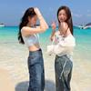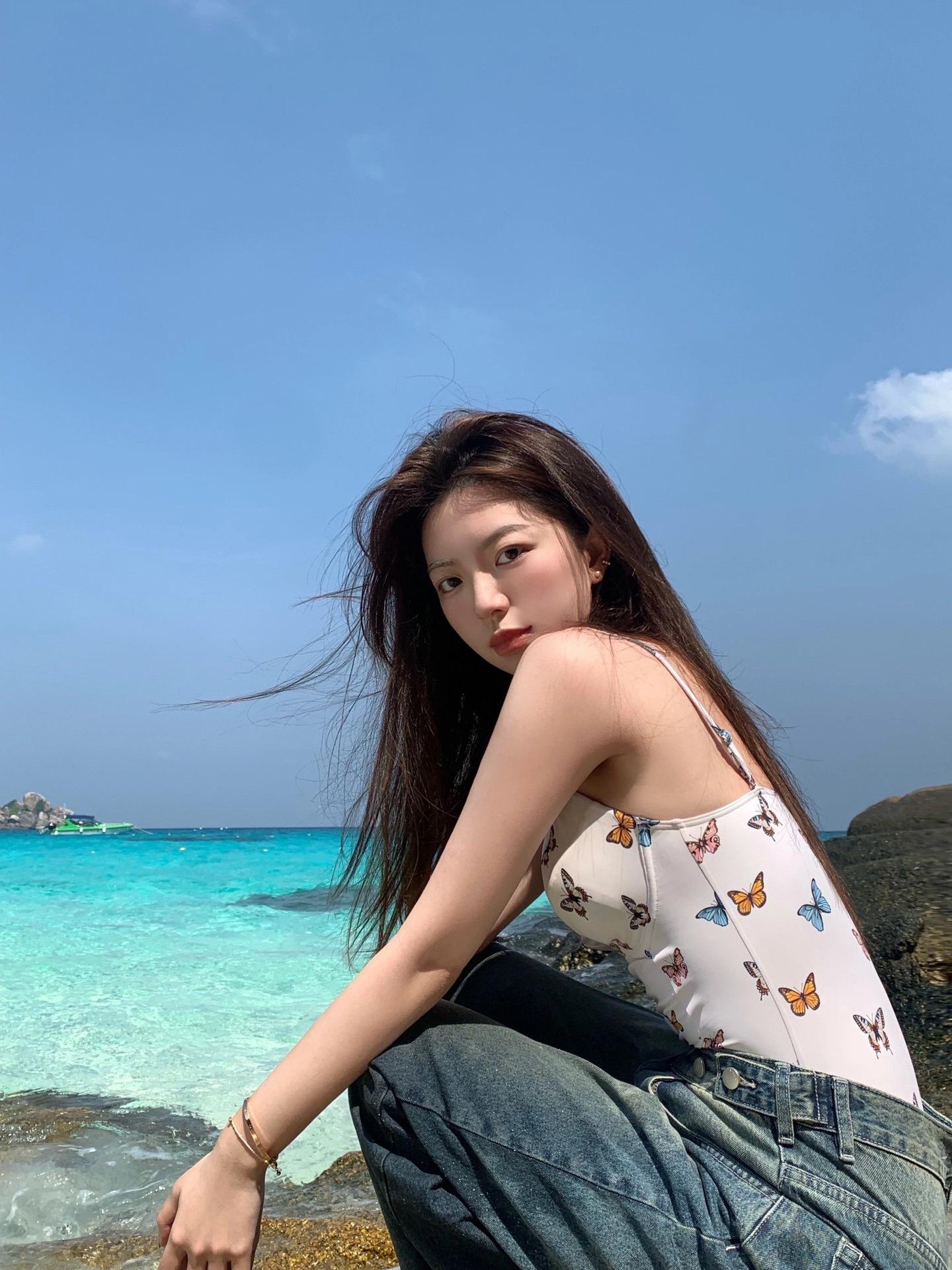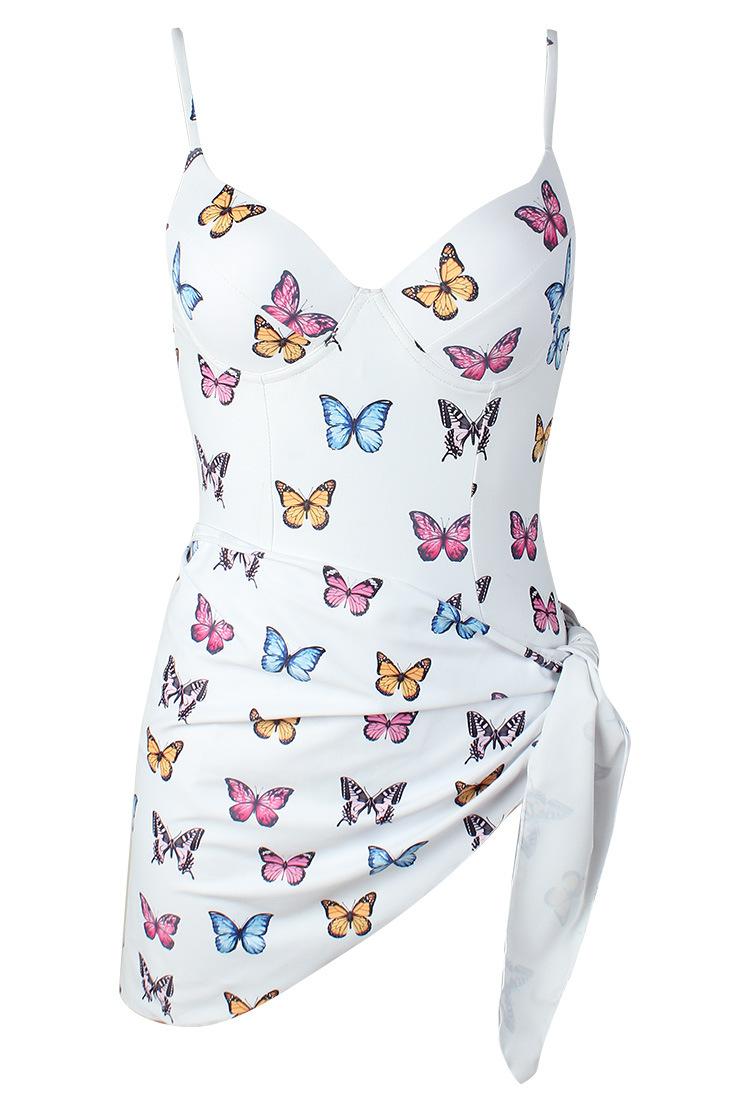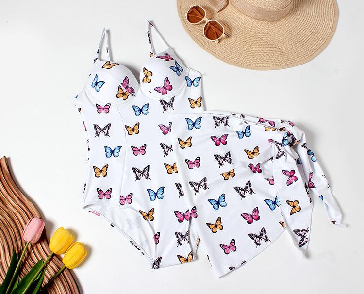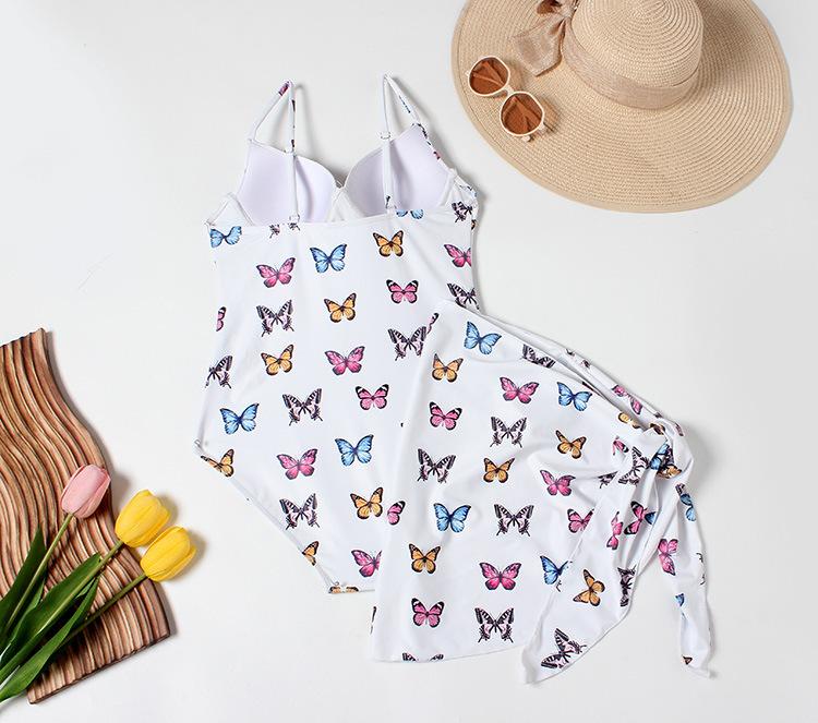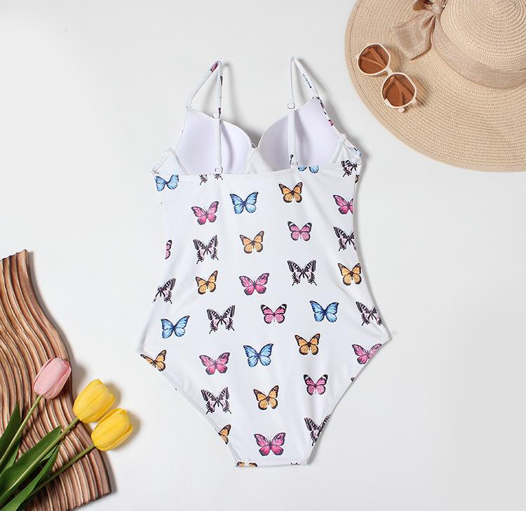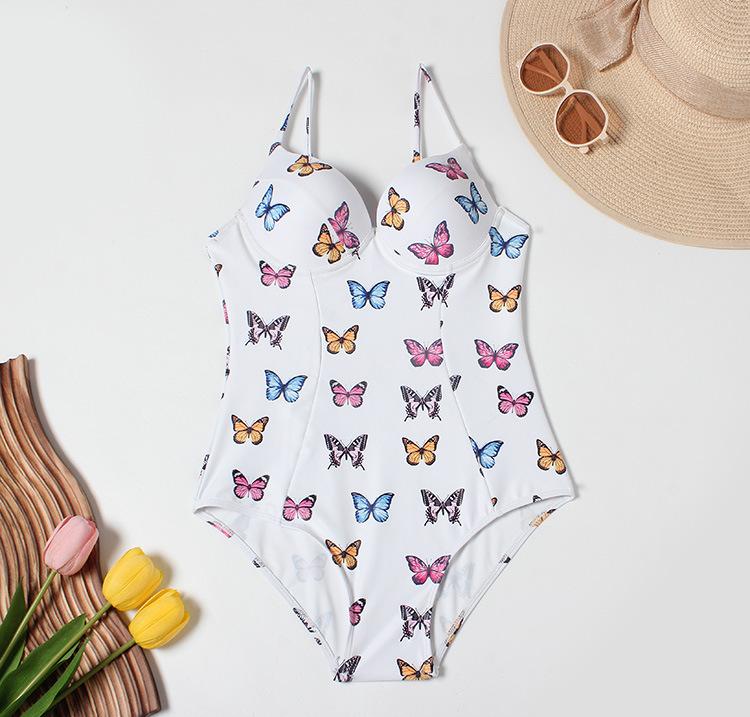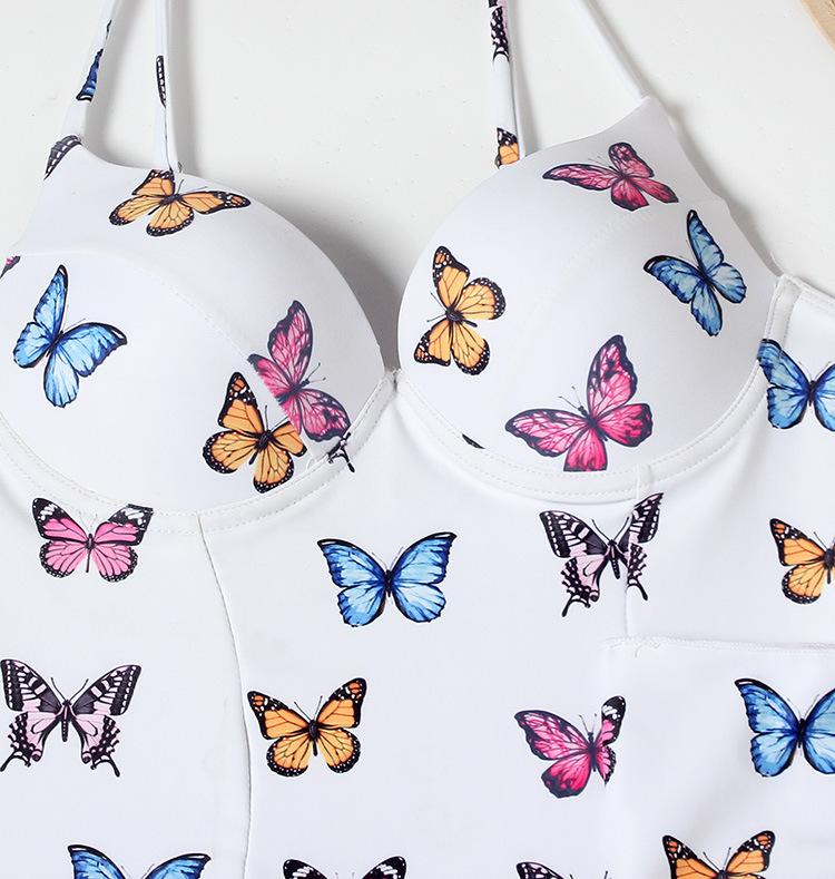 Una generación de moda para el cabello simple nuevo traje de baño de dos piezas con estampado de mariposas para mujer pecho pequeño recogido vacaciones en la playa