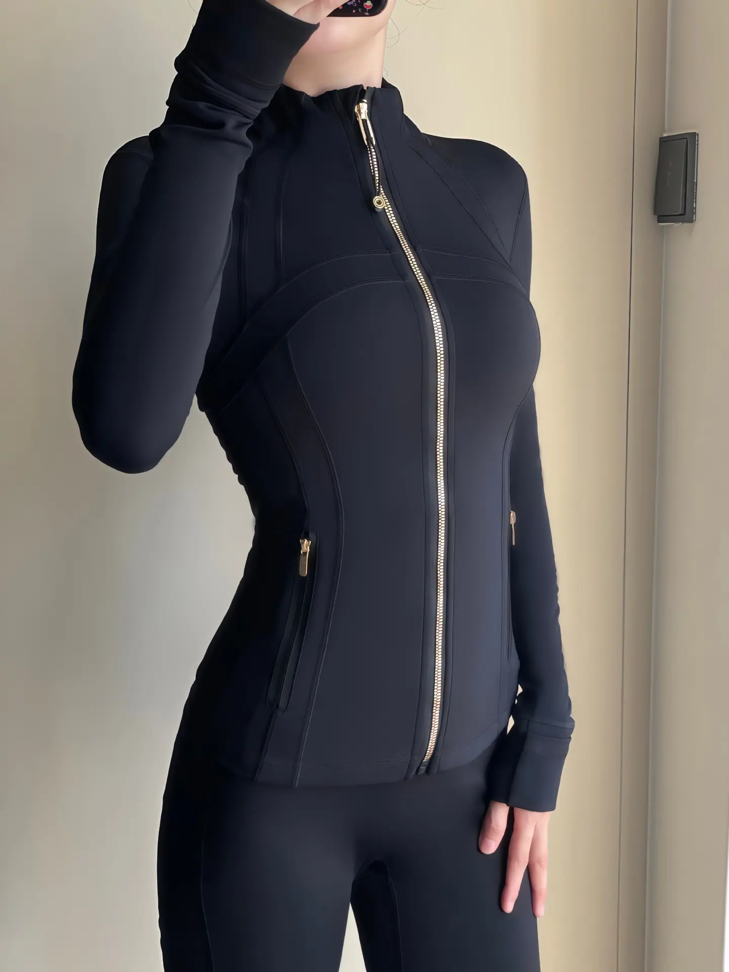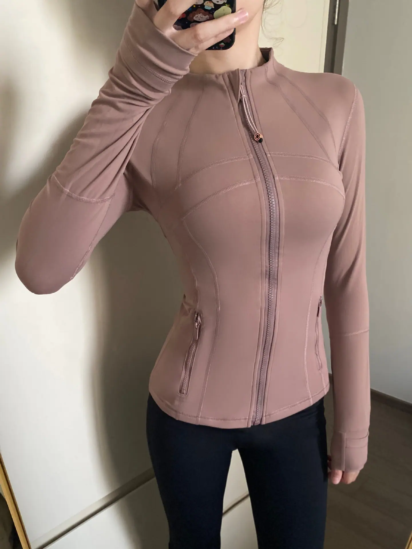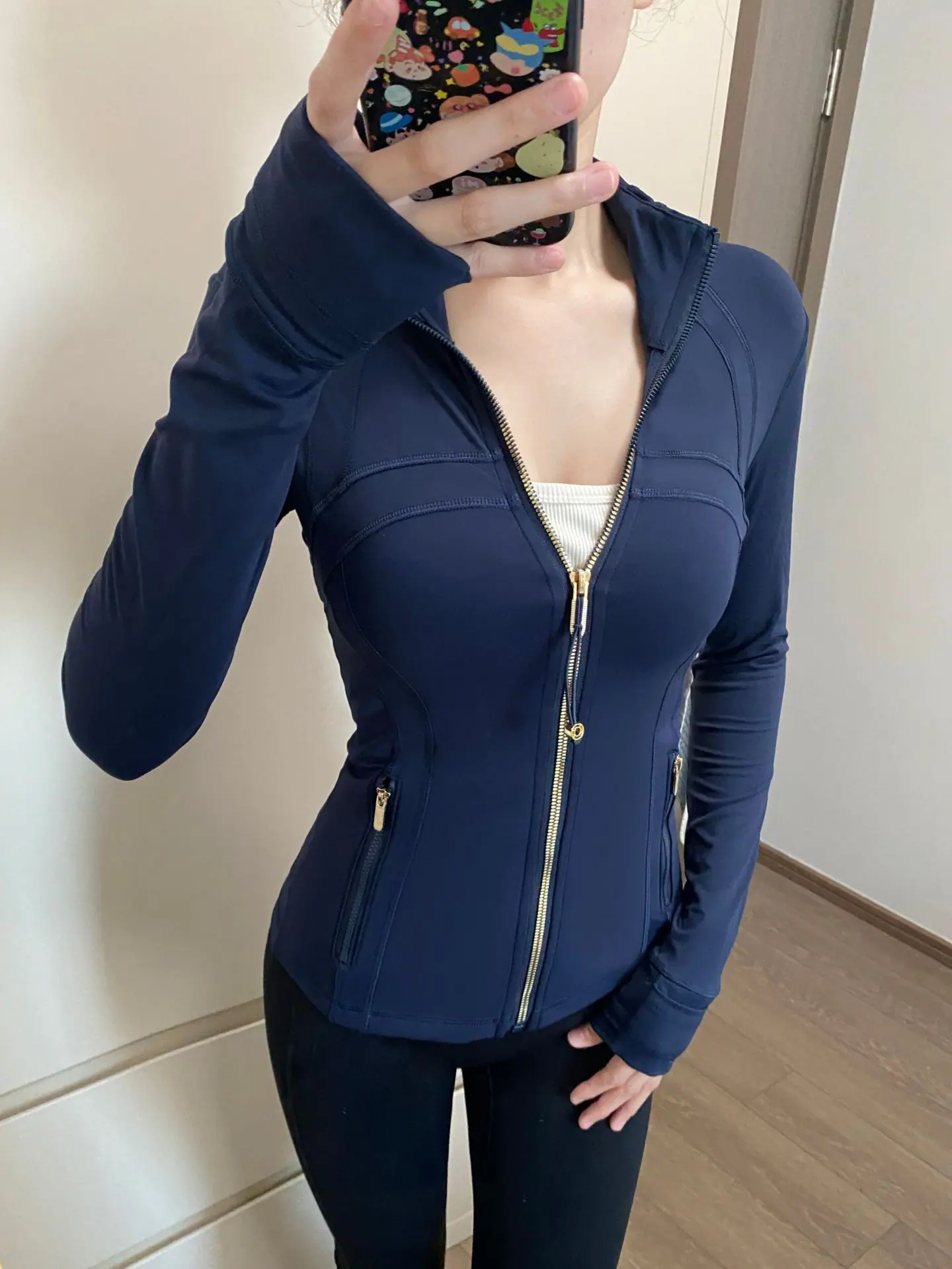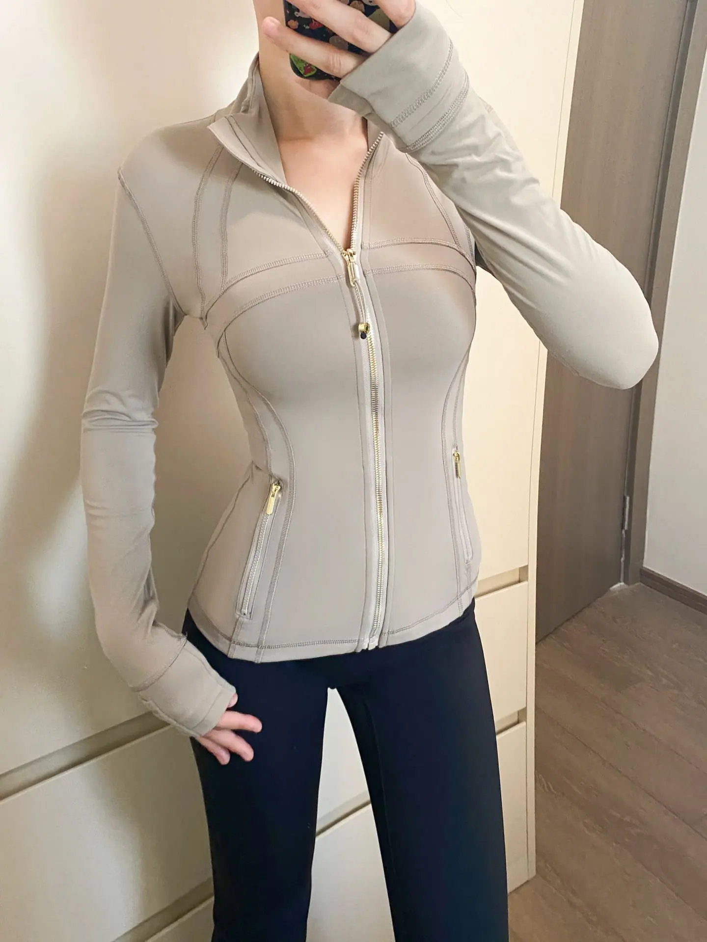 Primavera y Verano Nuevo Top Ropa de Yoga Cremallera Dorada Chaqueta Slim Manga Larga Deportes Ocio Fitness Chaqueta de Mujer