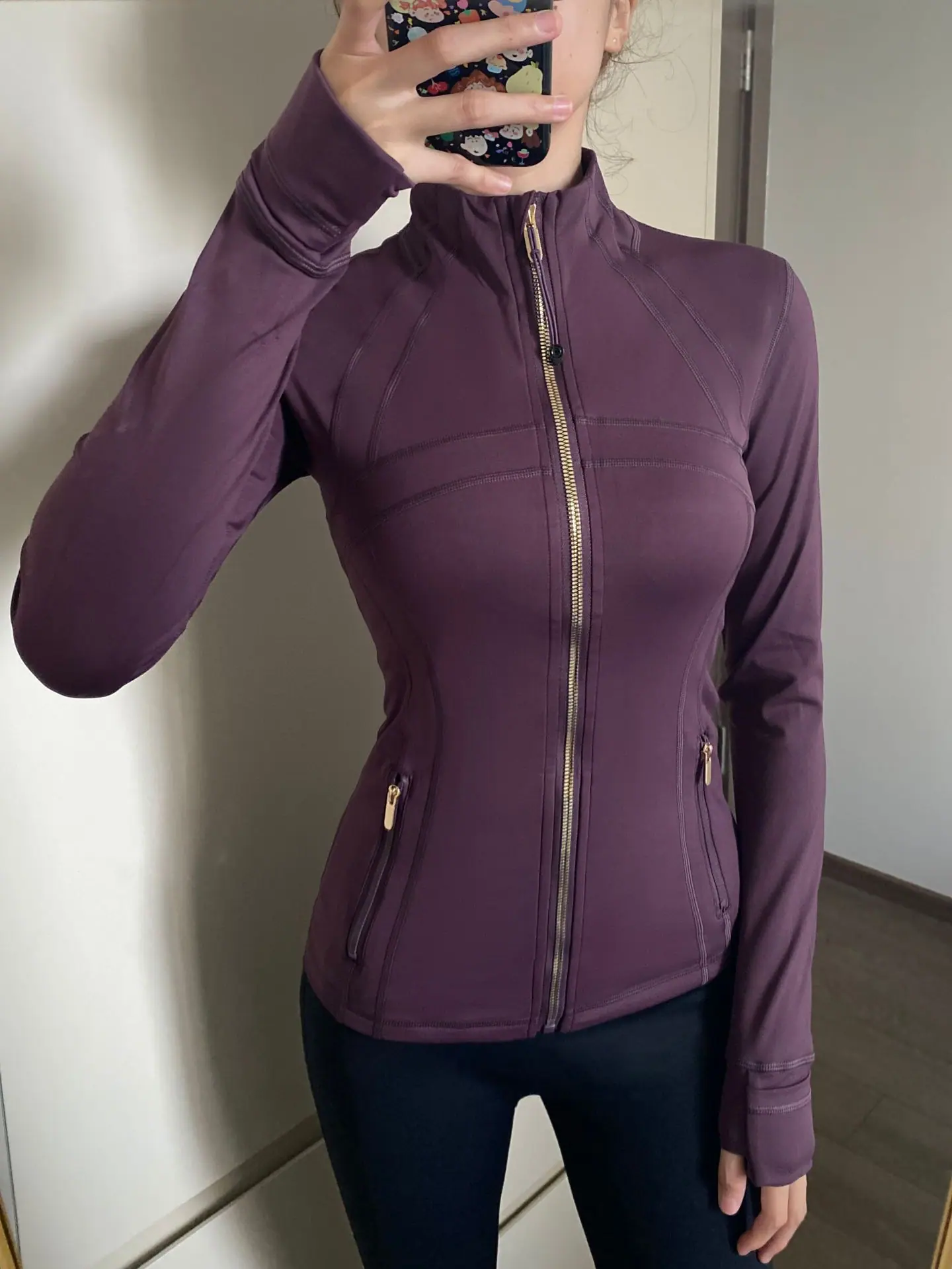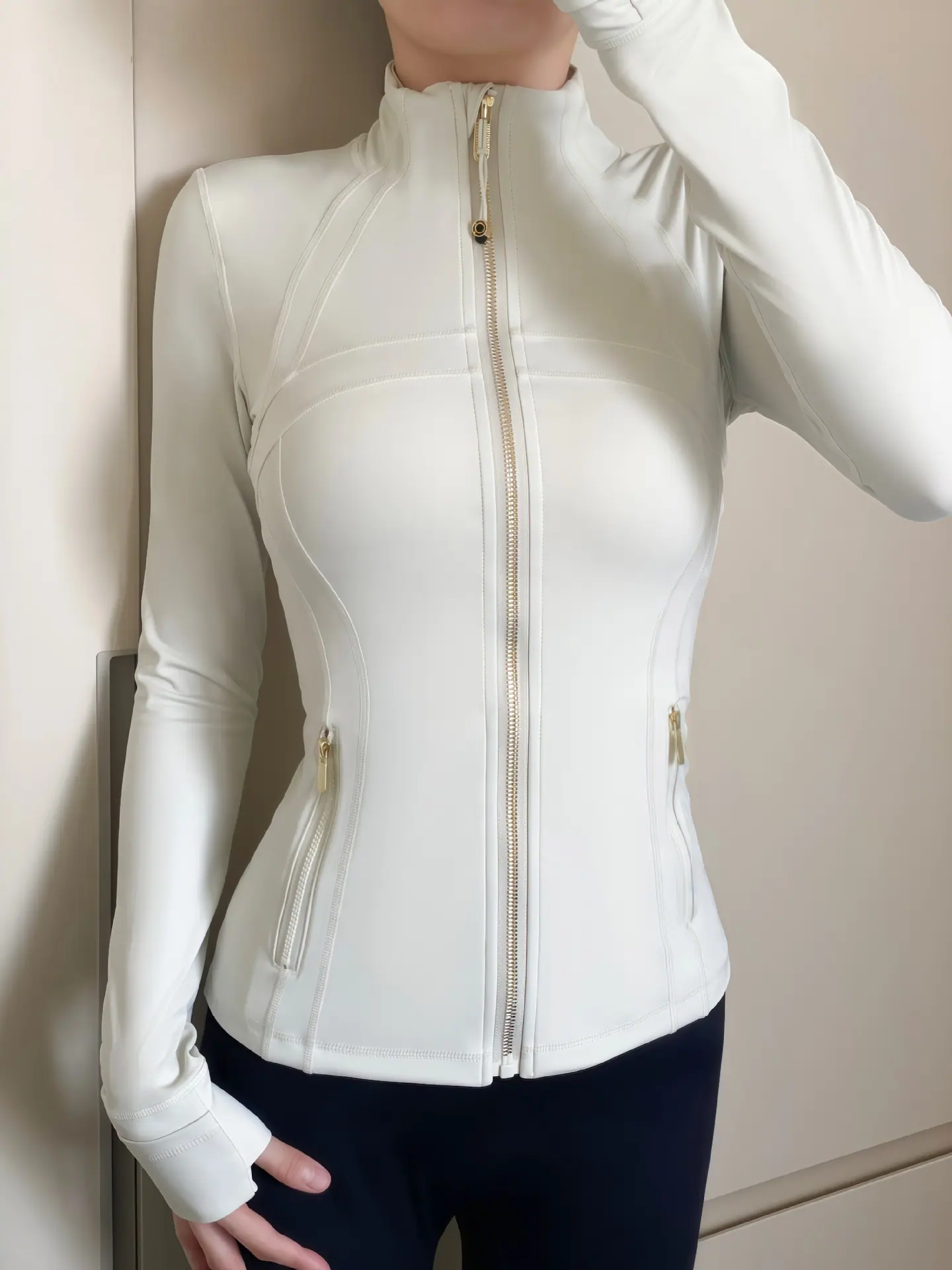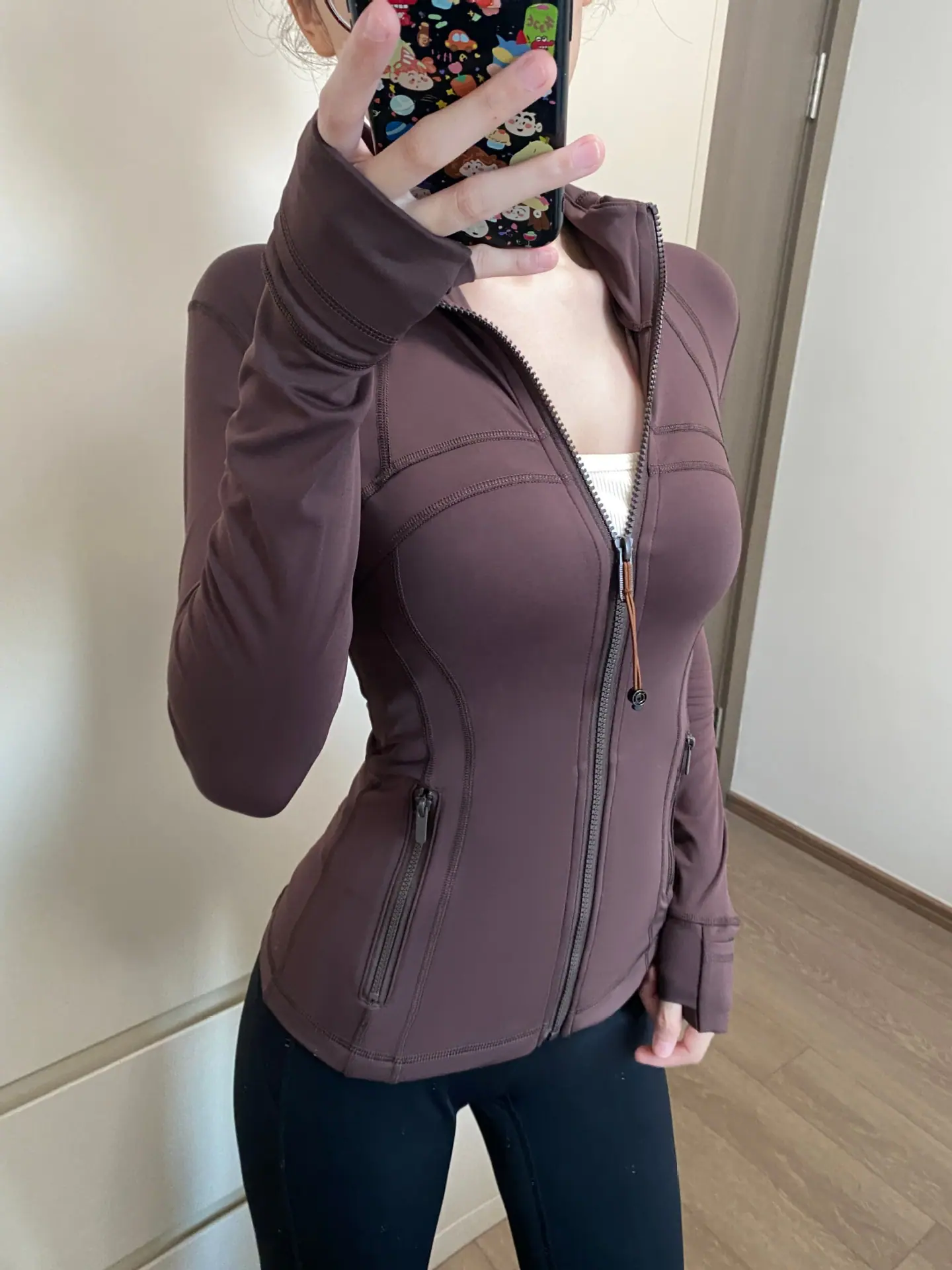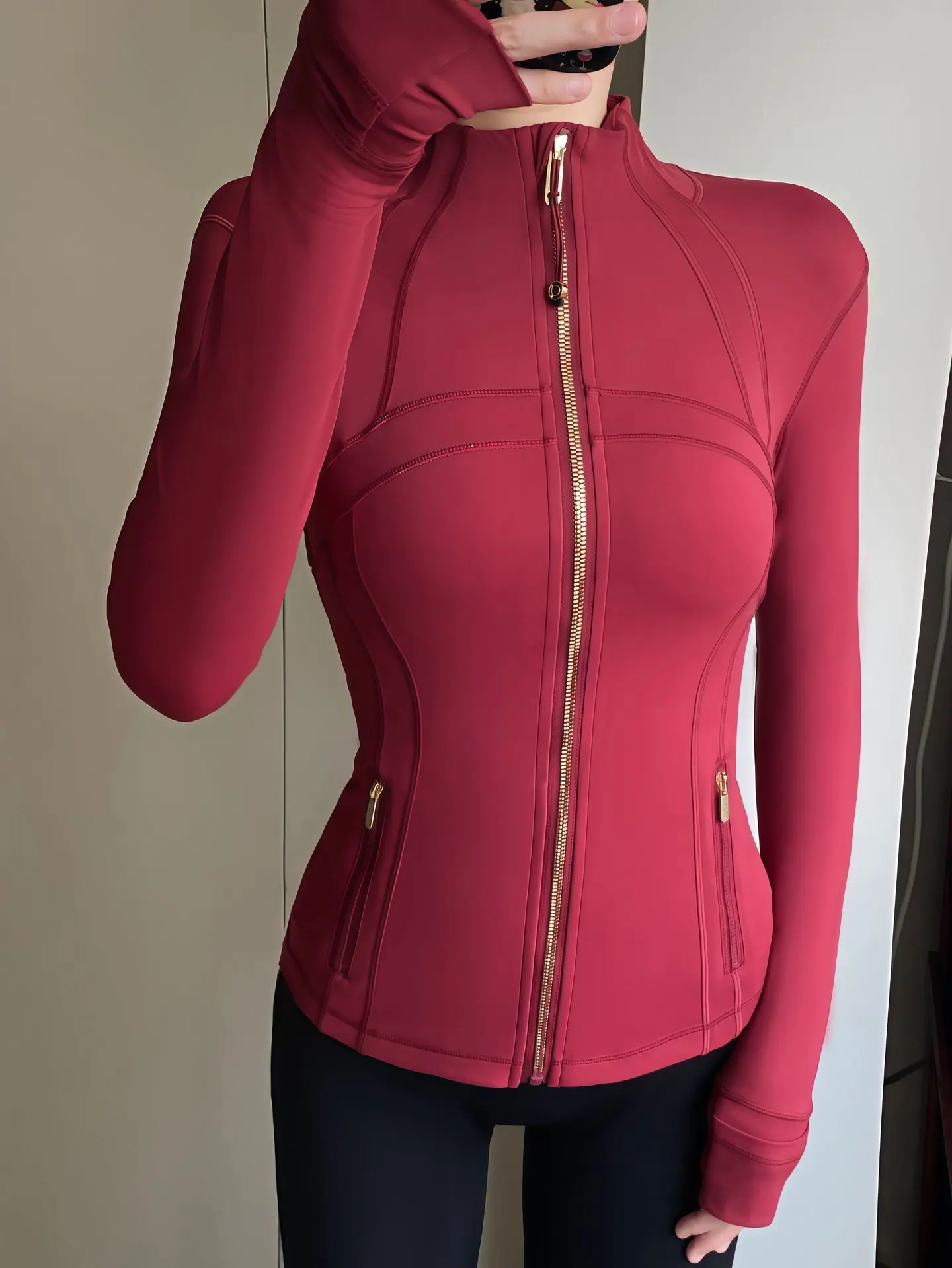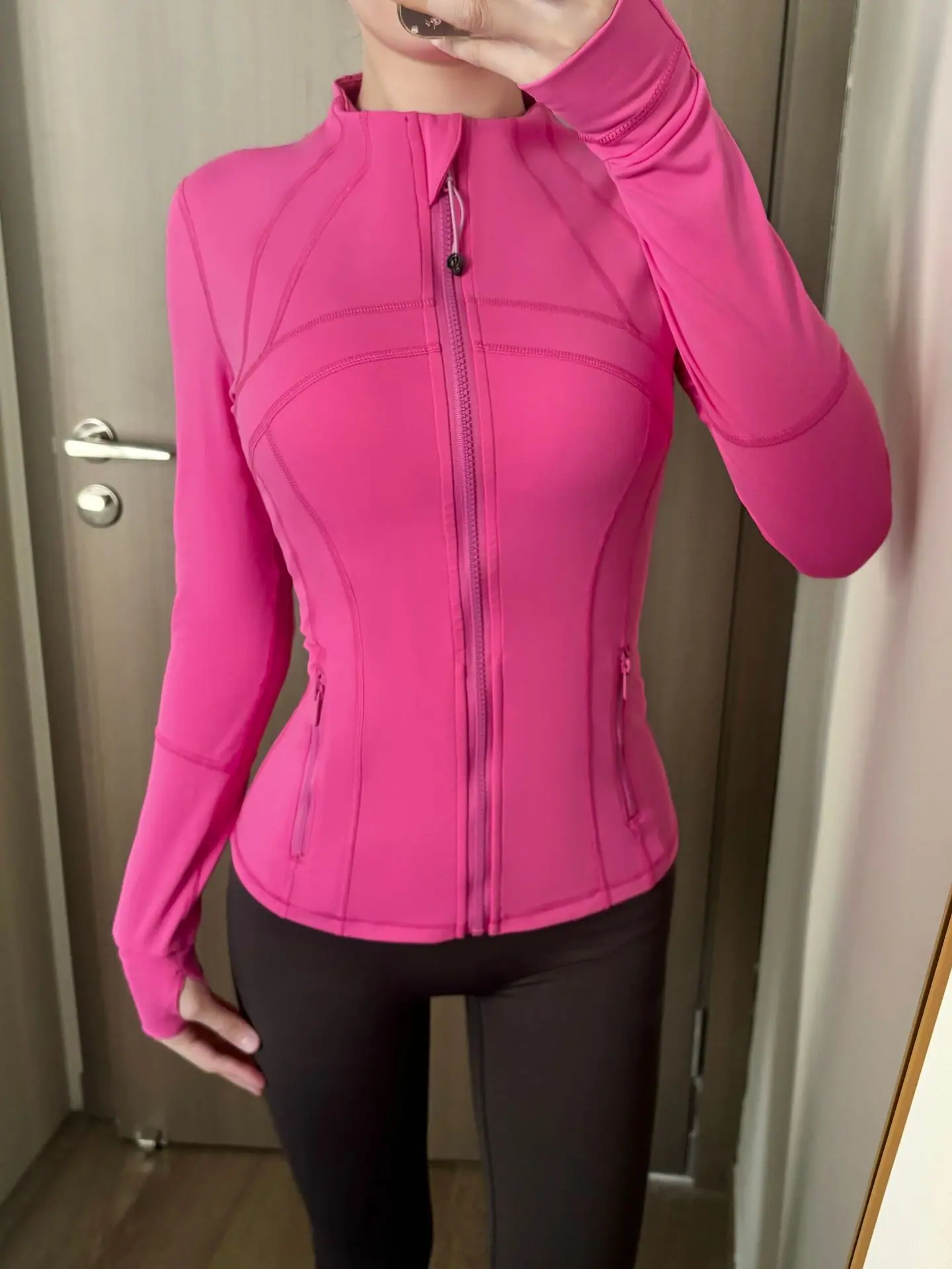 Primavera y Verano Nuevo Top Ropa de Yoga Cremallera Dorada Chaqueta Slim Manga Larga Deportes Ocio Fitness Chaqueta de Mujer