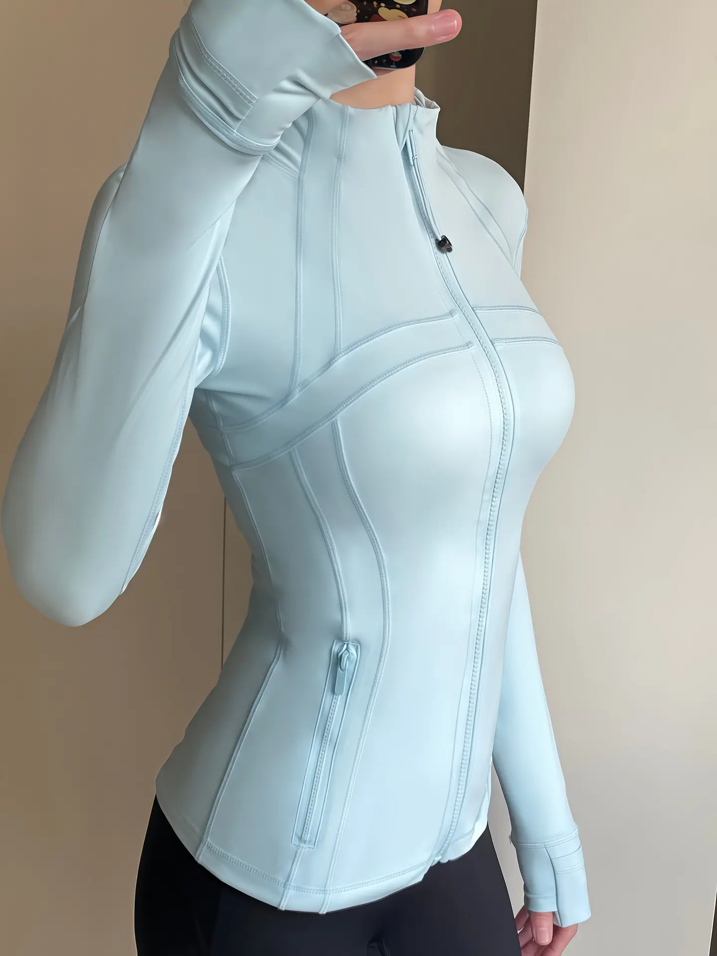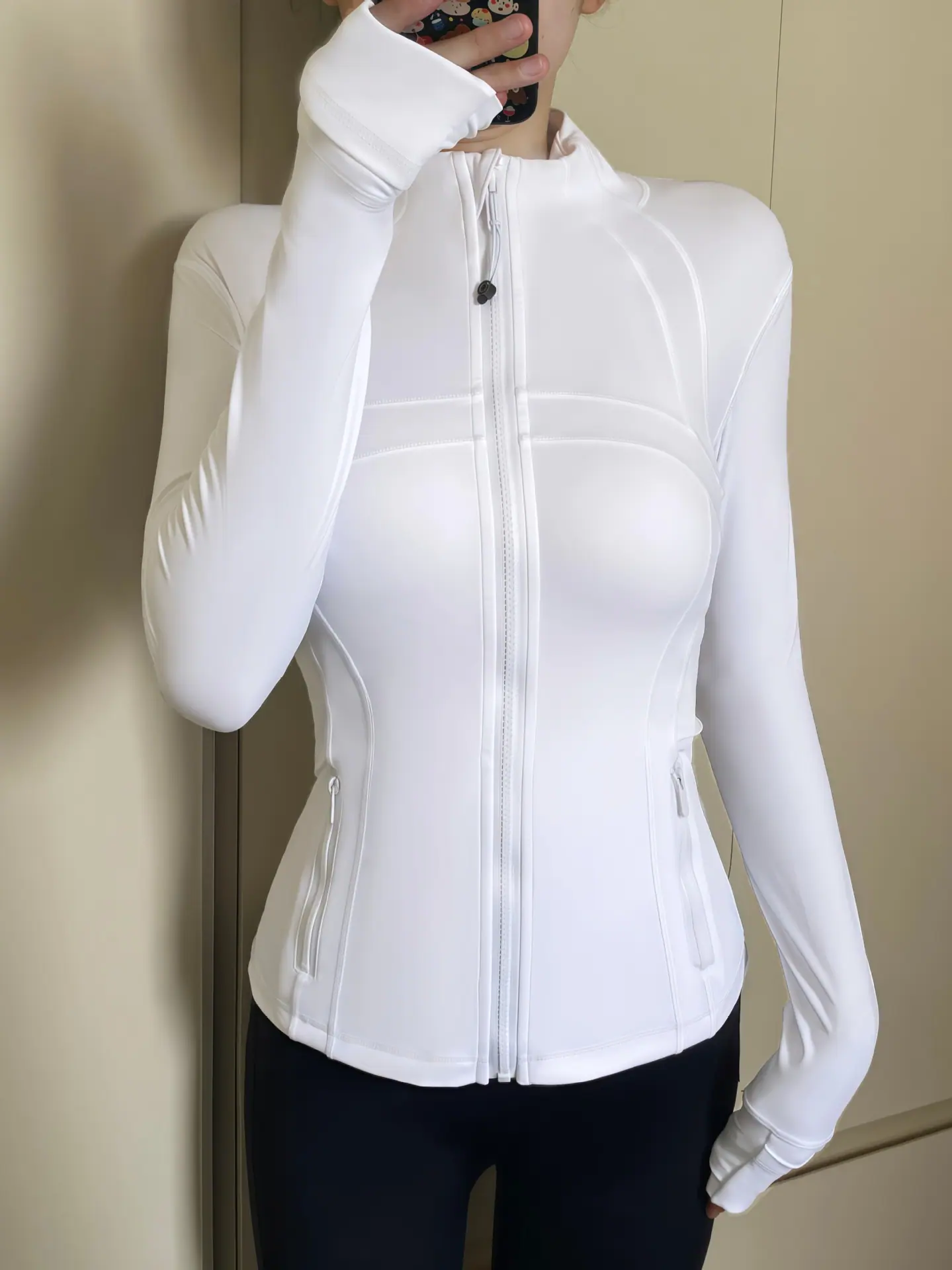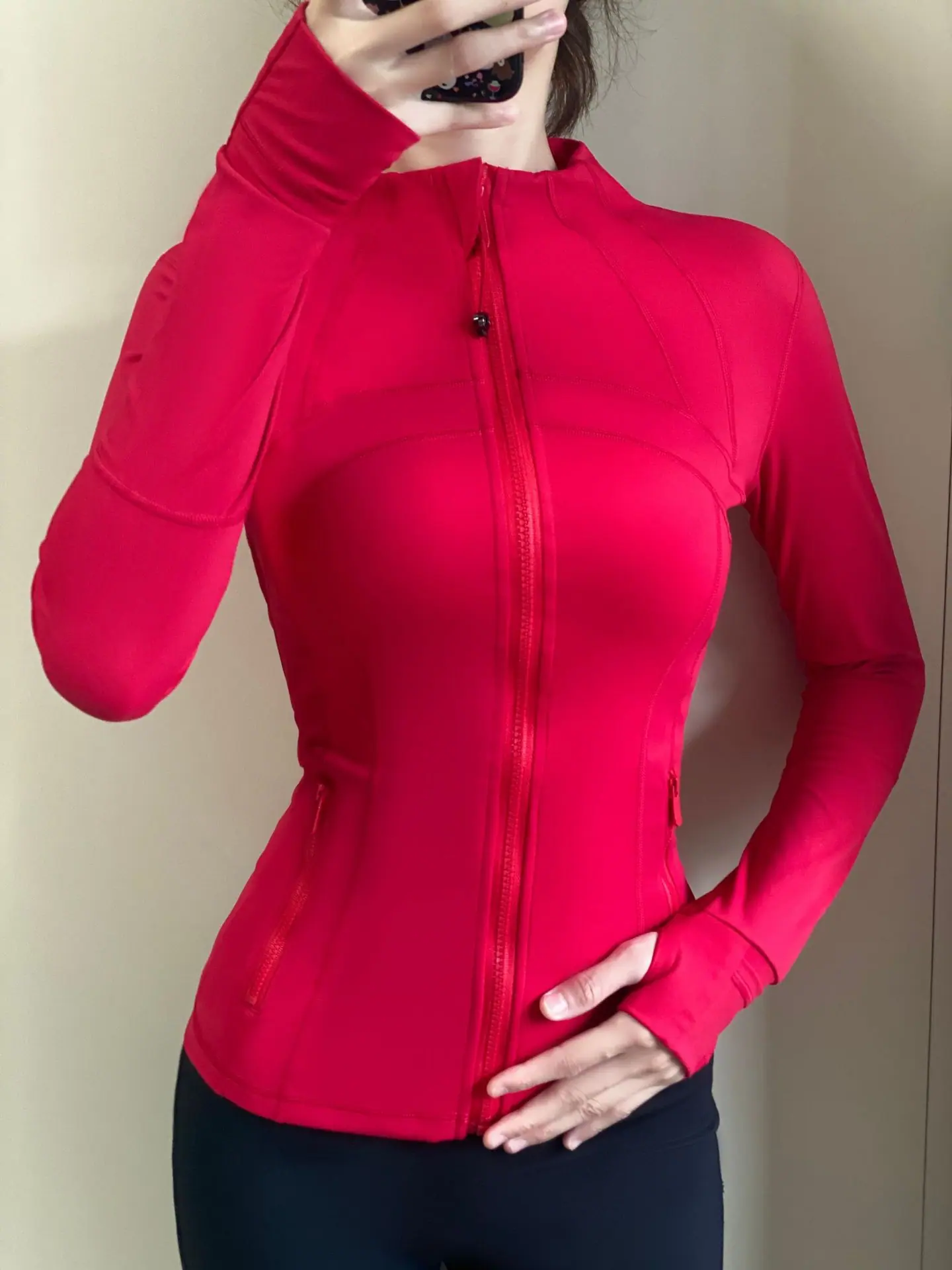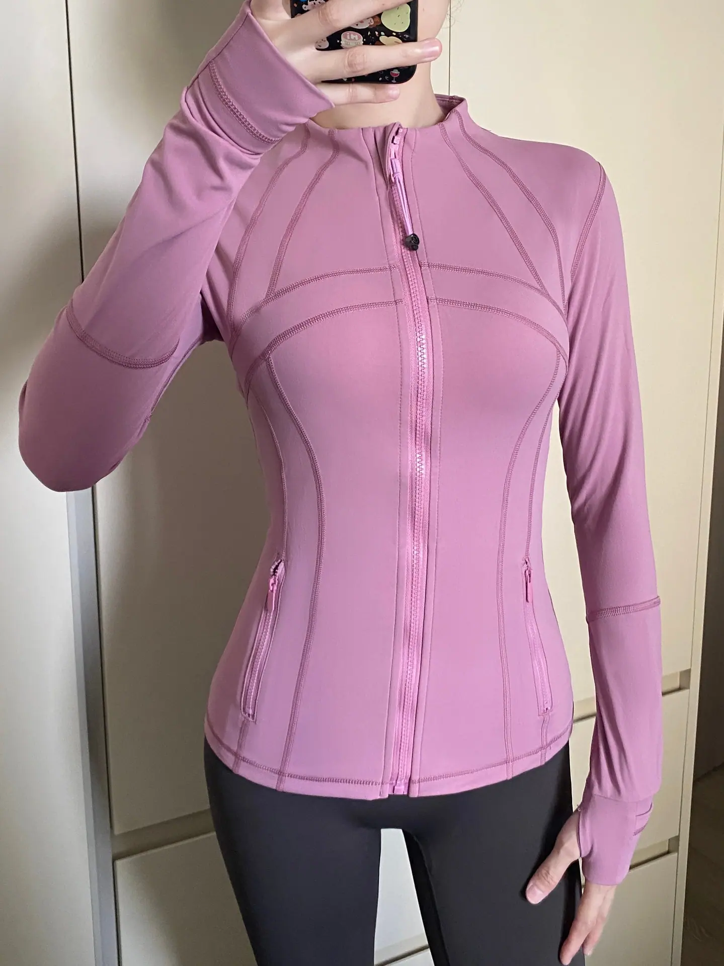 Primavera y Verano Nuevo Top Ropa de Yoga Cremallera Dorada Chaqueta Slim Manga Larga Deportes Ocio Fitness Chaqueta de Mujer