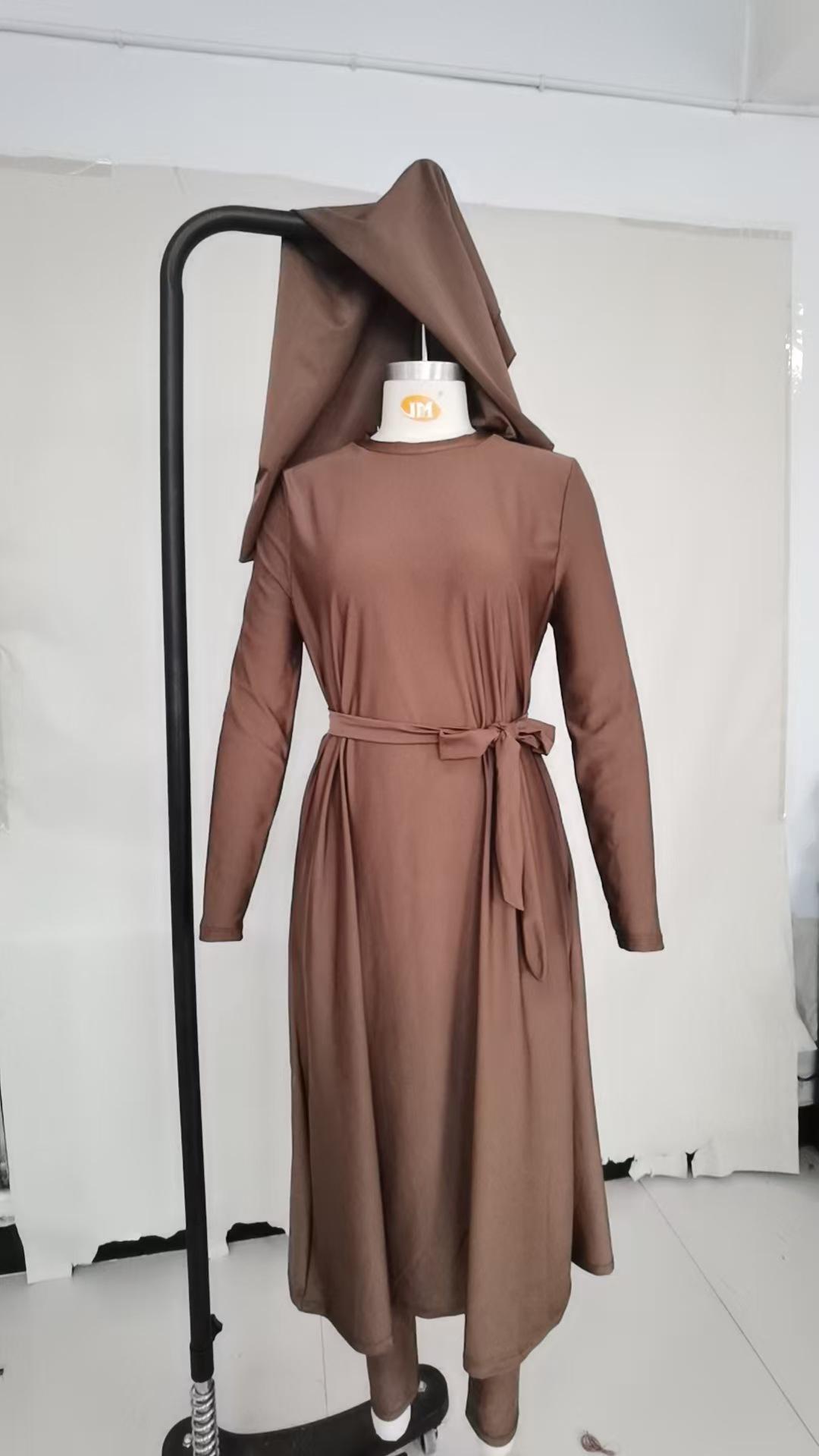 Traje de baño conservador musulmán nuevo 2025 Oriente Medio color sólido manga larga pantalones bloqueador solar ropa de playa traje de baño de tres piezas