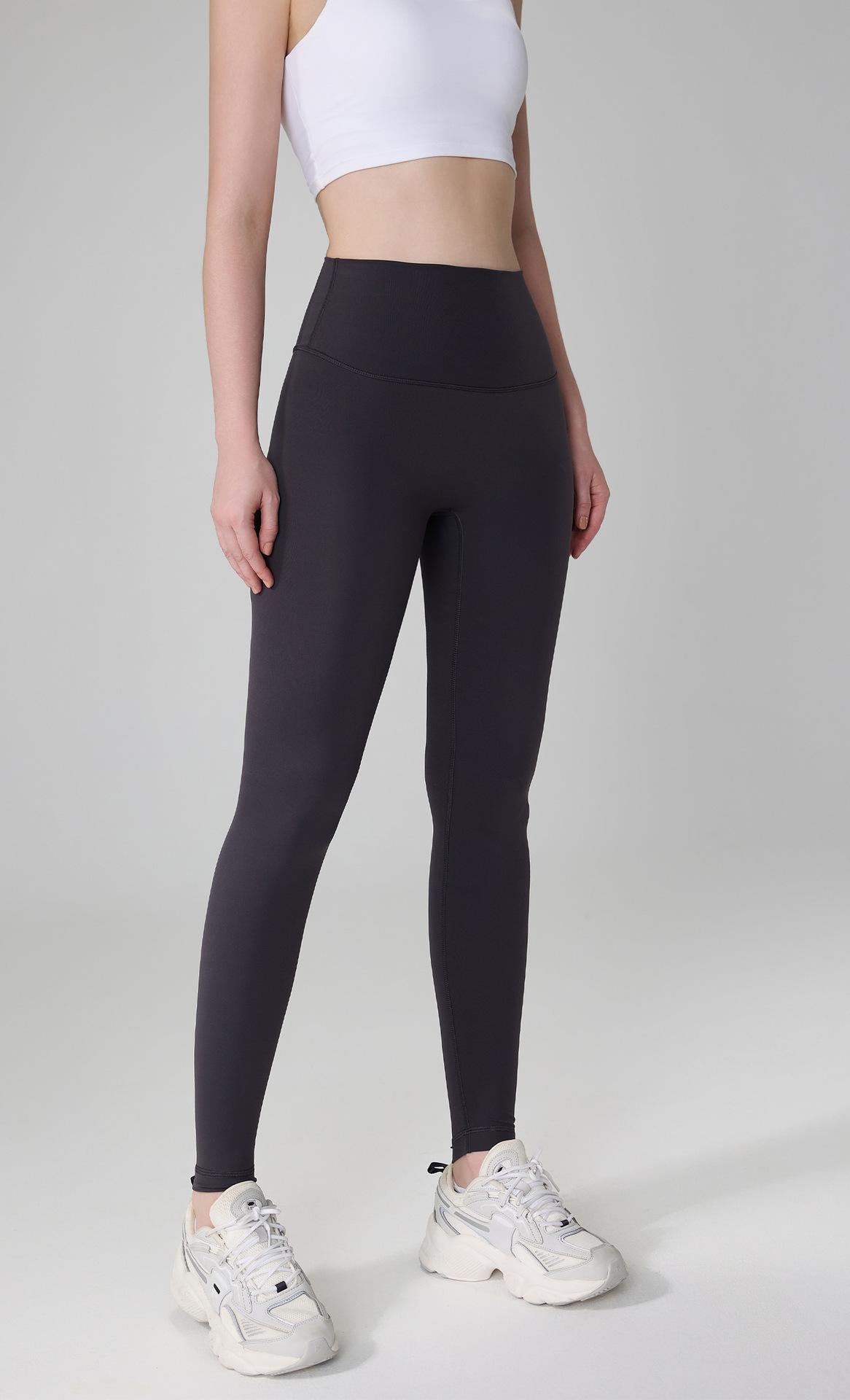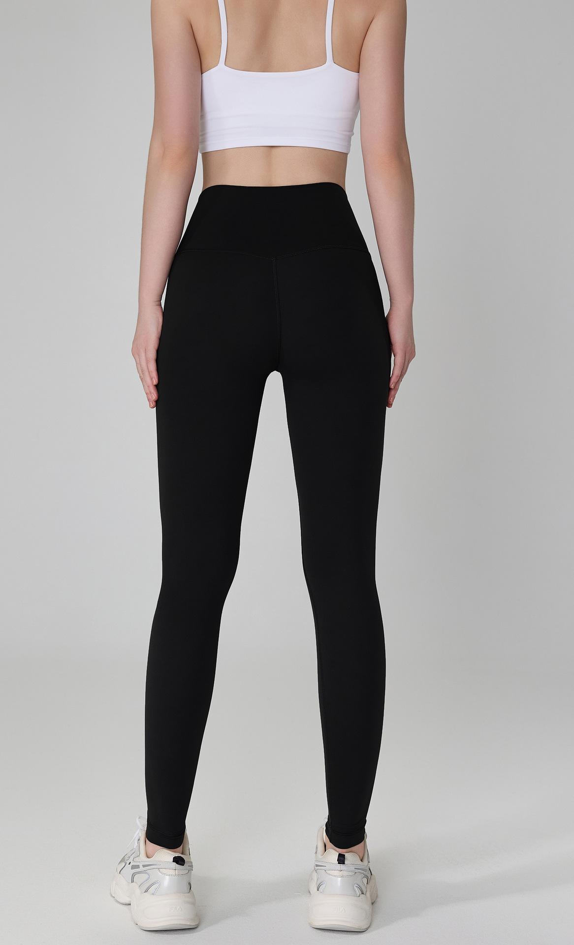 Ropa Huanpan Mallas Deportivas Nude de Cintura Alta Levanta Caderas para Mujer Pantalones de Yoga Trasero Durazno Sin Línea Embarazosa Pantalones de Fitness