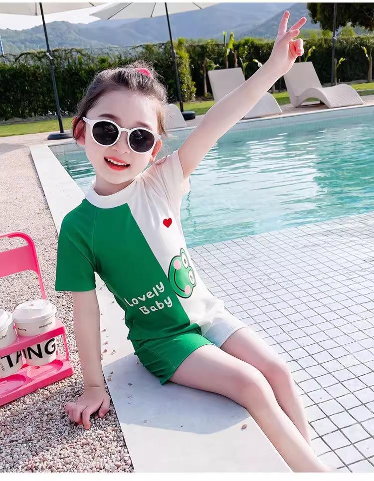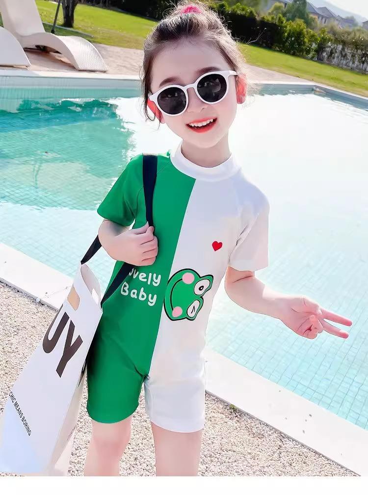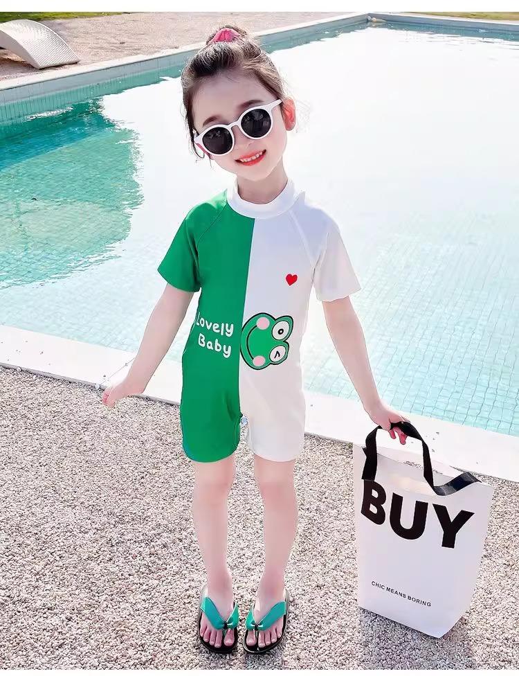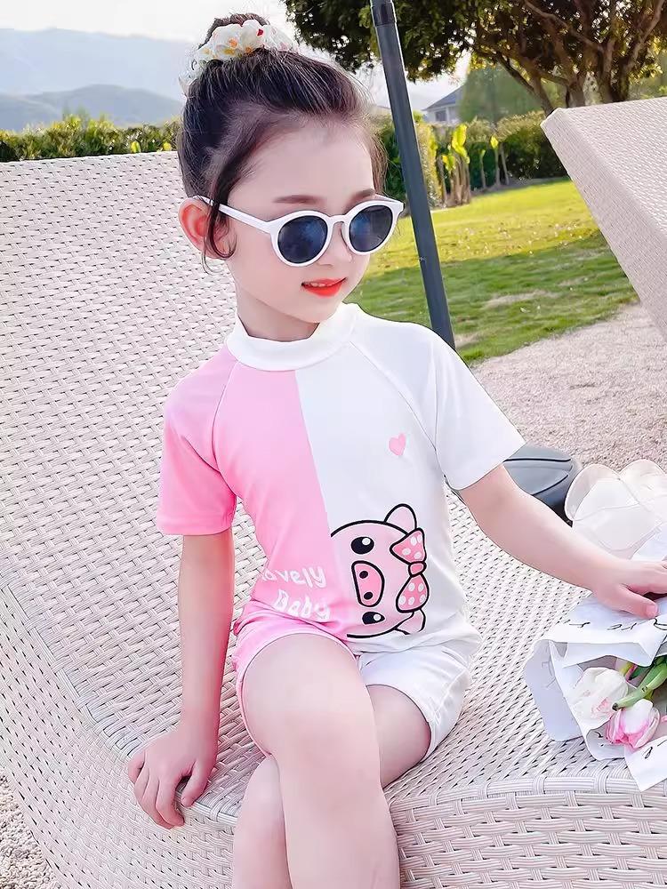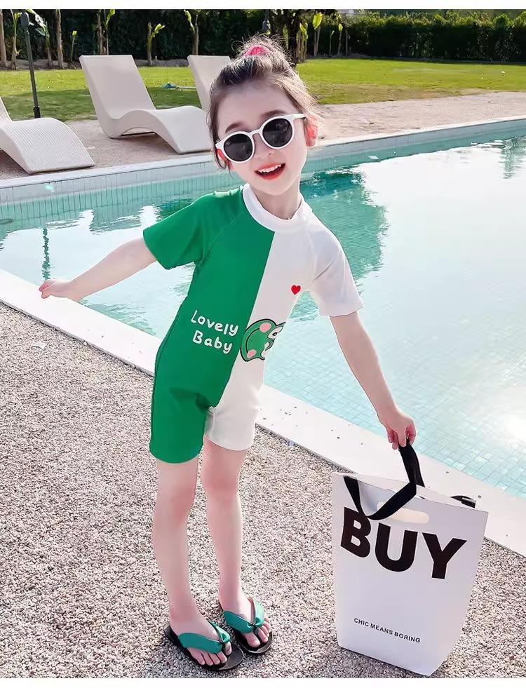 2025 Nuevo Traje de Baño de Una Pieza con Protección Solar de Manga Corta para Niñas Princesa Lindas Traje de Baño para Niños Traje de Baño de Secado Rápido