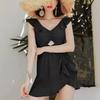 Nuevo Traje de Baño Conservador Deportivo Adelgazante Cubre-Busto de Una Pieza para Mujer con Bloques de Color Retro, Vacaciones, Aguas Termales, Busto Pequeño