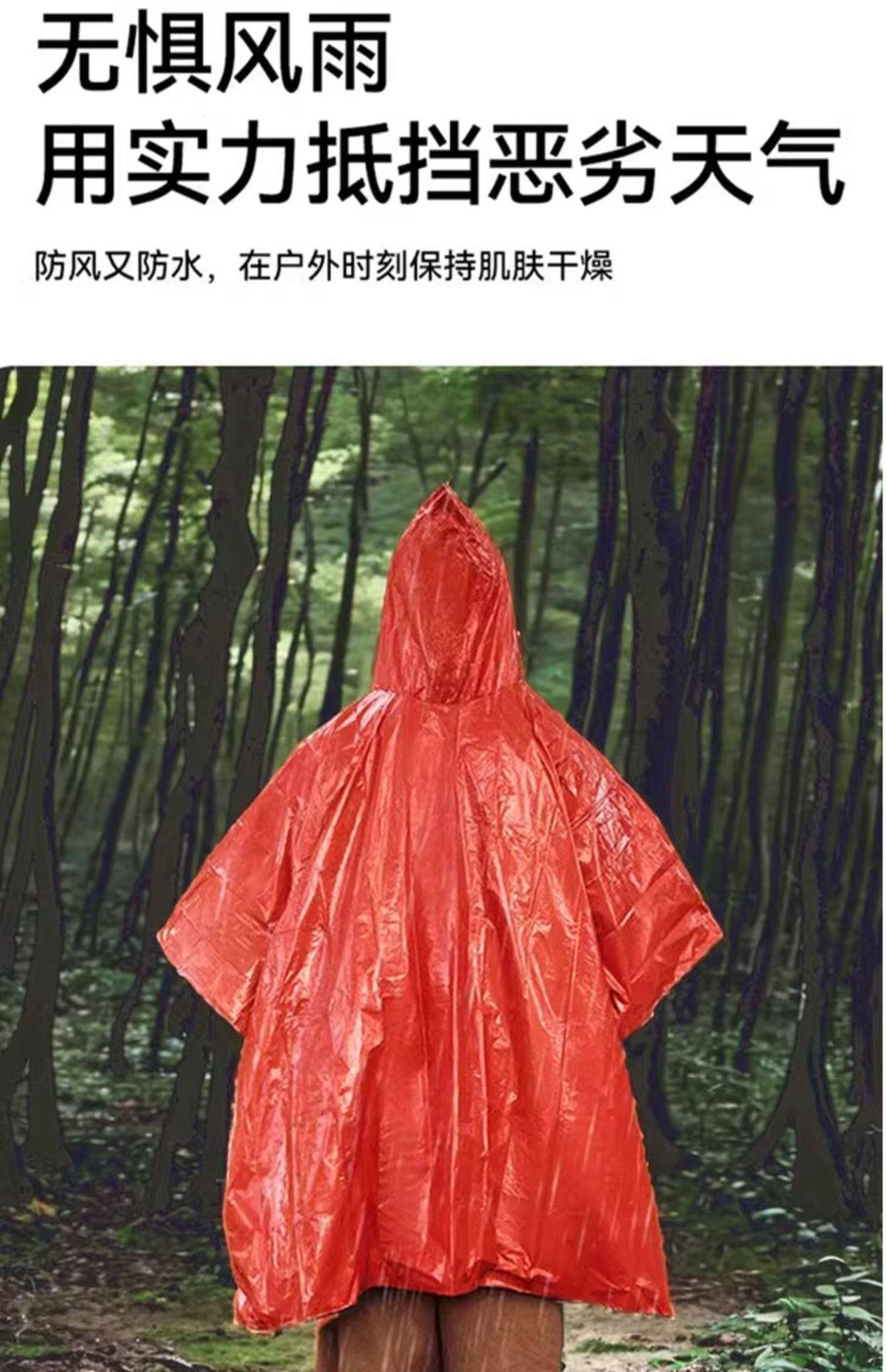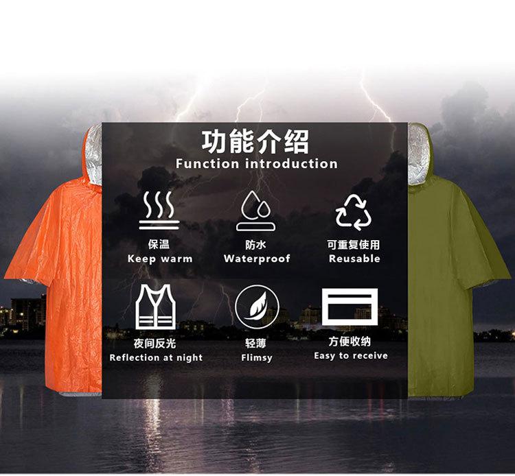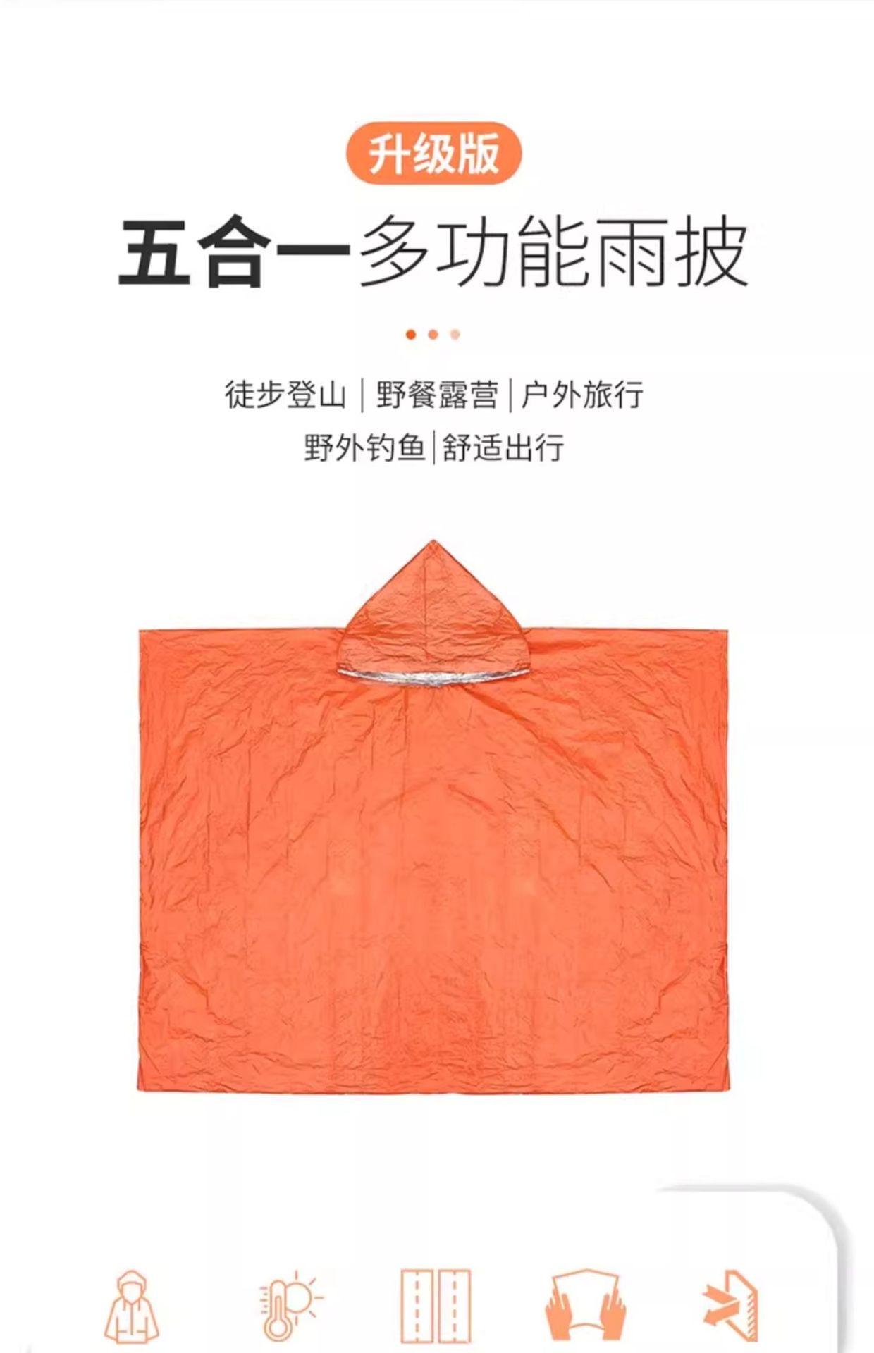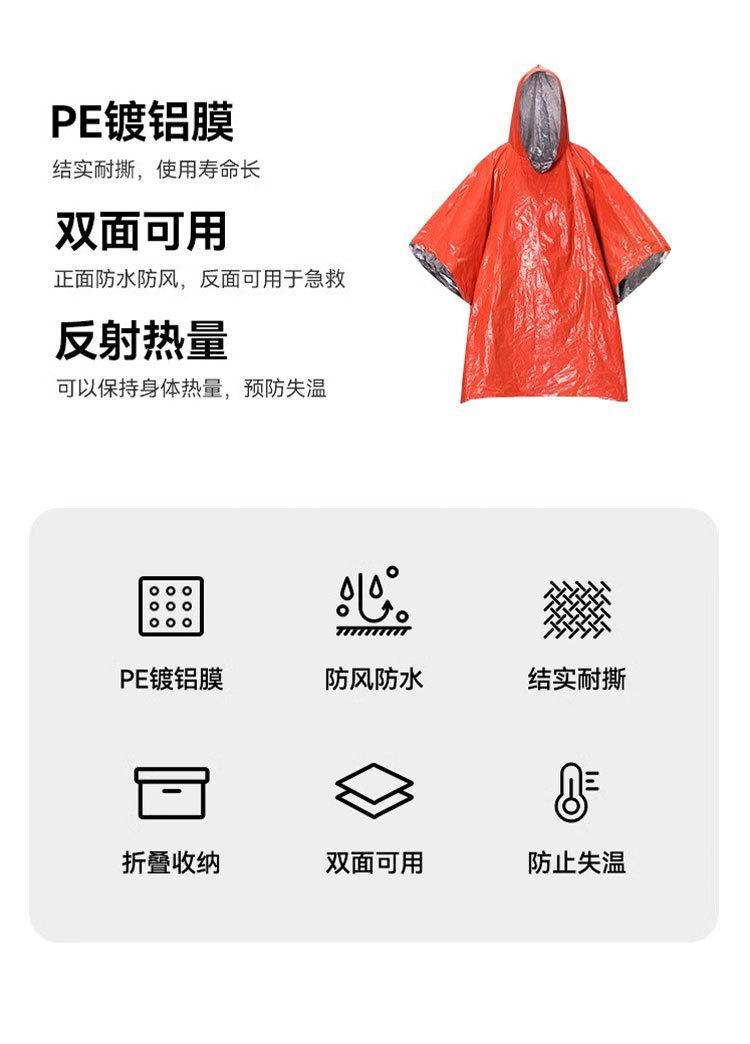 Emergency thermal raincoat [1 piece] orange style, 10 disposable shoe covers [blue long tube]