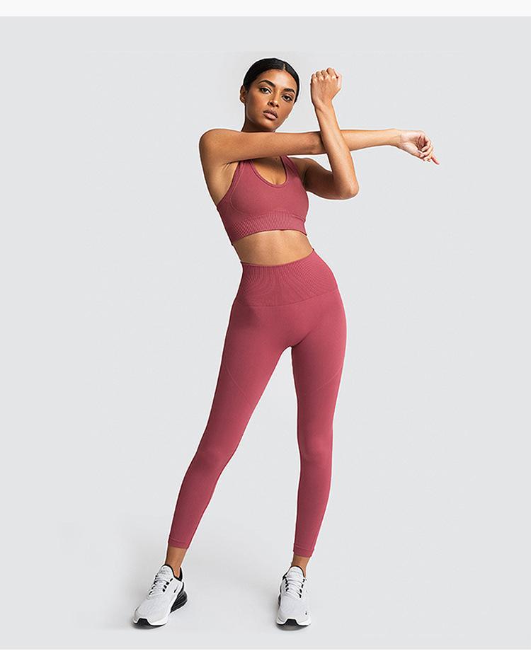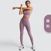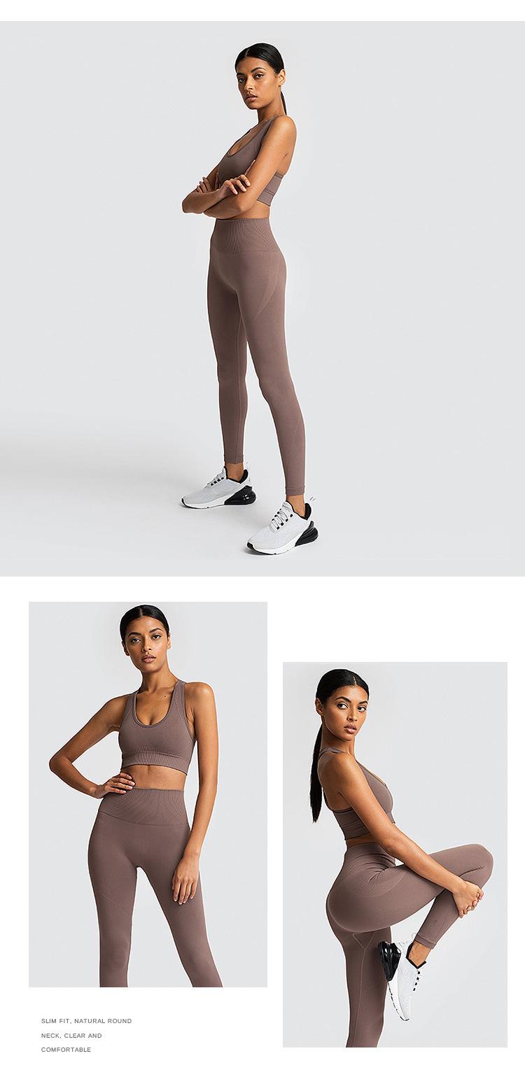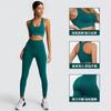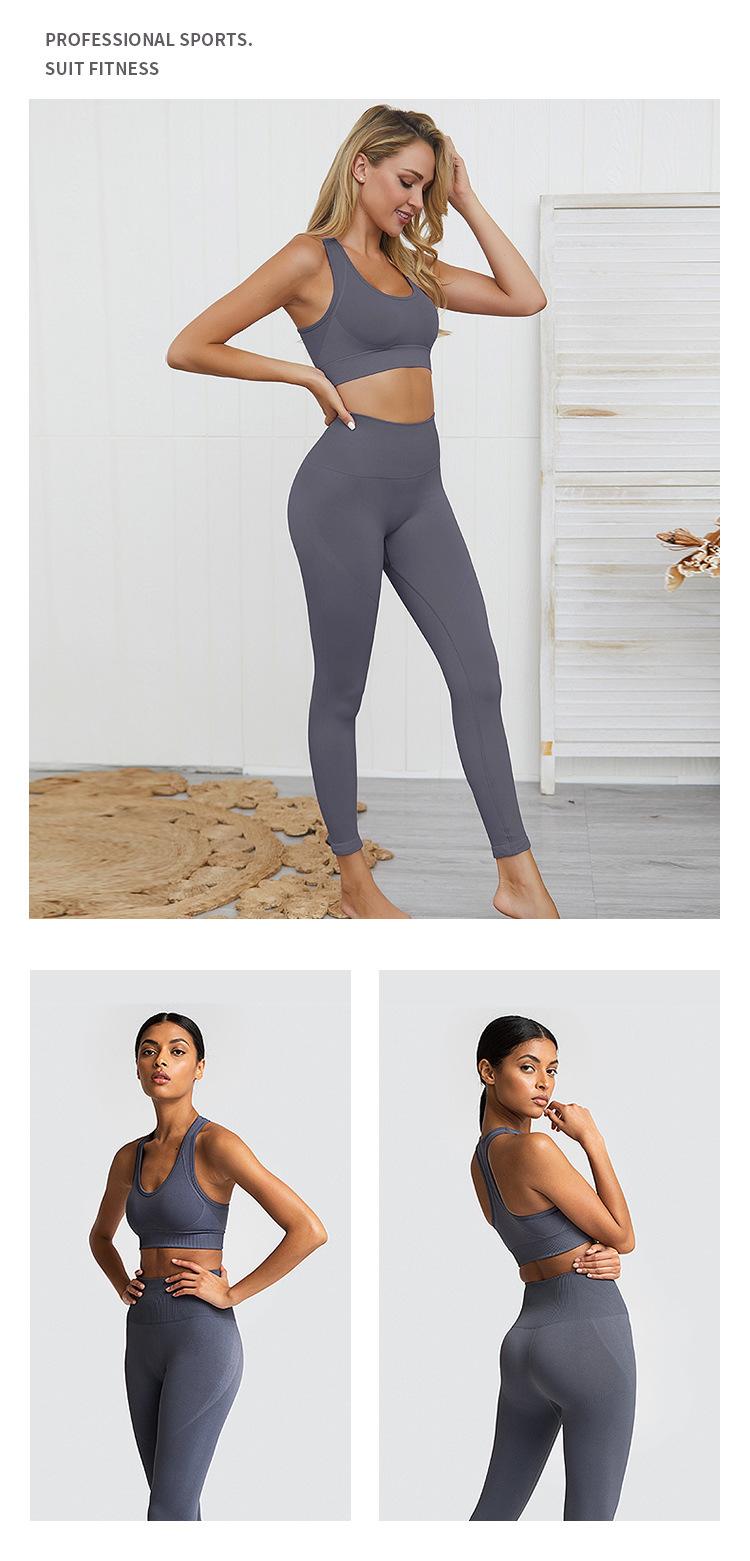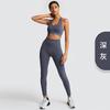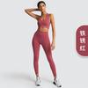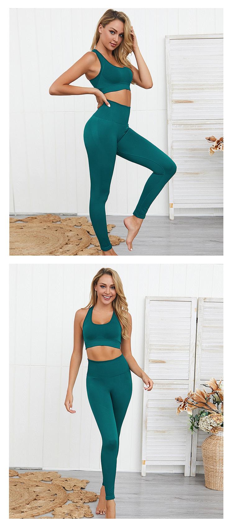 Traje de Yoga de Secado Rápido Europeo y Americano Transfronterizo para Mujer, Color Sólido, Tejido de Punto Sin Costuras, Alta Elasticidad, Levanta Glúteos, Pantalones para Correr, Set de Chaleco Deportivo