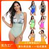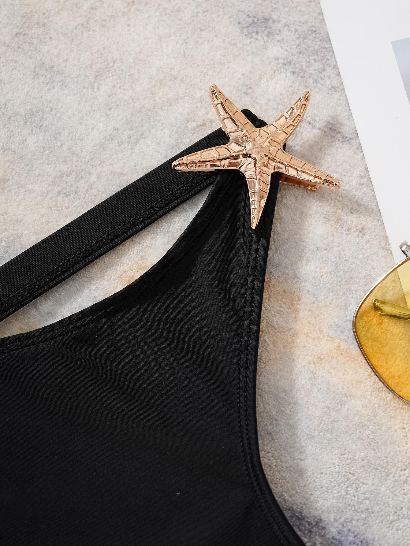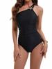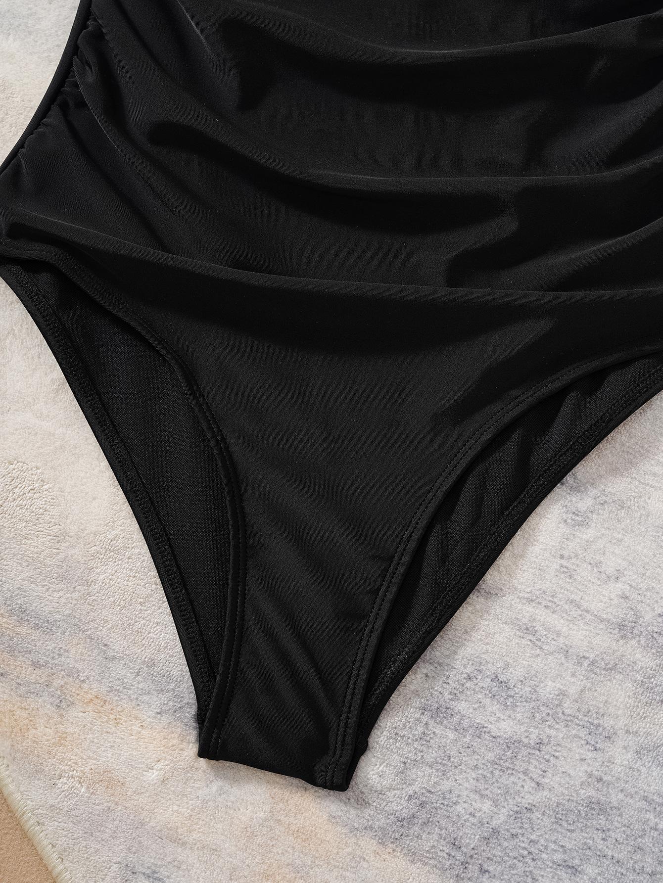 2025 Amazon Nuevo Europeo y Americano Exportación Color Puro Un Hombro Sexy Adelgazante Look Traje de Baño Bikini Entero Traje de Baño para Mujer