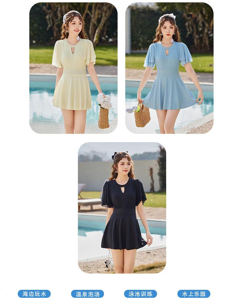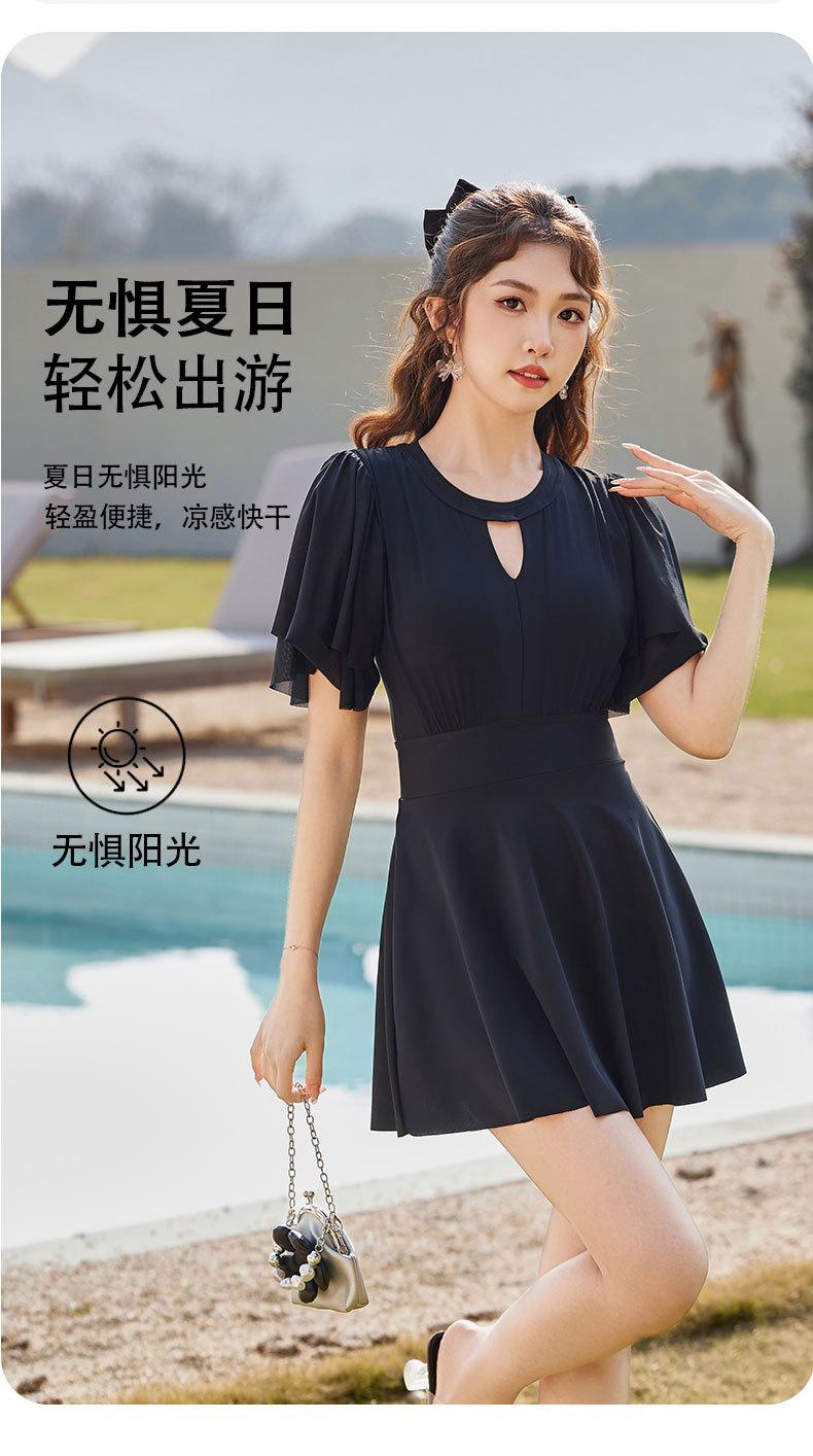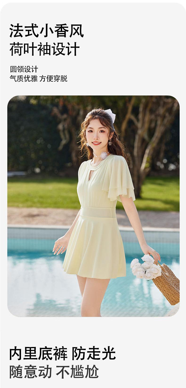 Traje de Baño Nuevo para Mujer, Estilo Falda de Alta Gama, Cubre Vientre, Adelgazante, Conservador, Piscina, Aguas Termales, Vacaciones en la Isla, Traje de Baño de Una Pieza al Por Mayor