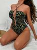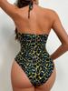 Traje de Baño Entero Estilo Europeo 2025 para Mujer, Traje de Baño Europeo y Americano de Talla Grande con Estampado de Leopardo y Cuello Halter, Femenino Ajustado sin Espalda