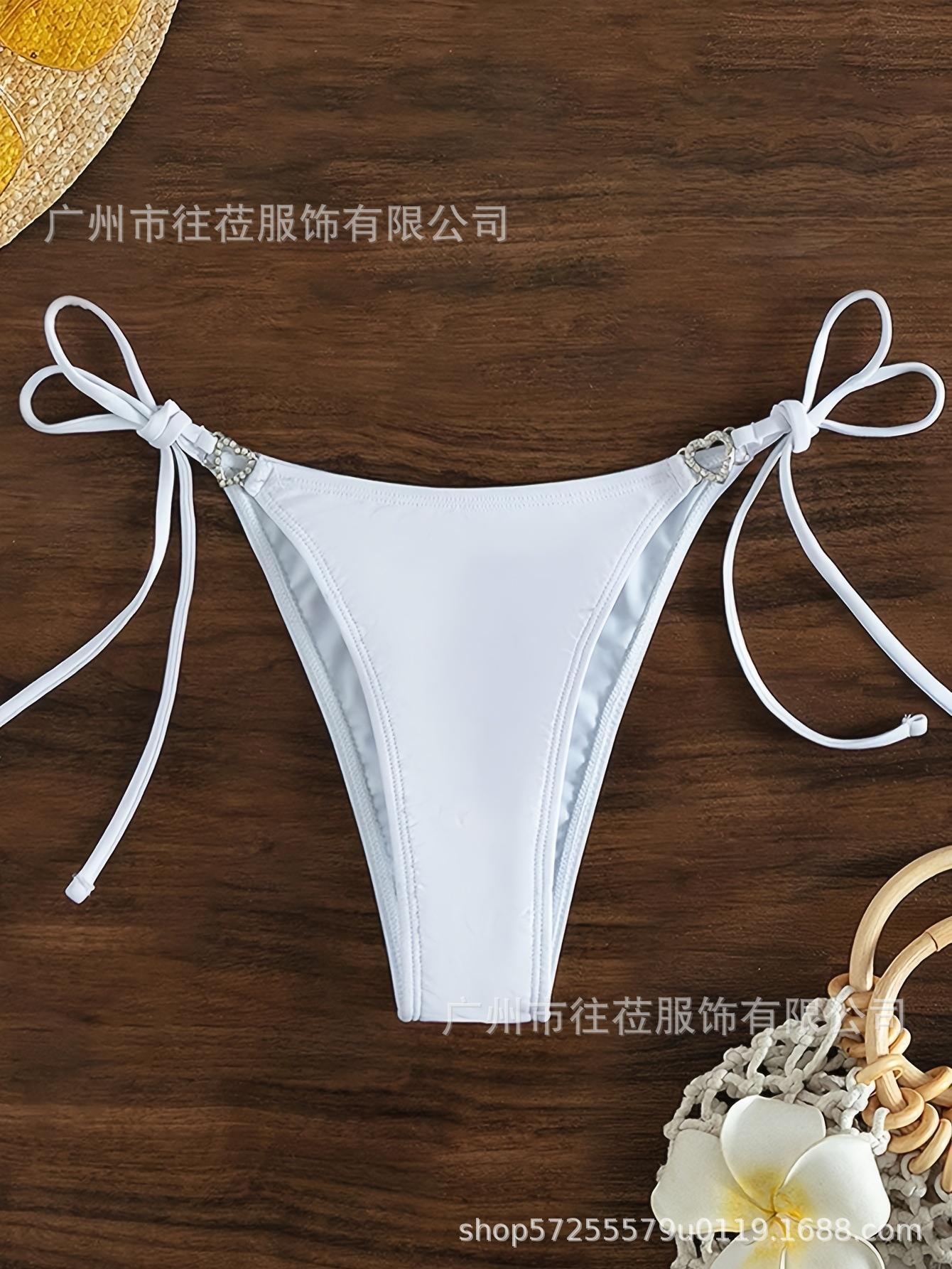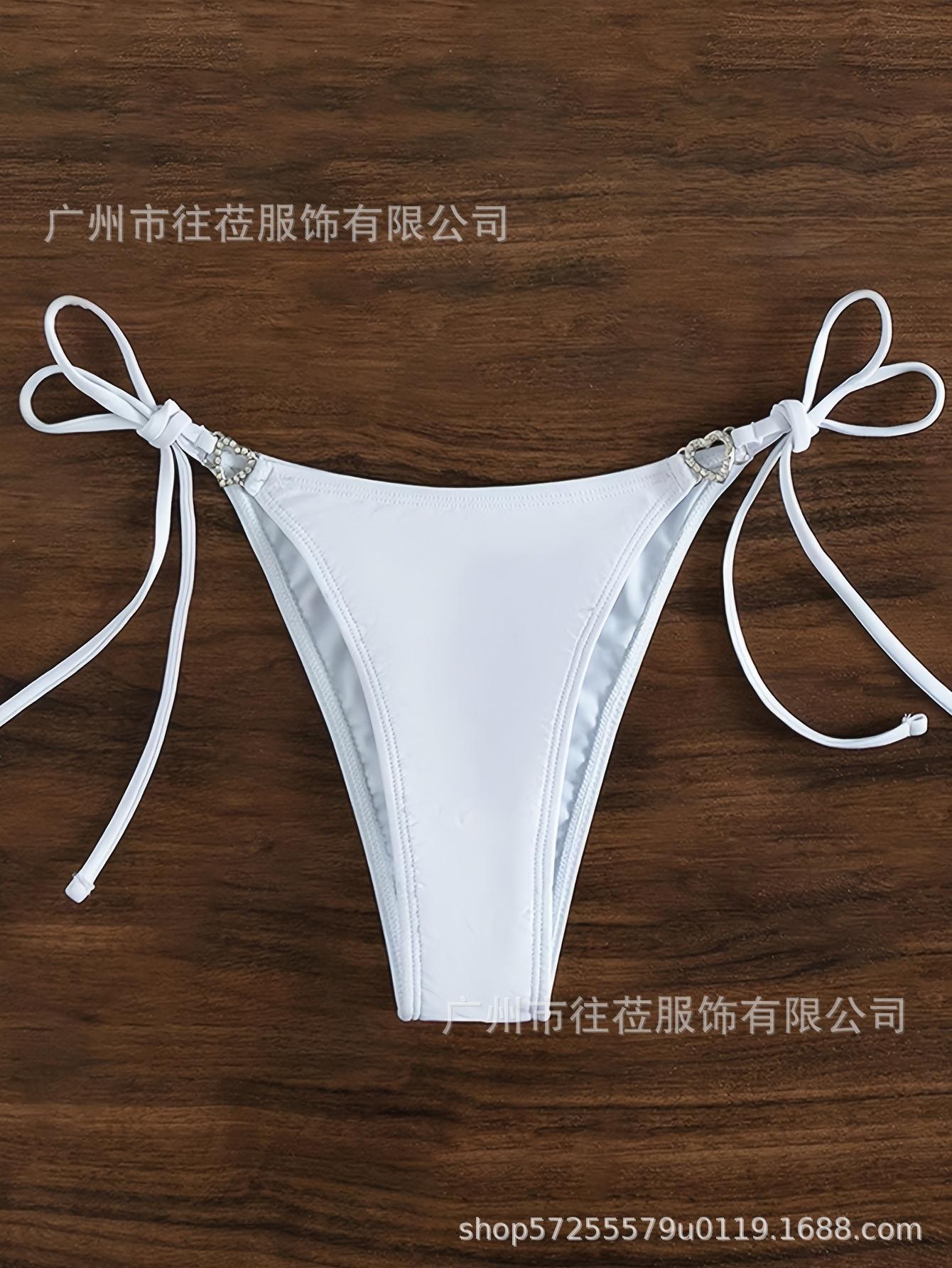 Parte Inferior de Bikini Traje de Baño de Verano para Vacaciones en la Playa Junto al Mar para Mujer, Color Sólido, Forma de Corazón, Encaje Calado con Cordones