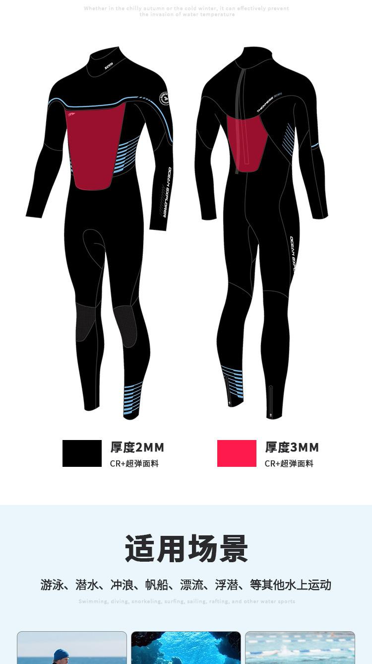 Traje de buceo transfronterizo nuevo de 3 mm de manga larga para hombre, traje de buceo grueso y cálido de CR para mujer a prueba de frío