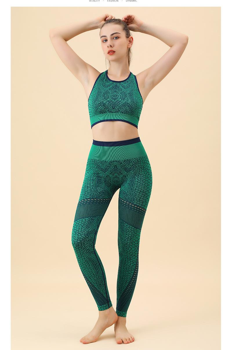 Traje de yoga de malla con estampado de serpiente europeo y americano, cintura alta, levanta glúteos, ropa de yoga fitness, secado rápido, transpirable, traje deportivo para correr para mujer