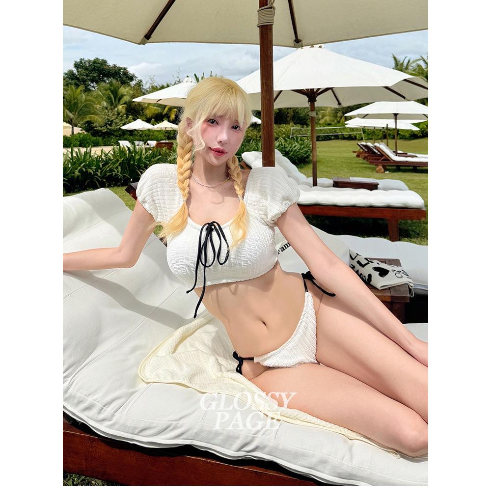 Traje de Baño de Una Pieza Dividido de Alta Gama para Mujer, Tejido de Terciopelo Pure Lust, Traje de Baño Bikini Estilo Coreano Ins