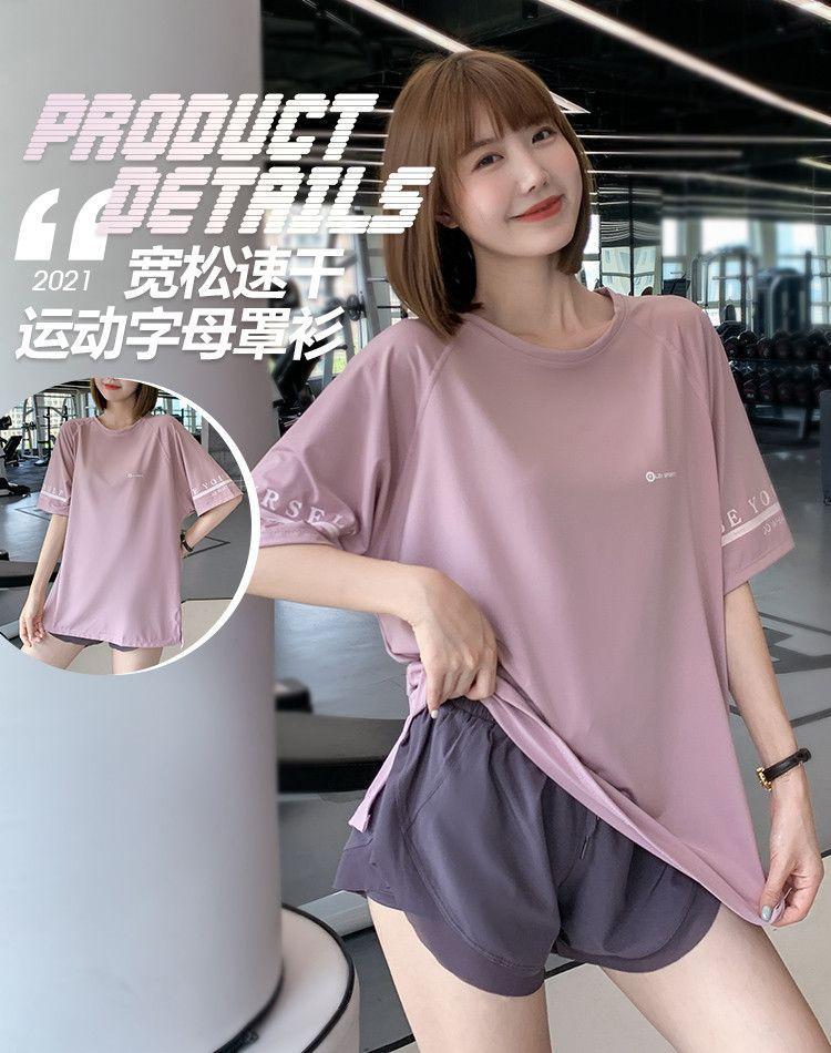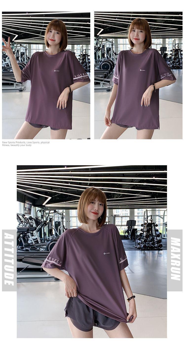 [Personalizado] Ropa de Fitness de Manga Corta para Yoga Camiseta Deportiva para Mujer Holgada para Correr Verano Delgada de Secado Rápido Top