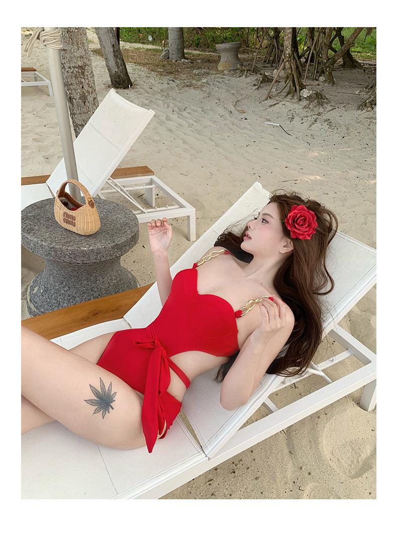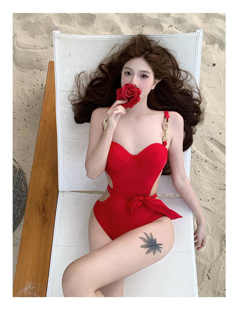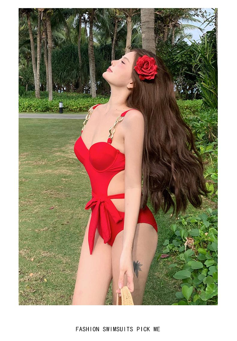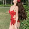 Nuevo Bikini Blanco 2025 Traje de Baño Push up para Pecho Pequeño de Alta Gama Sexy de Una Pieza para Mujer para Aguas Termales/Playa