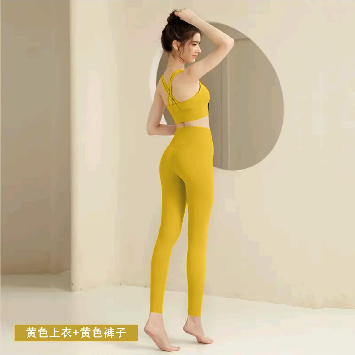 Beautiful back yoga clothes set black, Beautiful back yoga clothes set yellow, Beautiful back yoga clothes set...