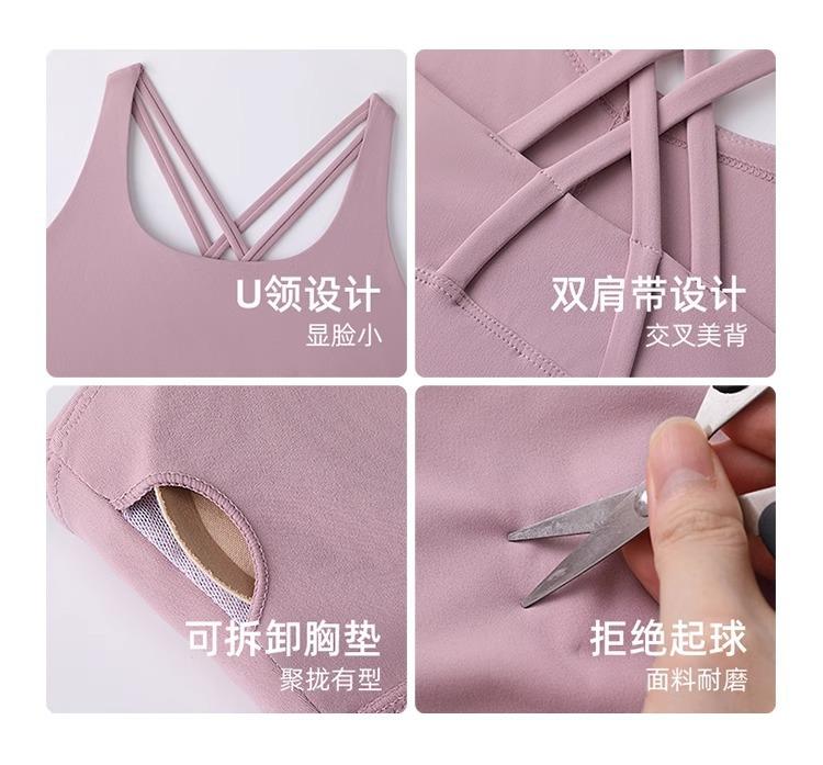 Traje de Belleza de Espalda Cruzada Ropa de Yoga Top Deportivo para Mujer a Prueba de Golpes Anticaída Sexy Moda Traje Profesional de Fitness